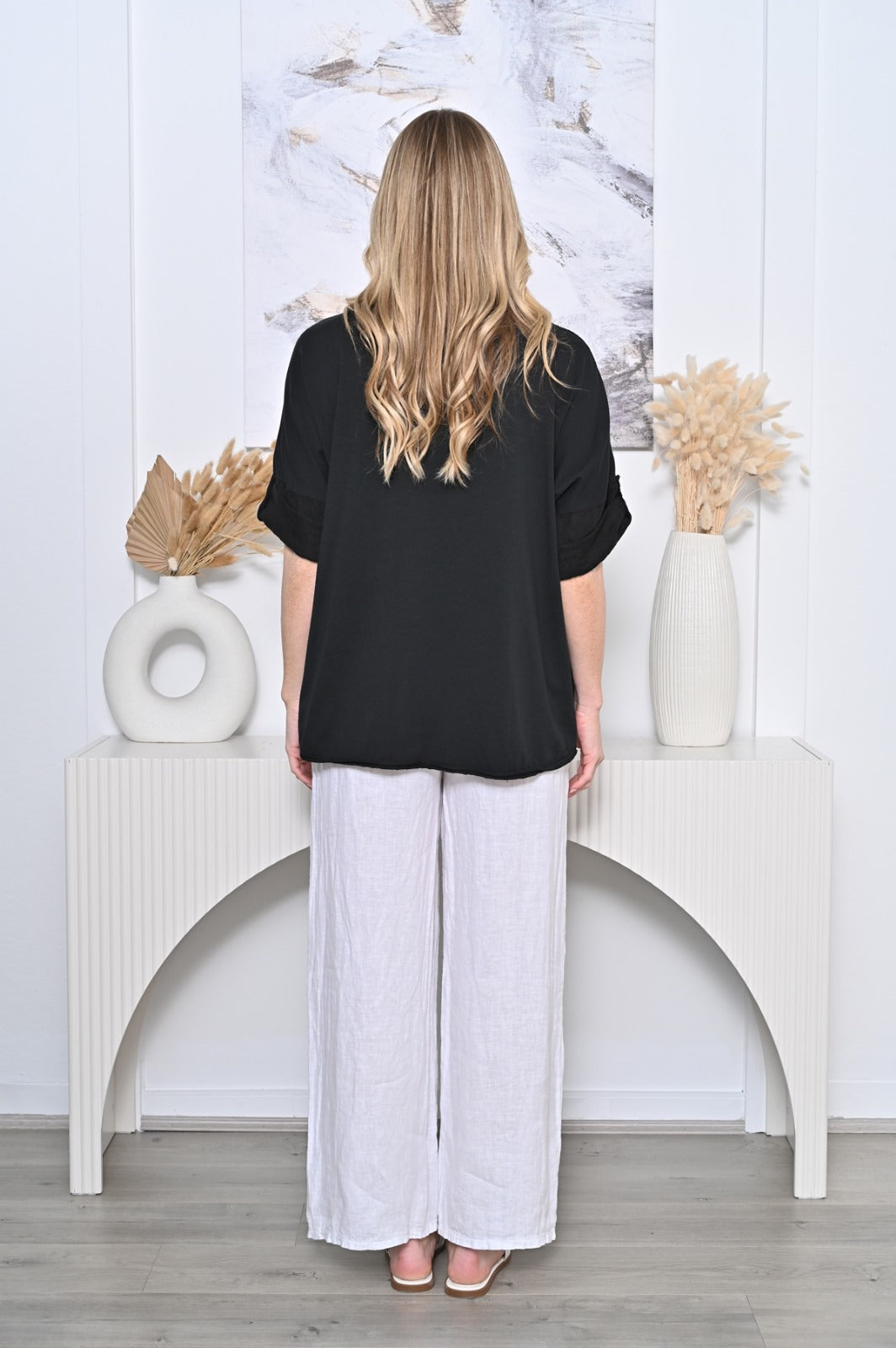 - Batwing-style sleeves offer both a flattering and comfortable fit