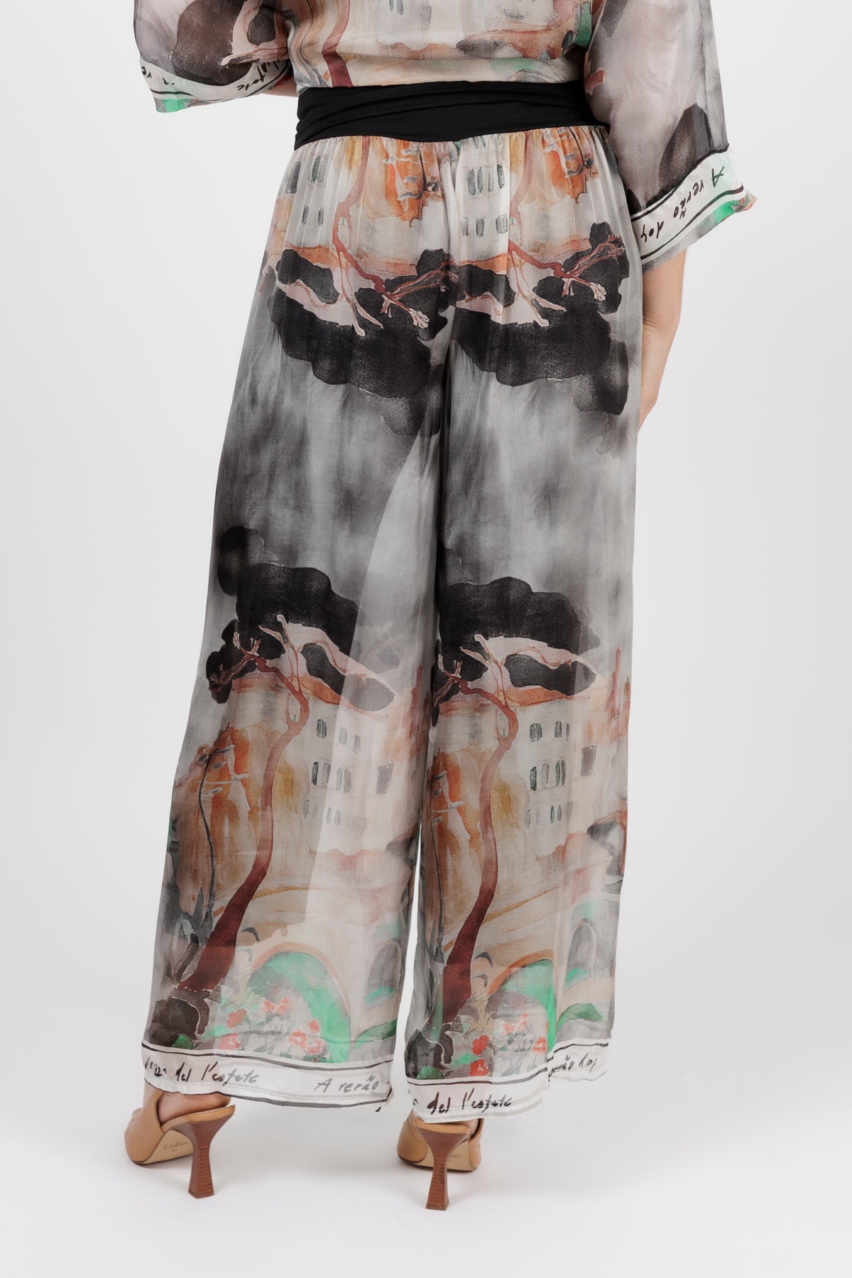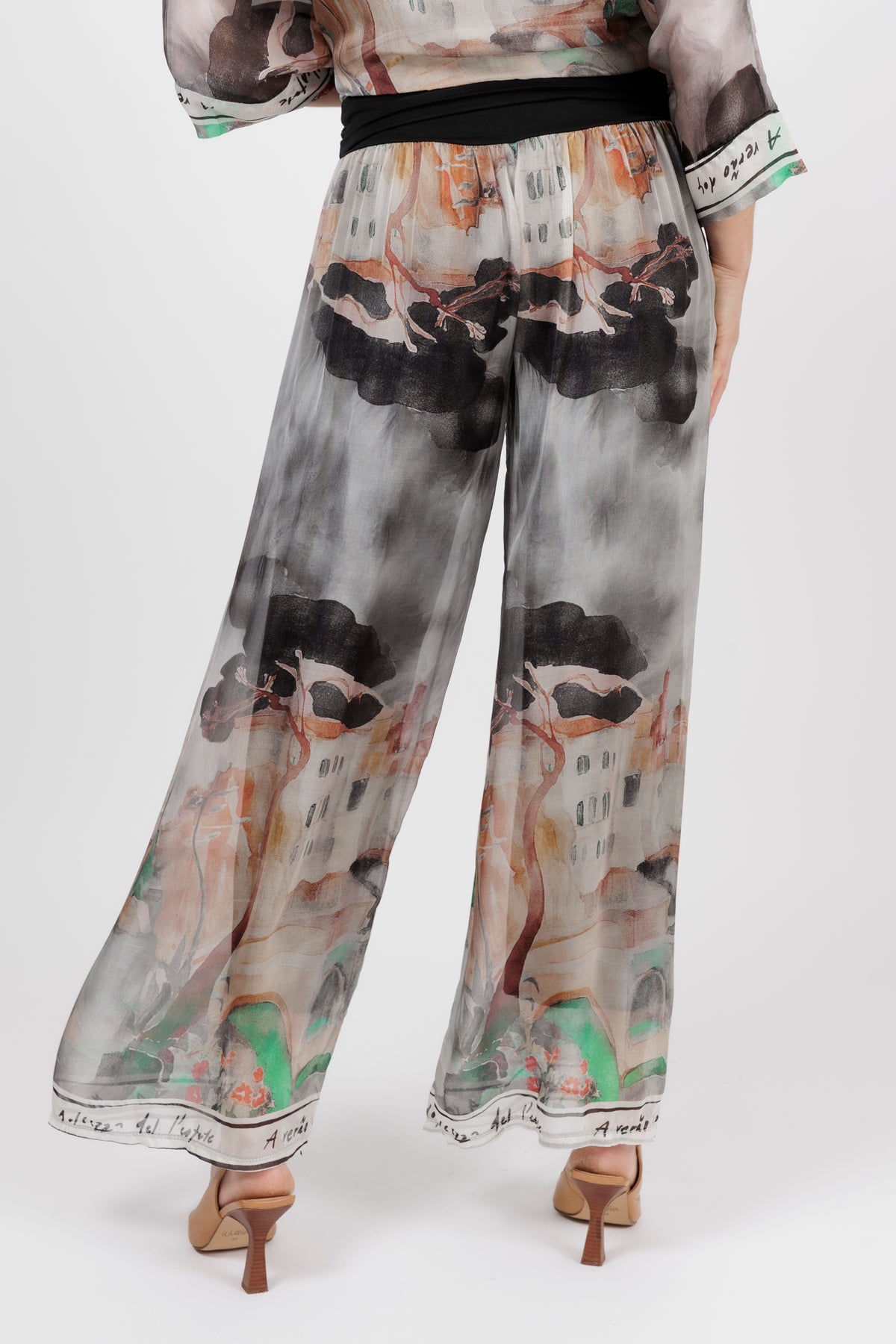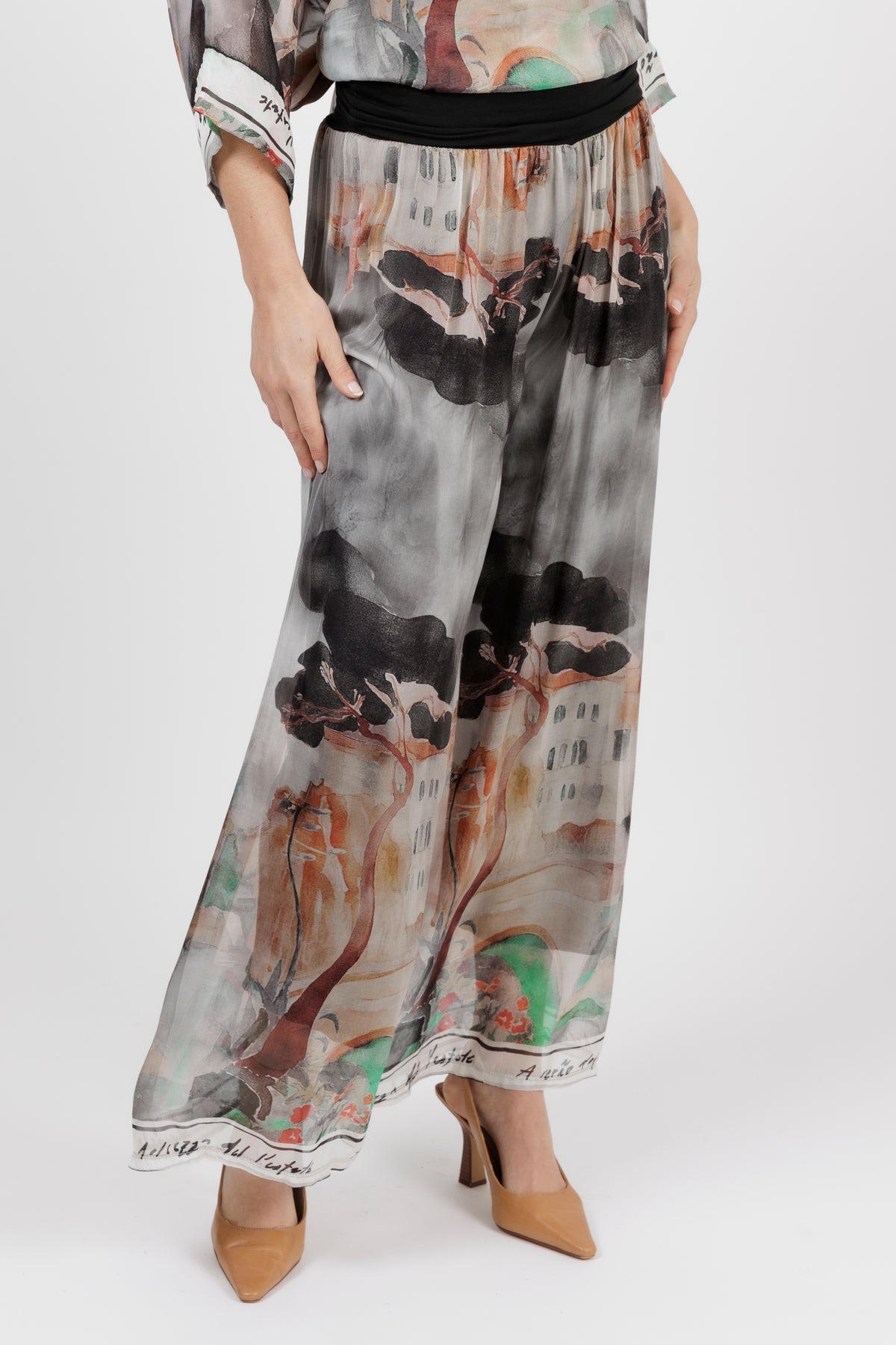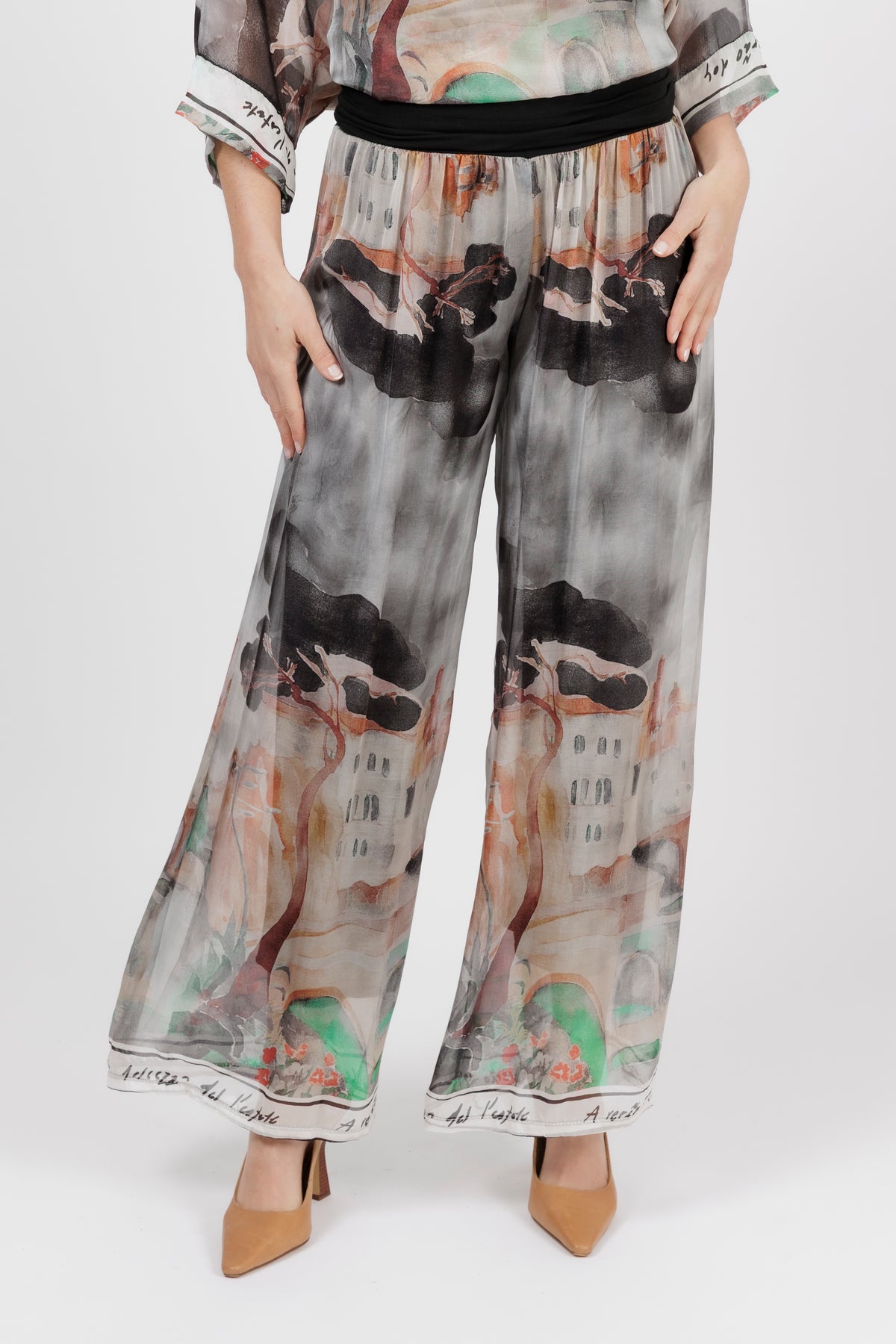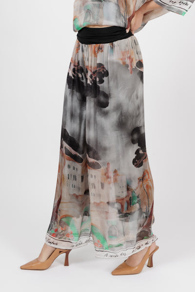 DONYA Abstract Silk Wide Leg Pants