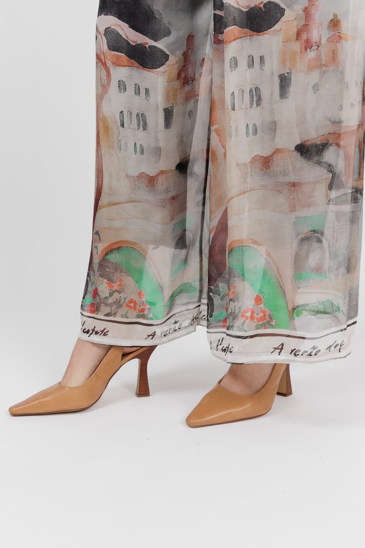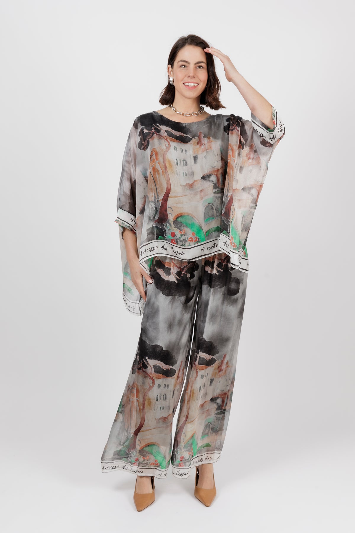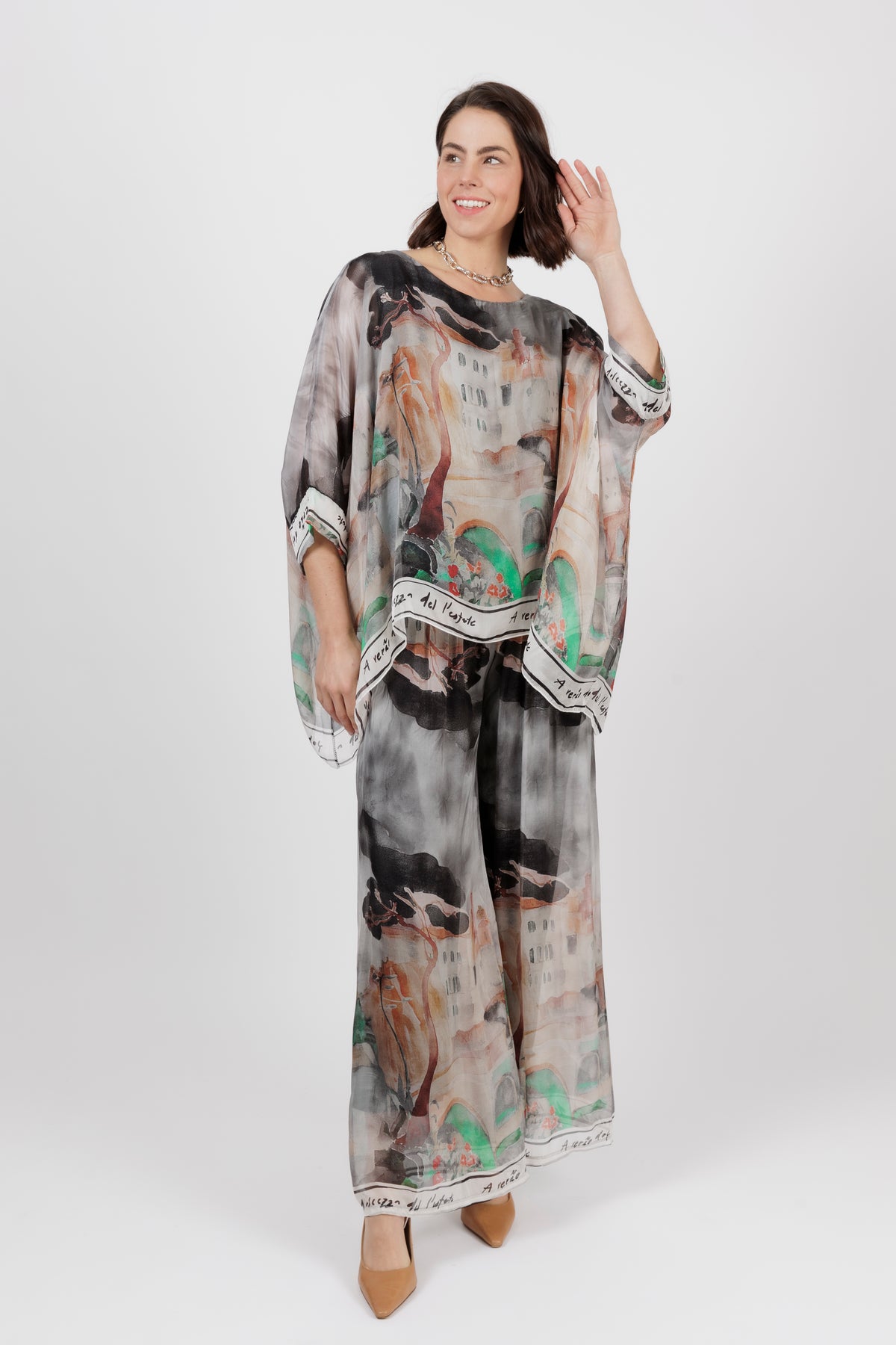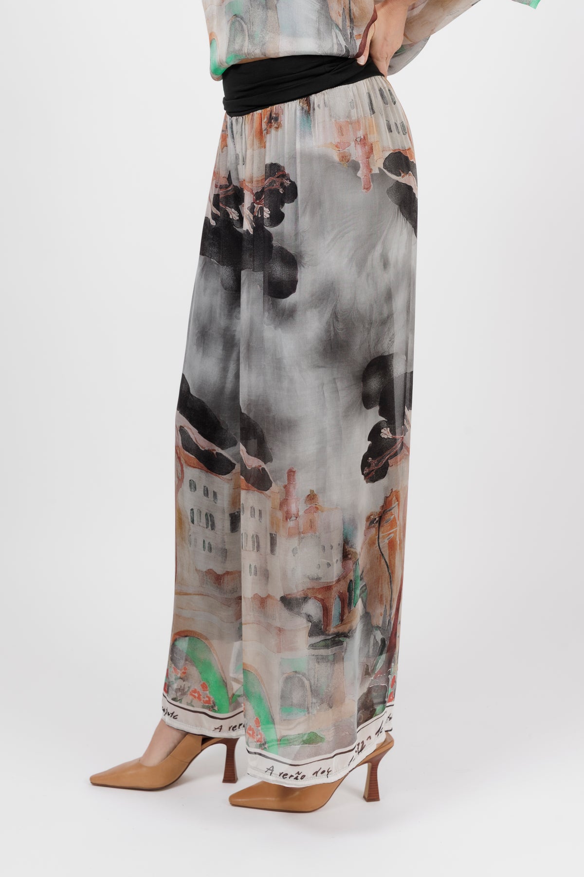 DONYA Abstract Silk Wide Leg Pants