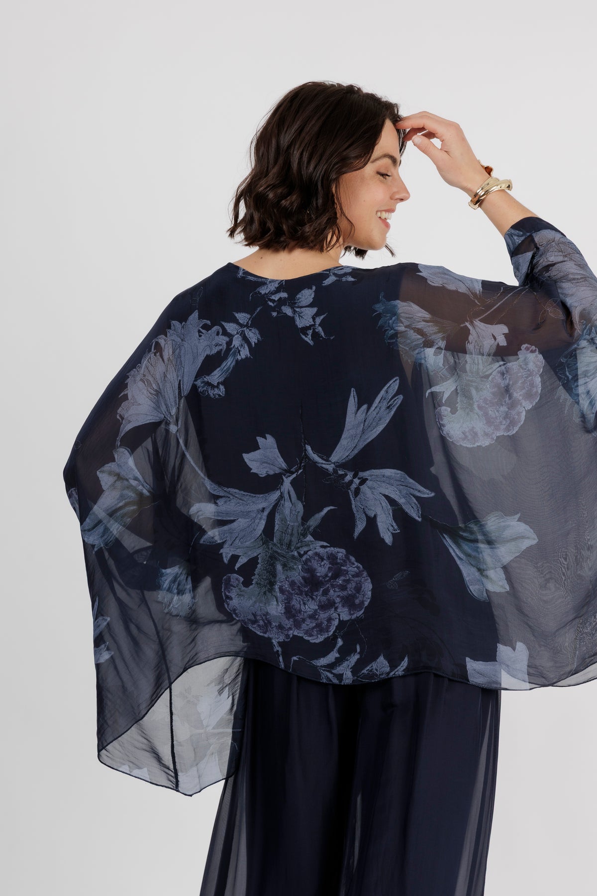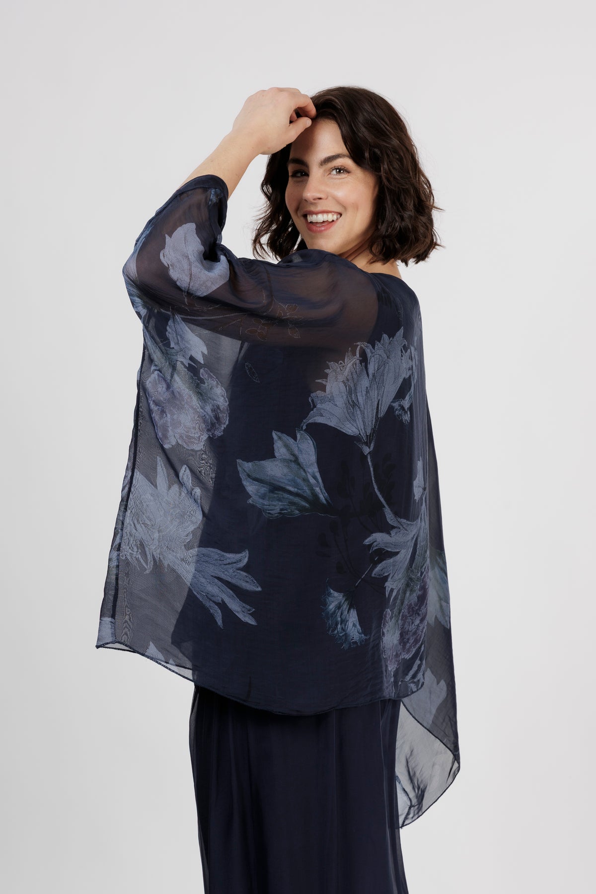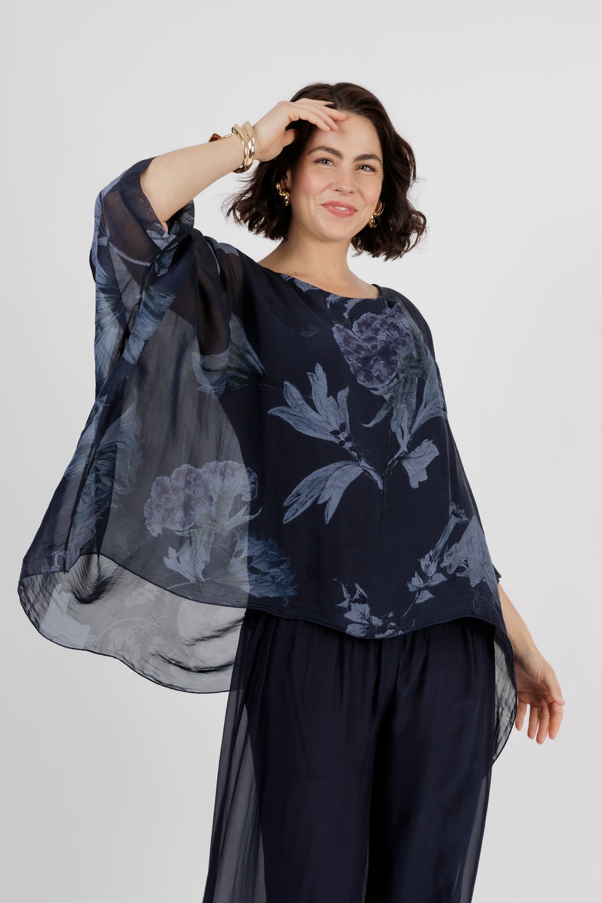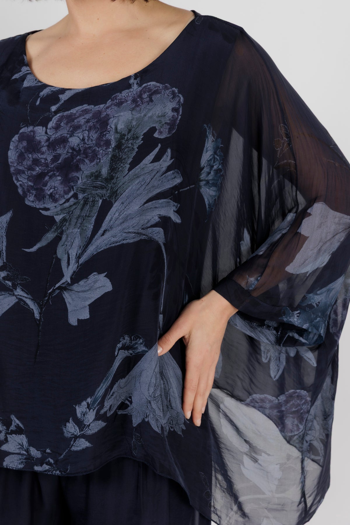 ELMIRA Navy Floral Silk Overlay Top
