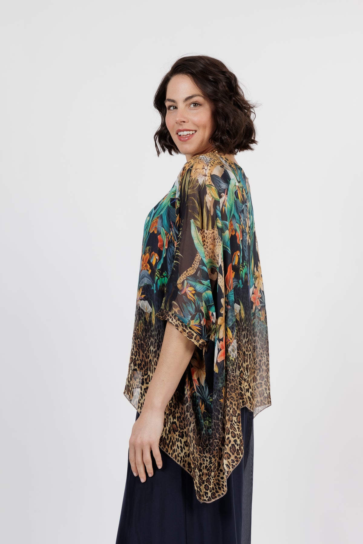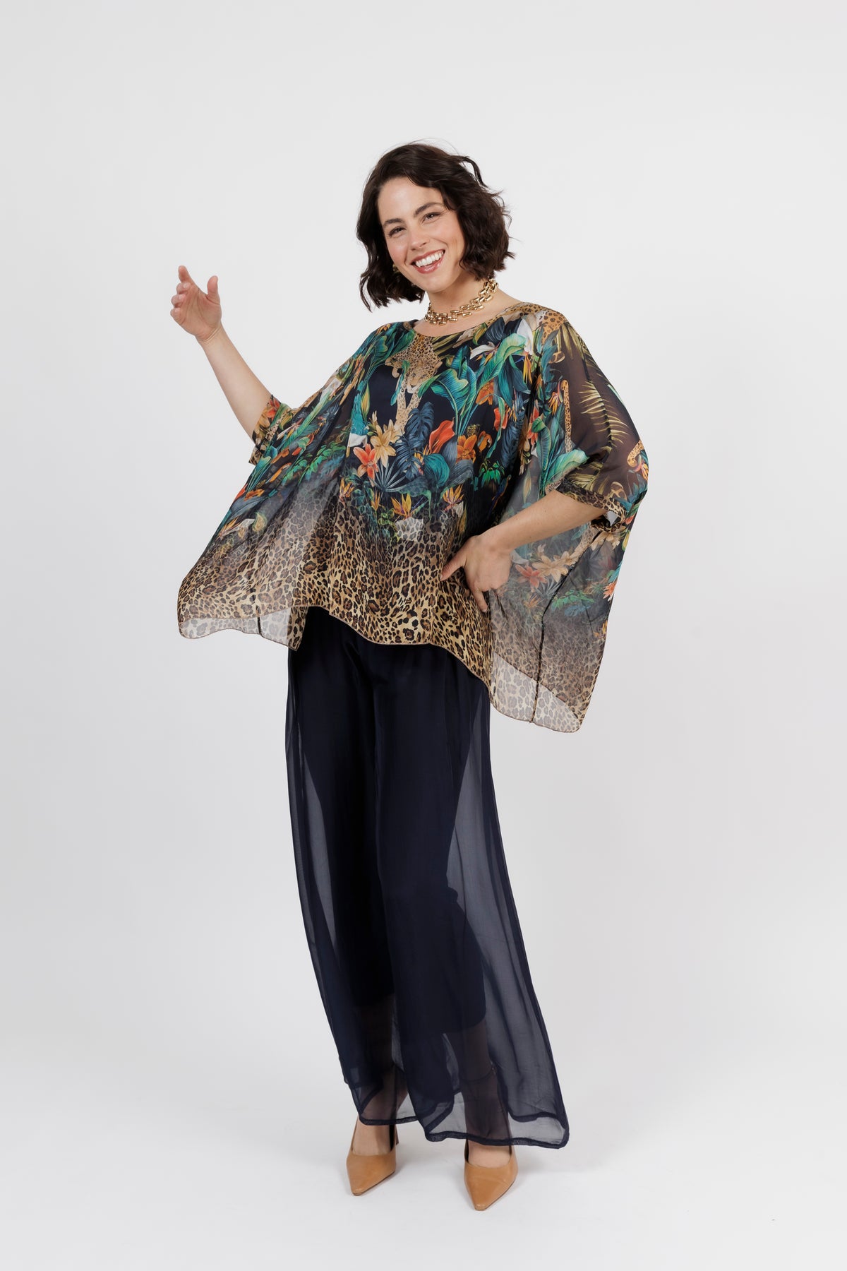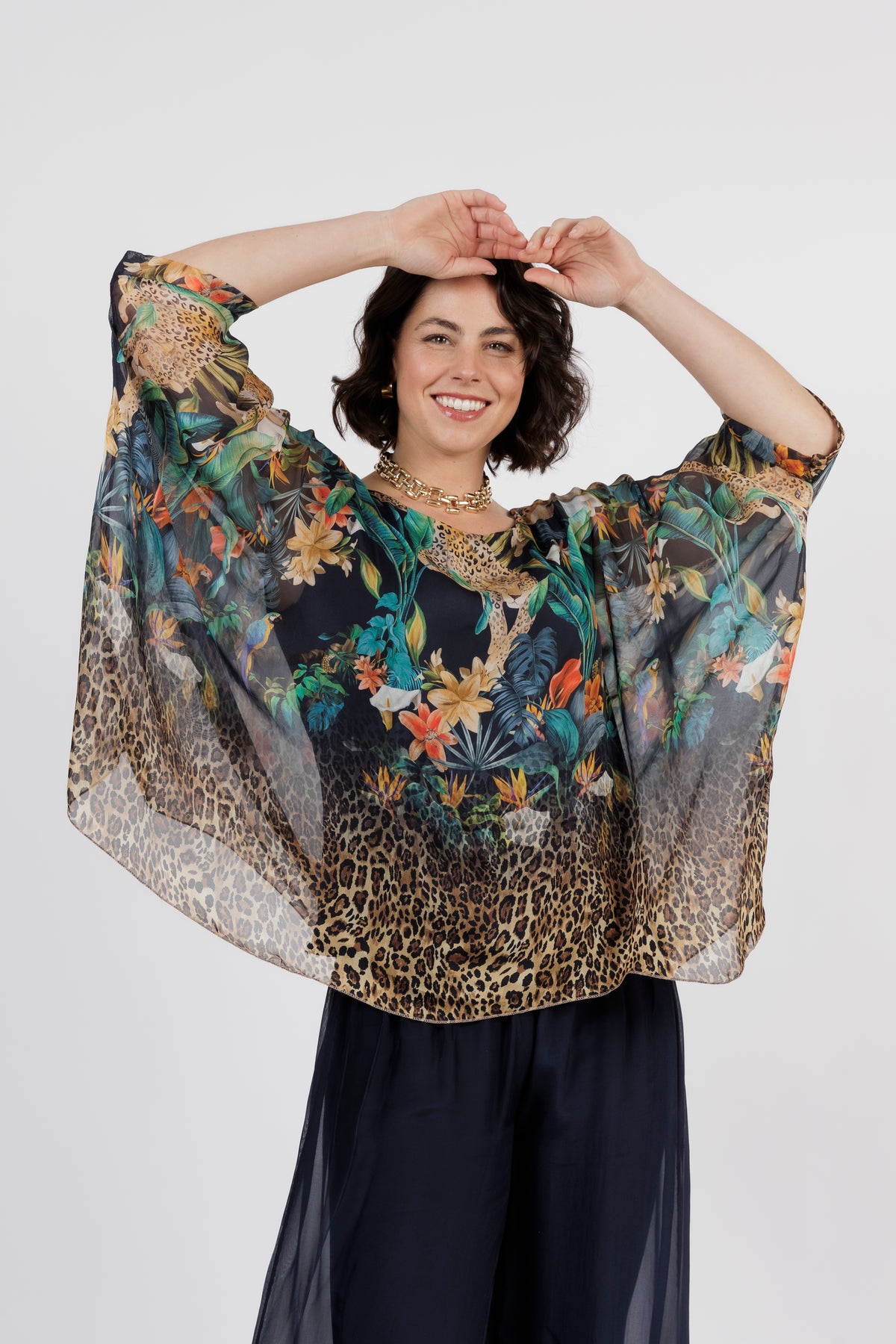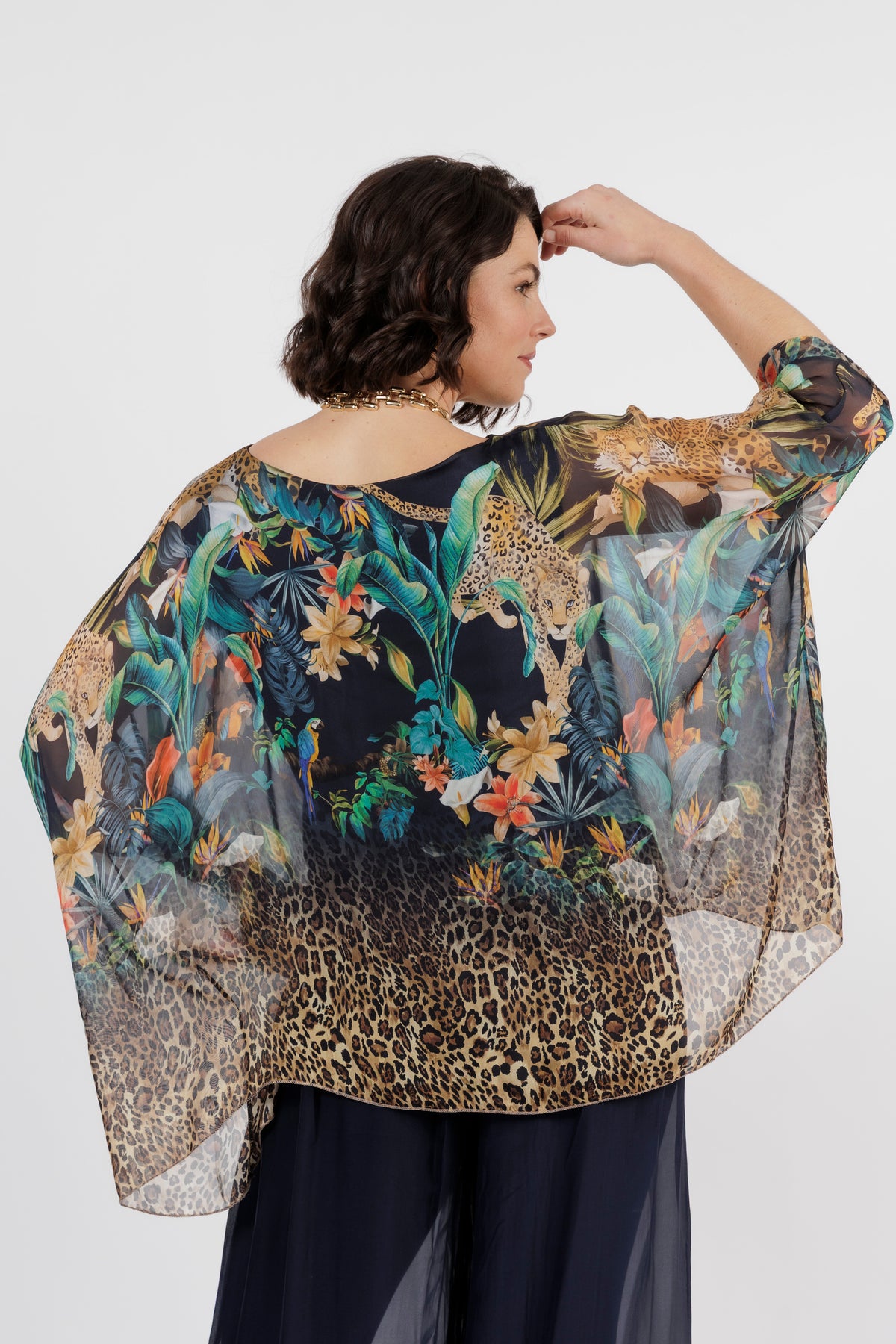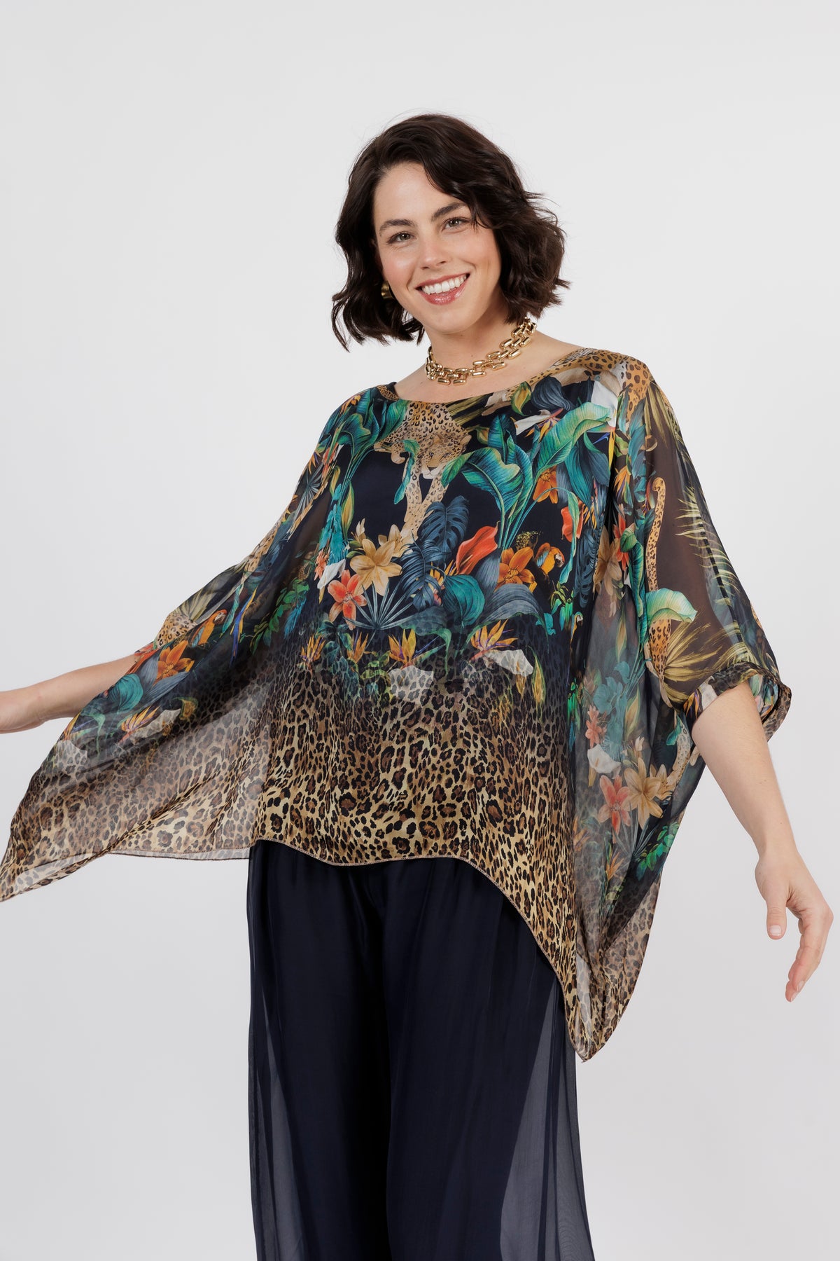 CONTESSA Navy Animal Silk Overlay Top