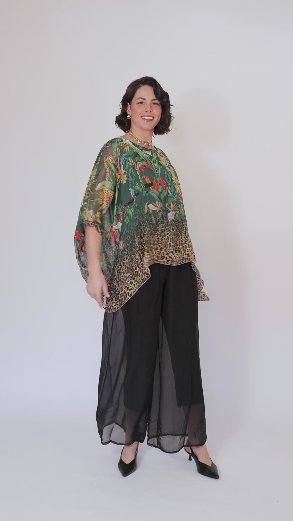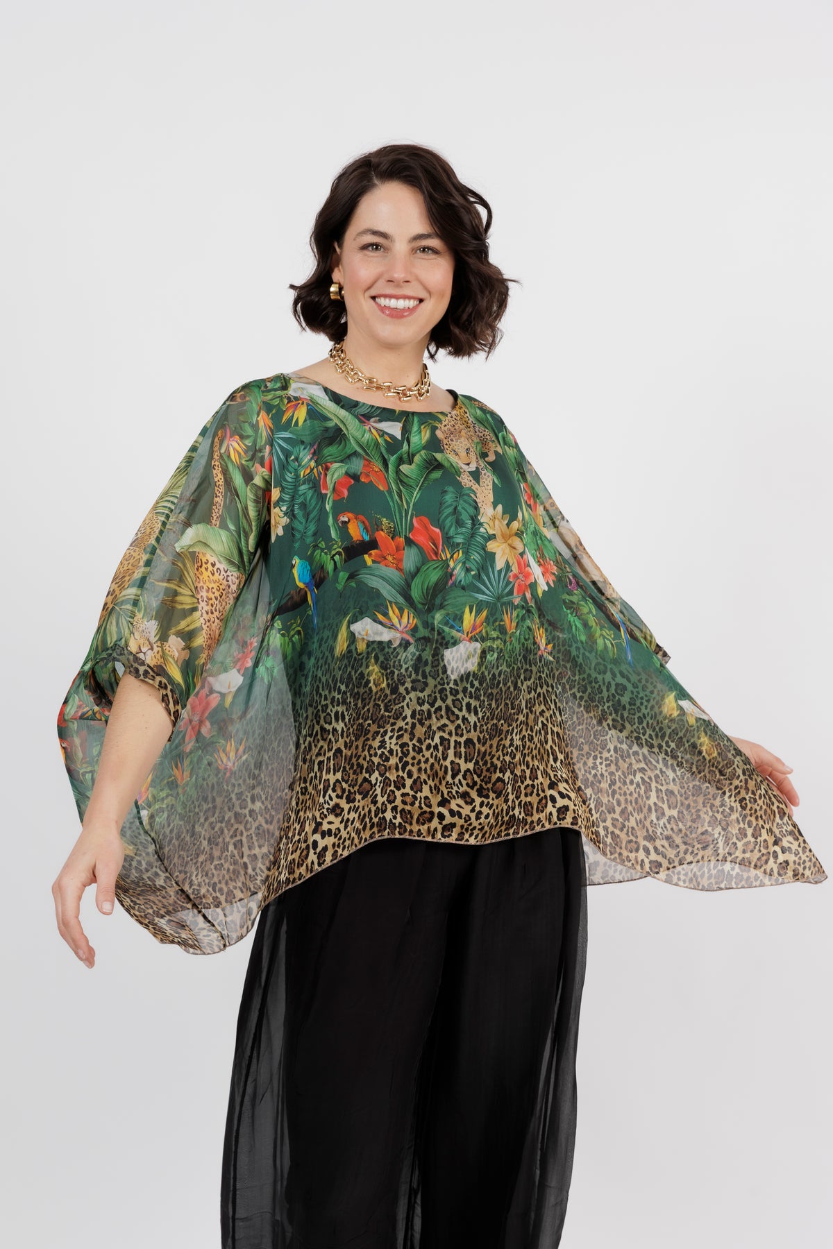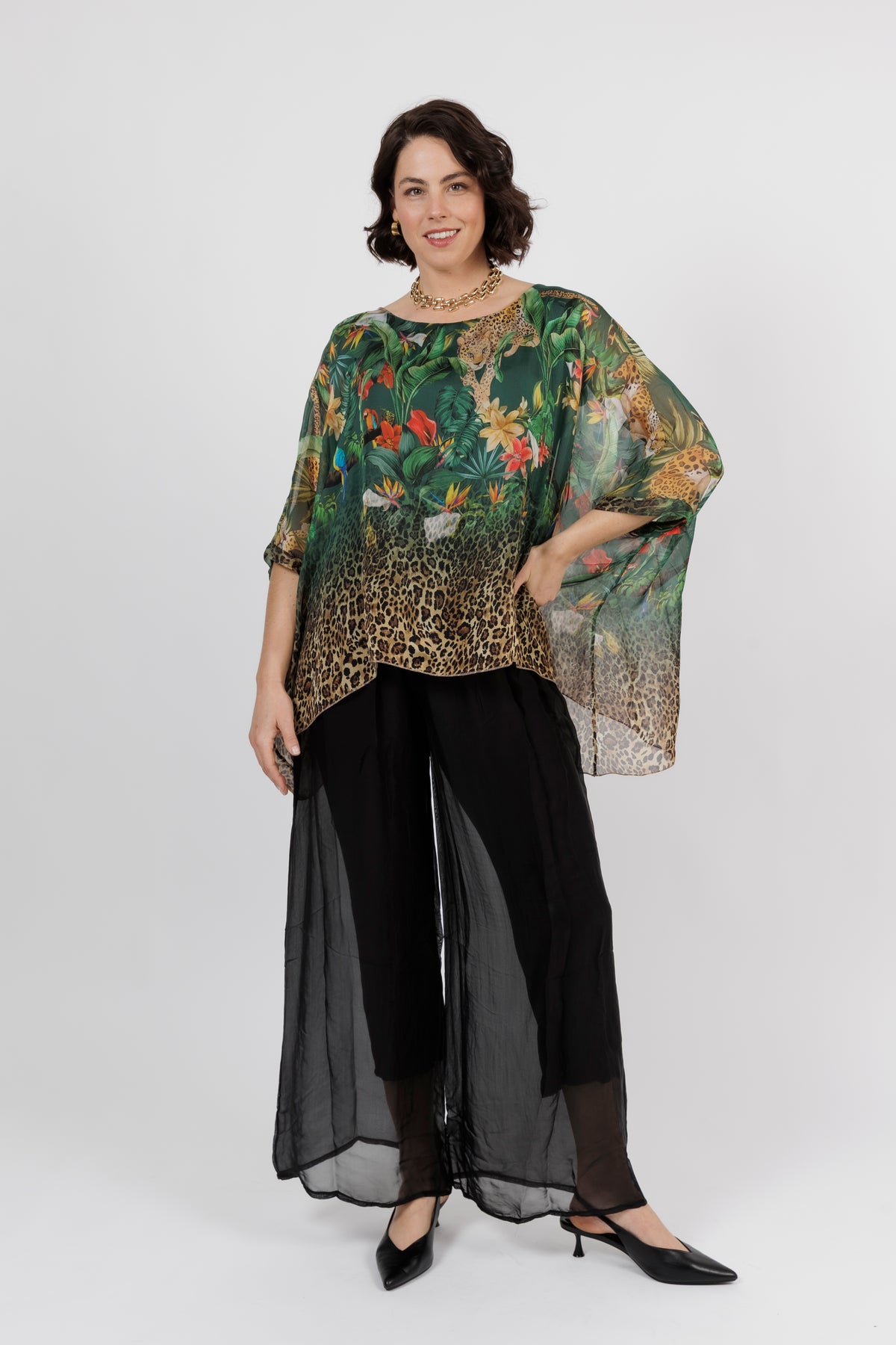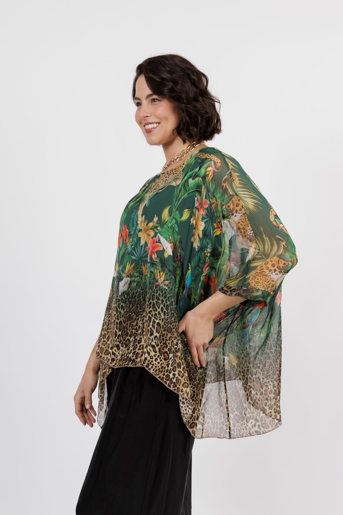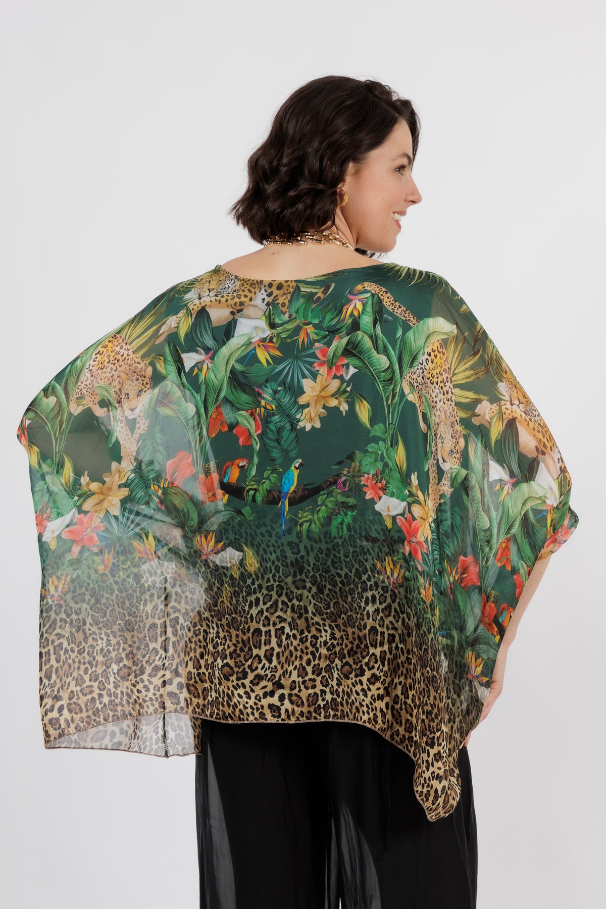 CONTESSA Green Animal Silk Overlay Top