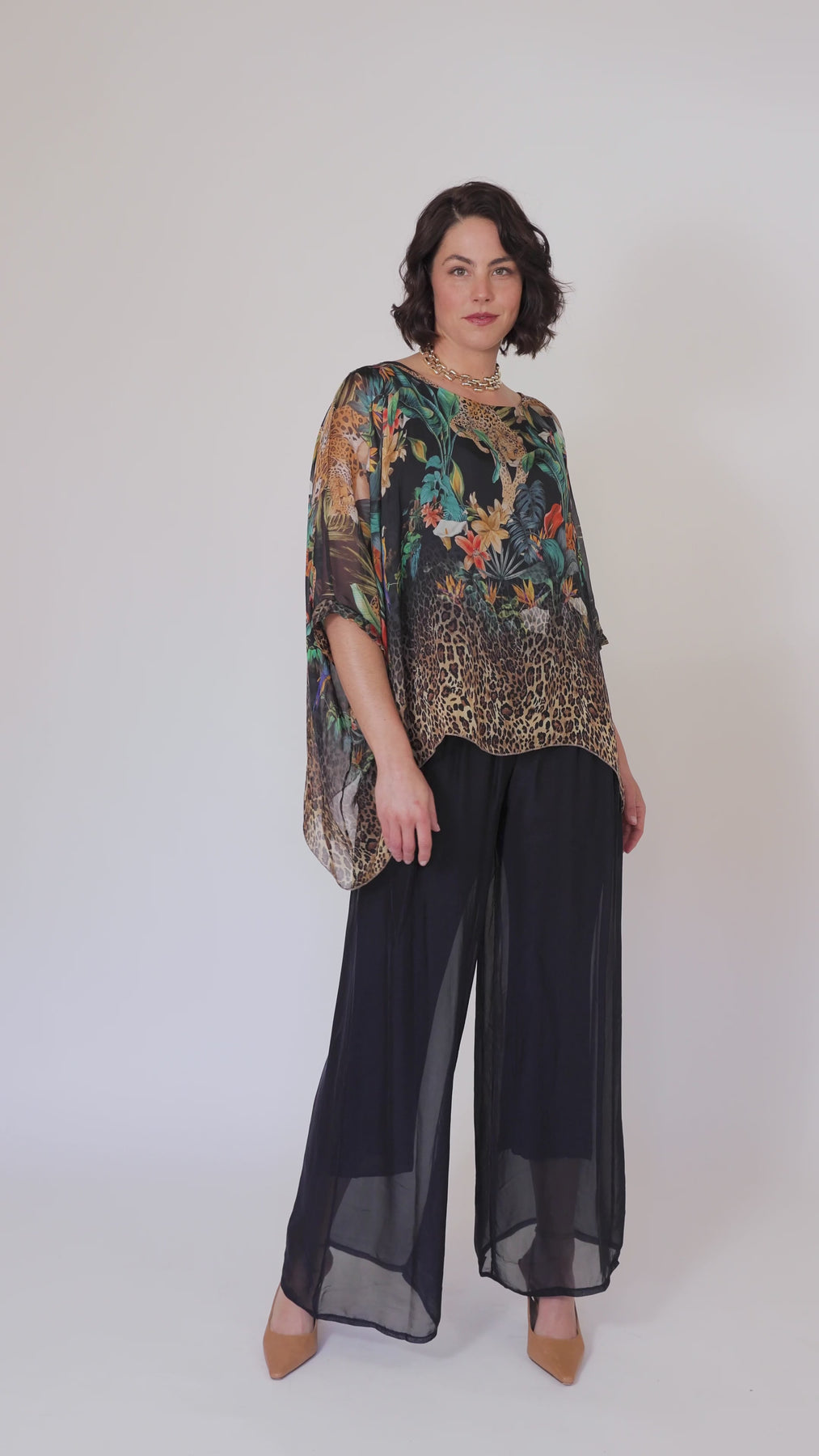 - Sheer, flowy sleeves drape gracefully giving an elegant, floaty look