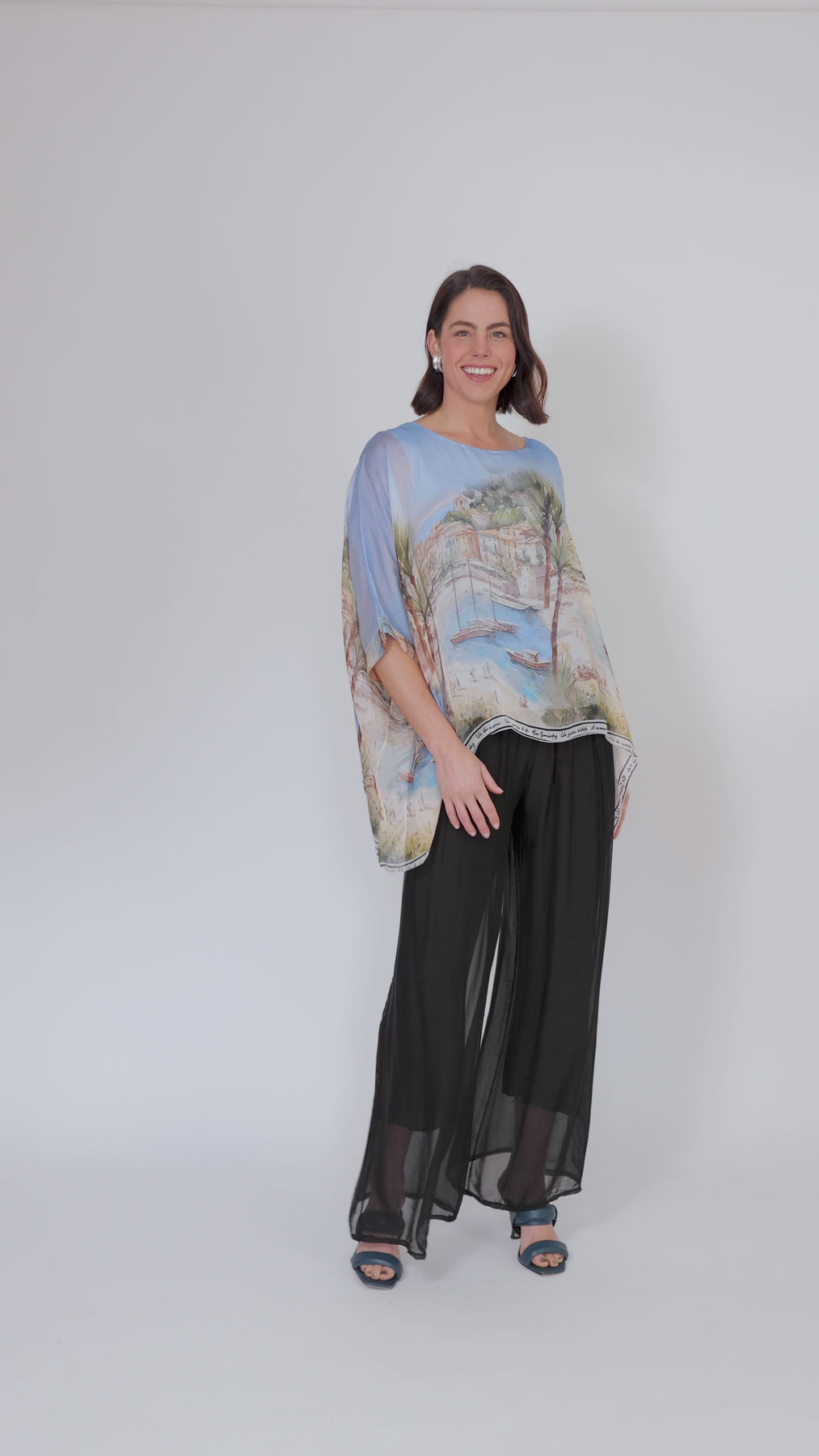 CONTESSA Sky City Silk Overlay Top