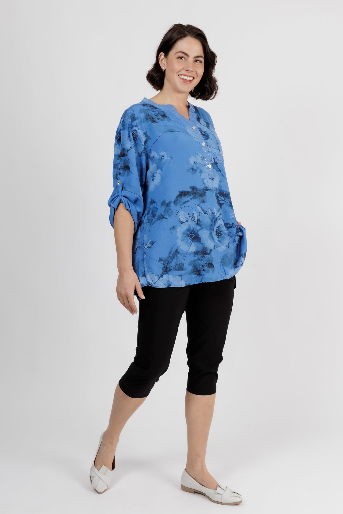 Regular price $89.95 Sale price $55.00Bring a fresh pop of colour to your wardrobe with this relaxed jade-green animal print top. Made in a soft, lightweight fabric, it drapes beautifully while giving you complete comfort for all-day wear. The Henley-style button front adds a casual, everyday touch, while the rolled tab sleeves let you switch between long and 3/4 styling with ease.