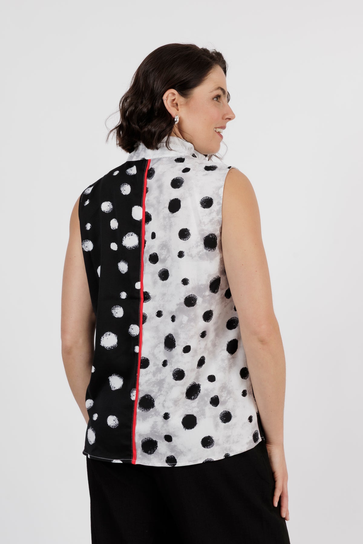 ZITA Black/White Contrast Sleeveless Top in Polka Dot
