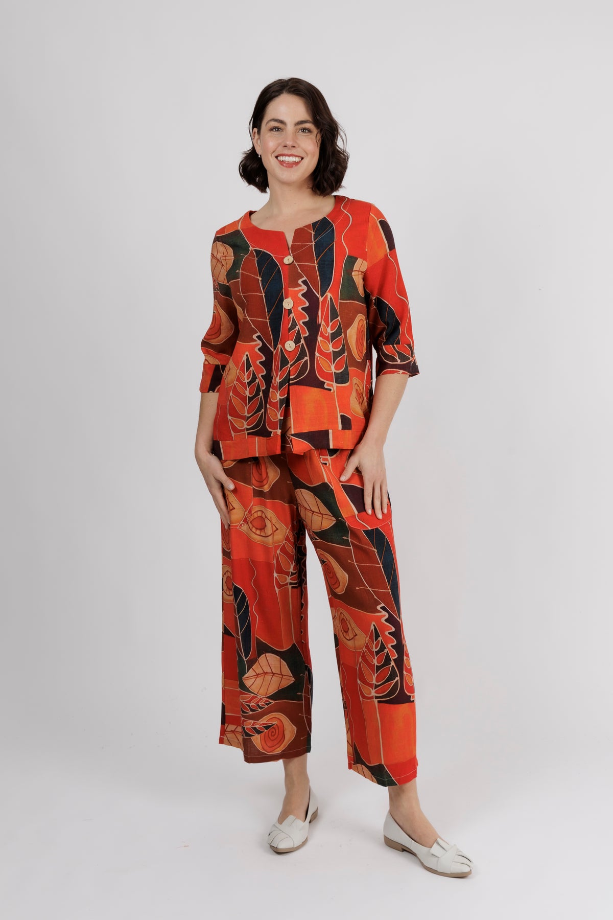 - Ankle length hem with button detailing