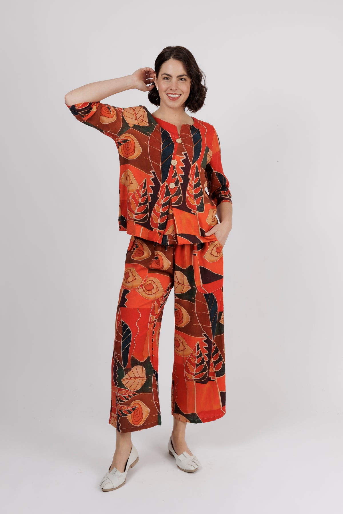 Style it solo with black or white trousers for sophistication, or wear it as a set for bold, contemporary flair.