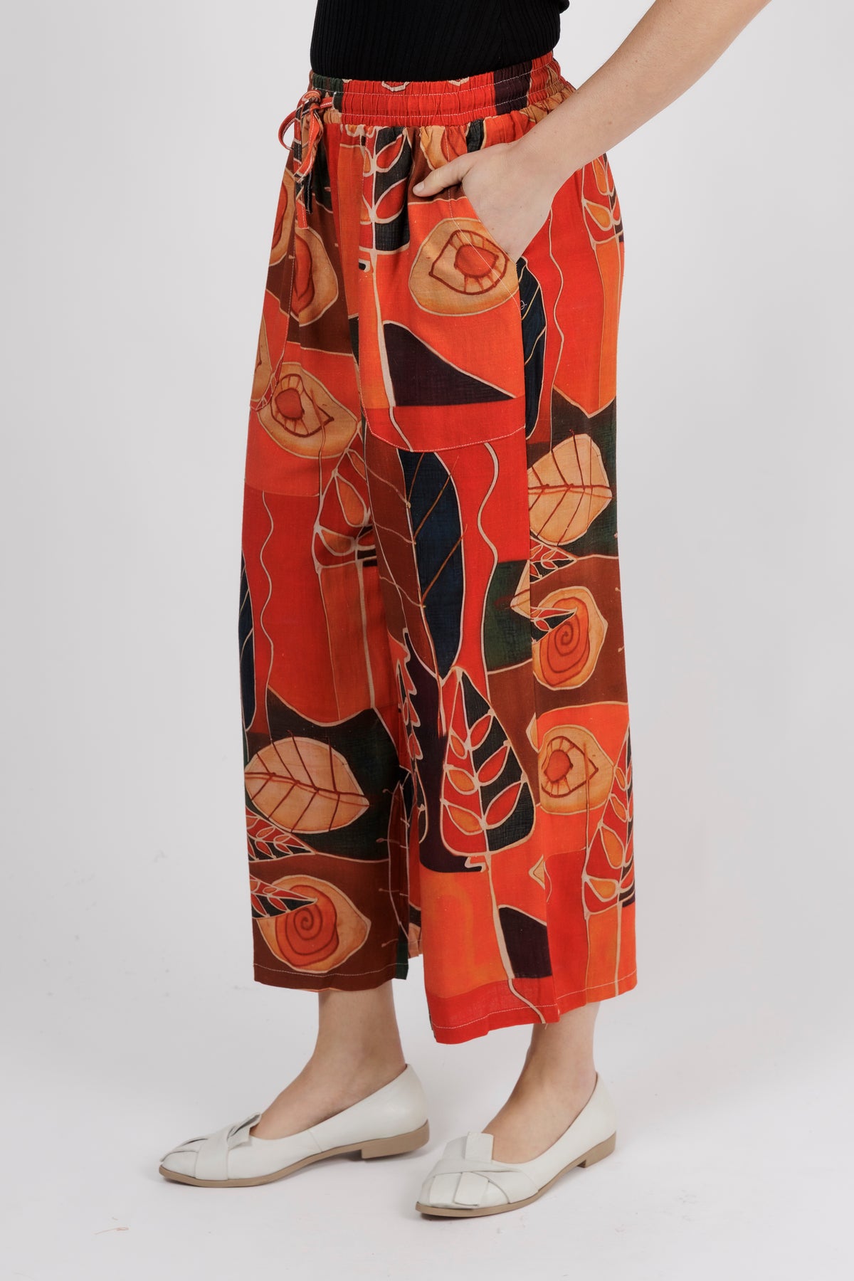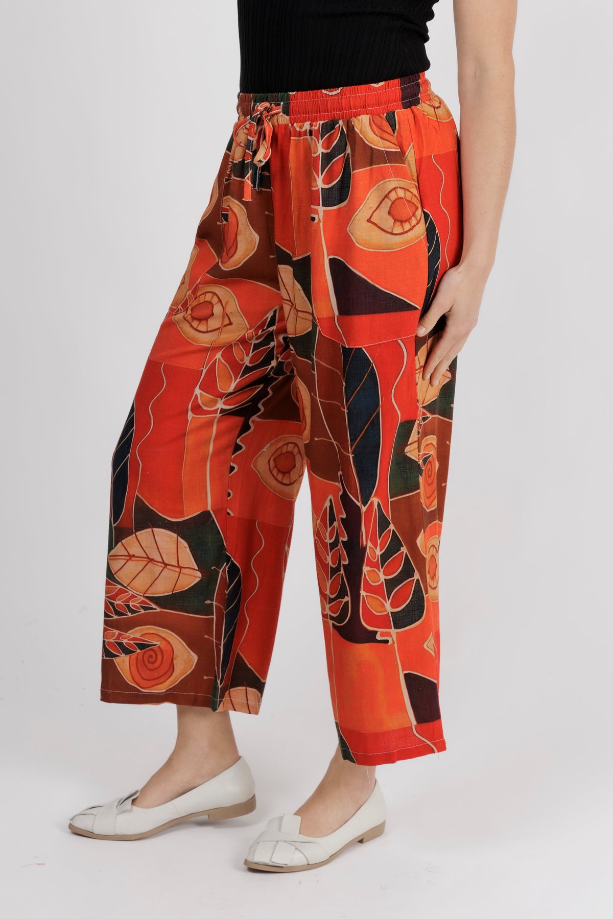 - The elasticated waistband and cotton/viscose fabric keep this pant comfortable and light to wear