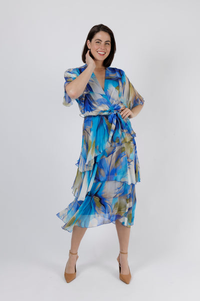ELBA Blue Flower Silk Layer Dress