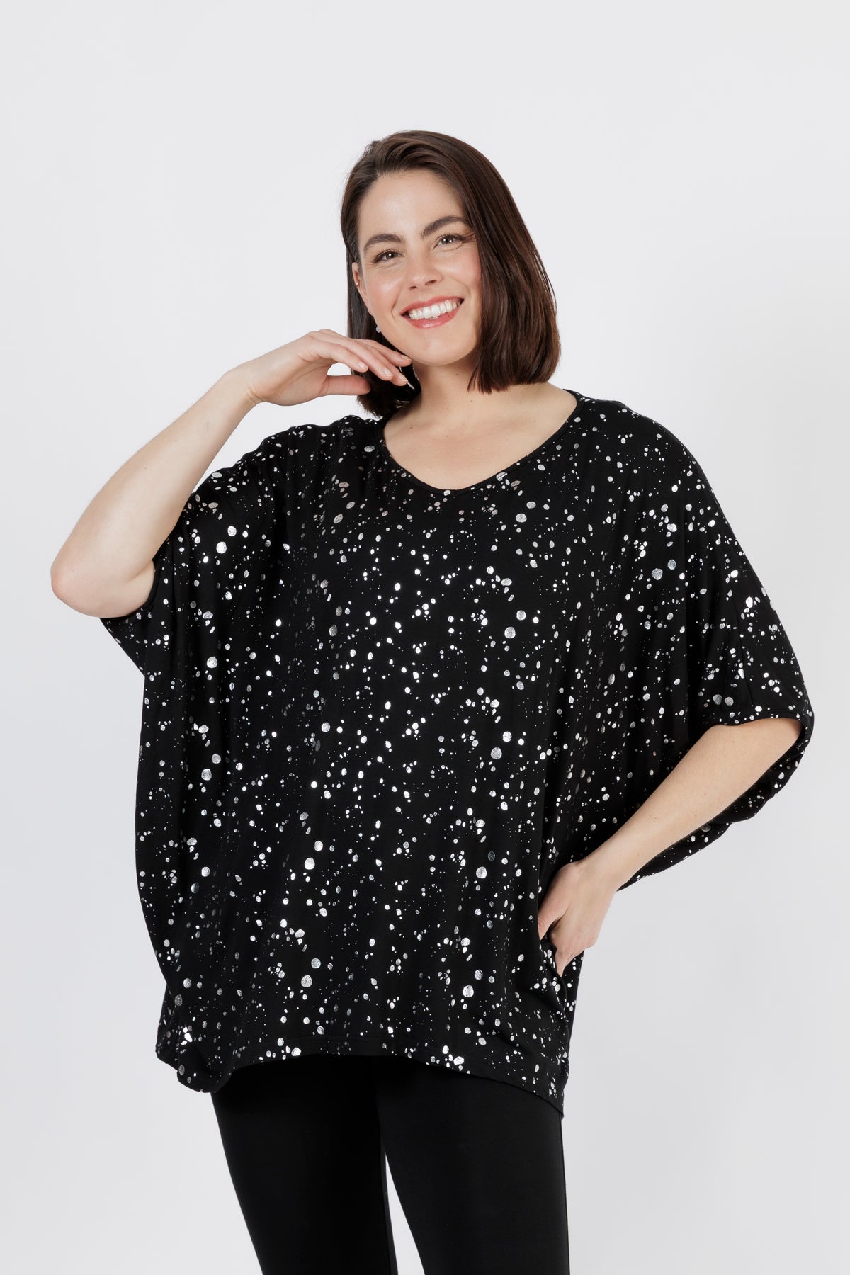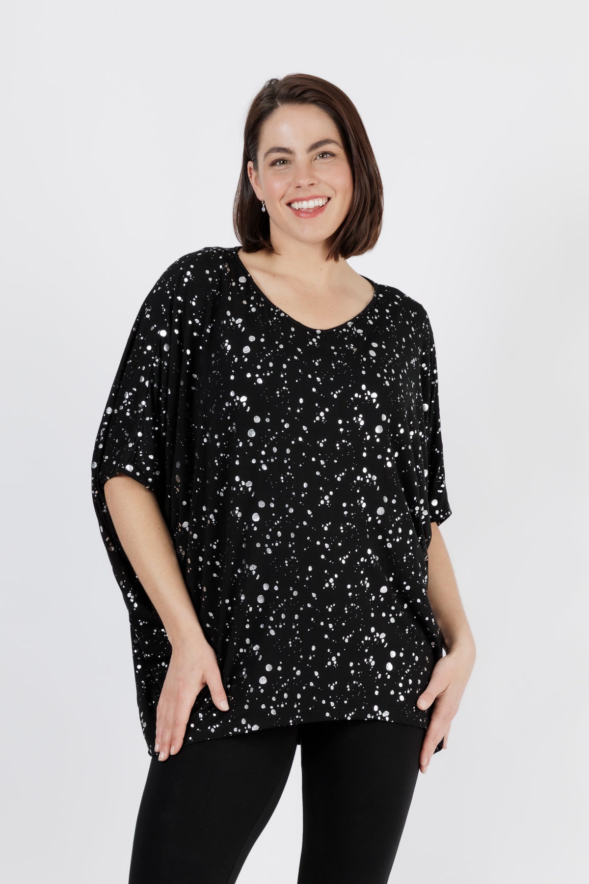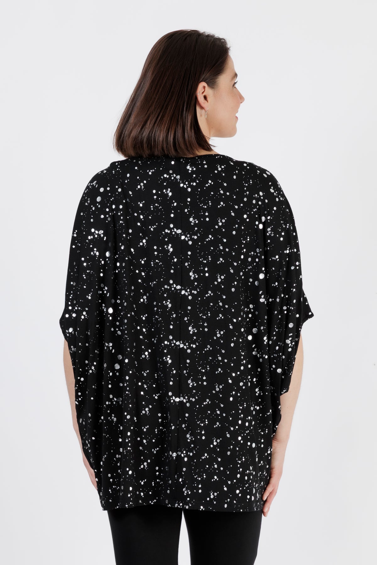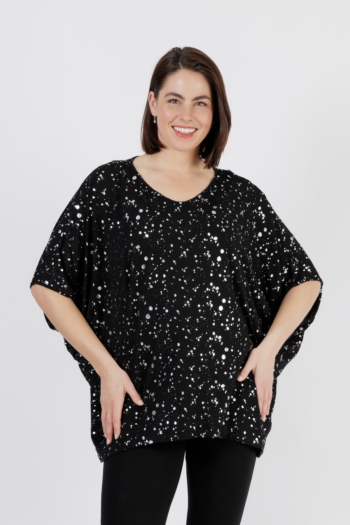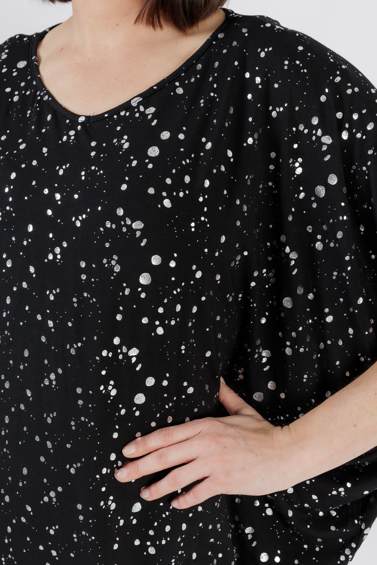 MARGHERITA Black Glitter Print Bamboo Batwing Top