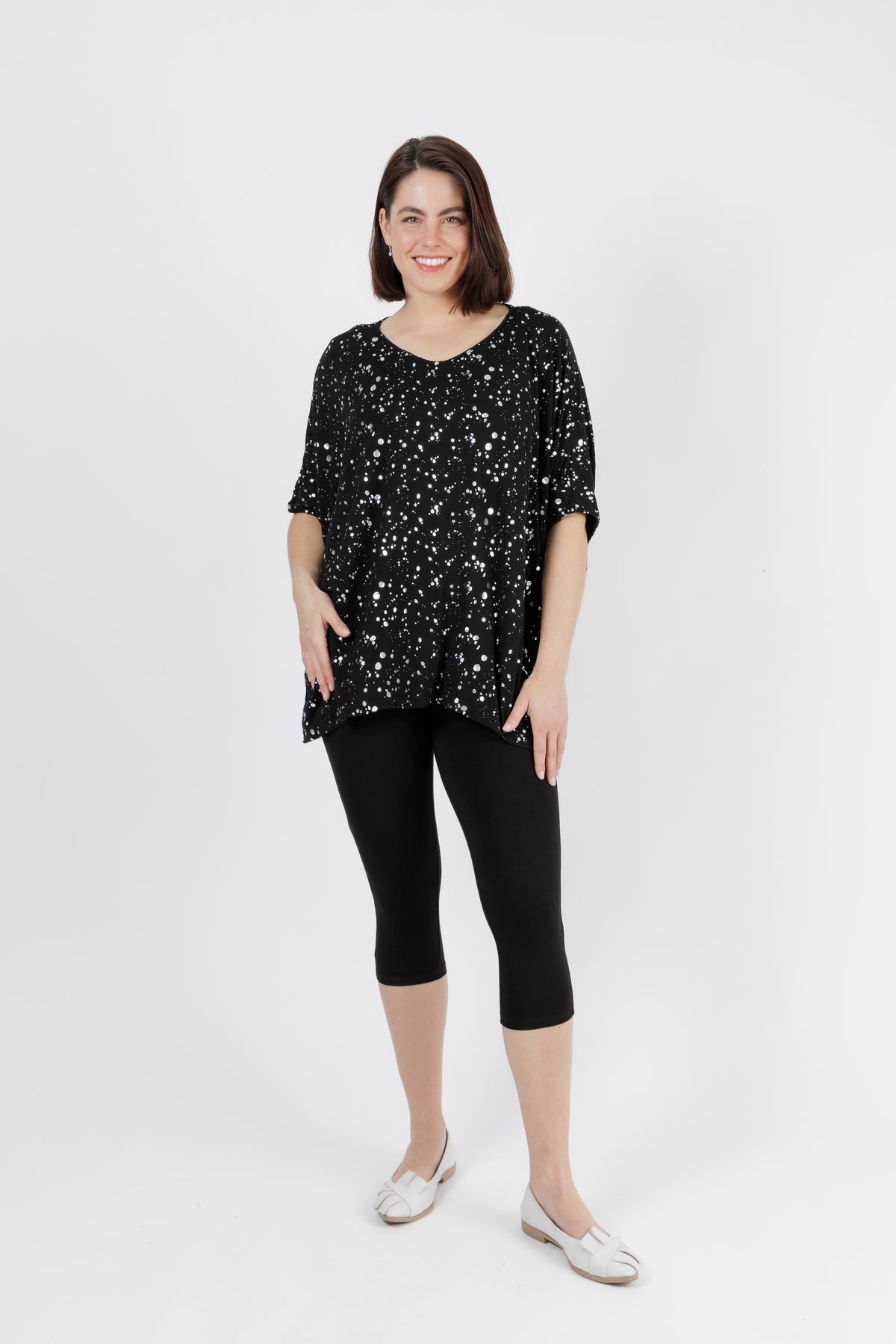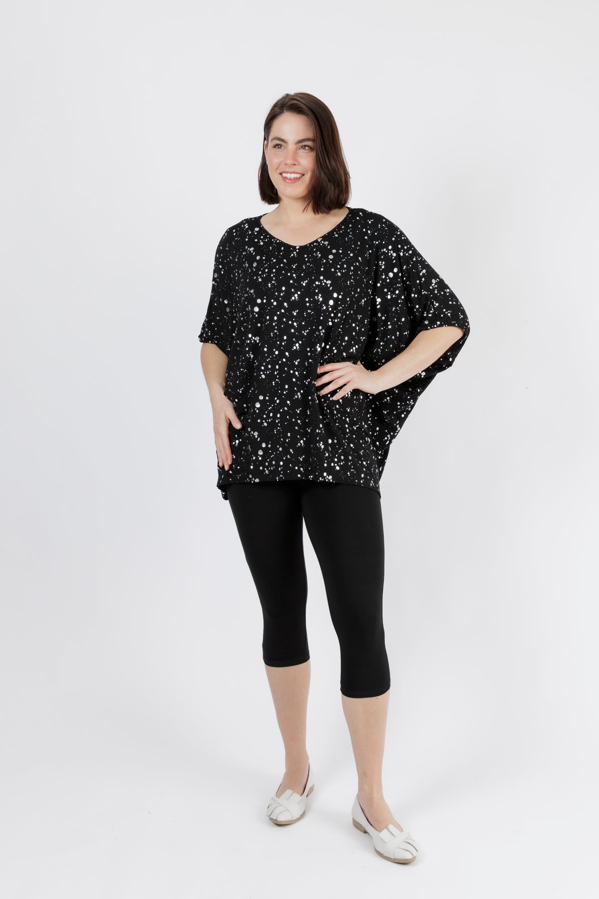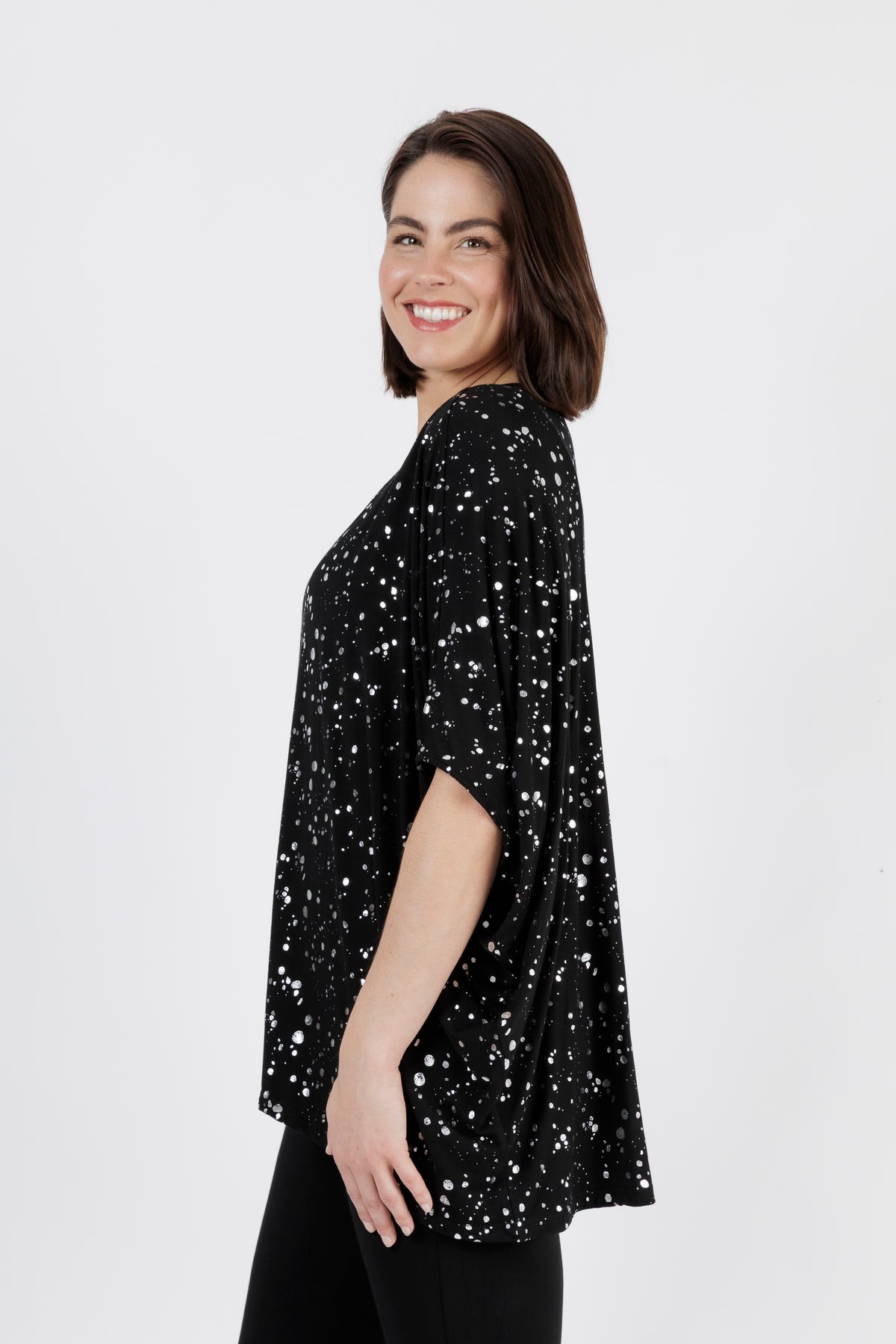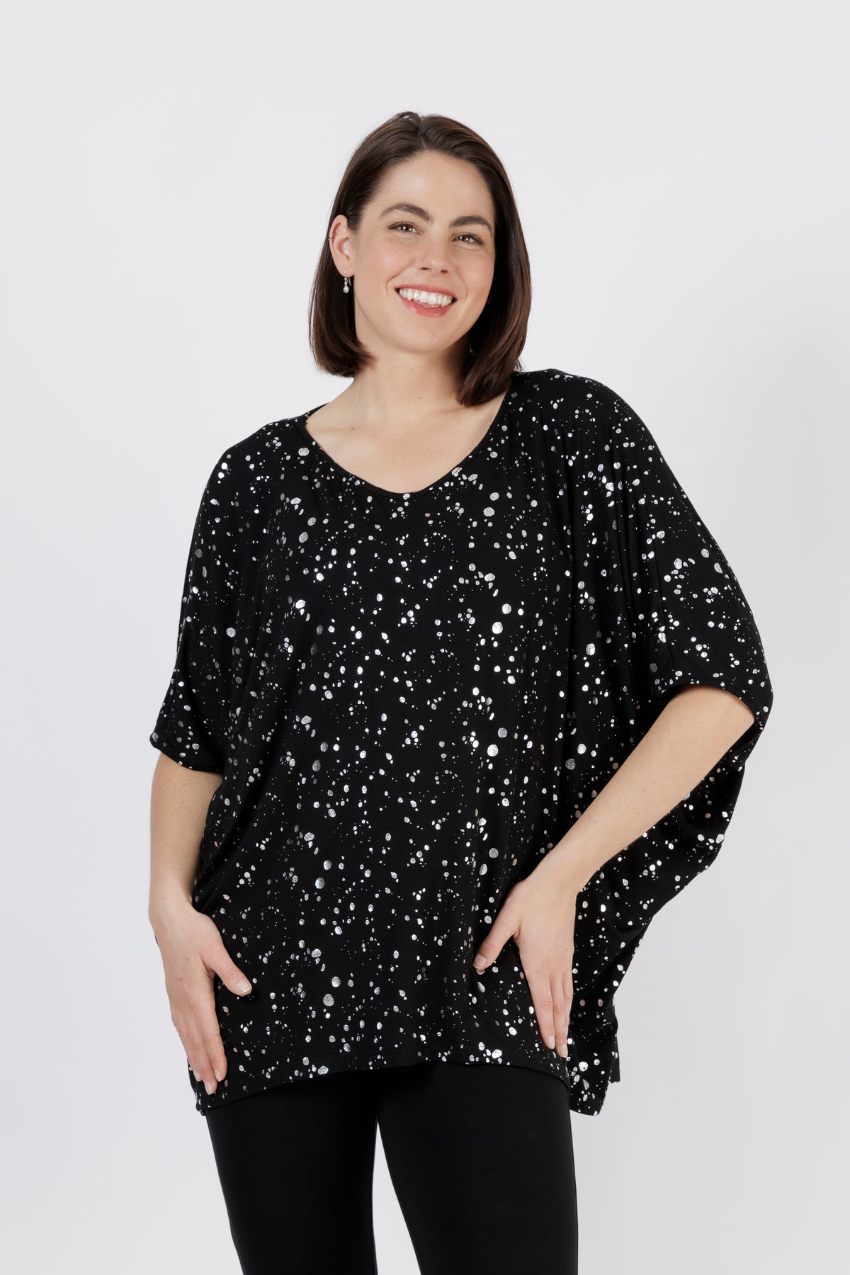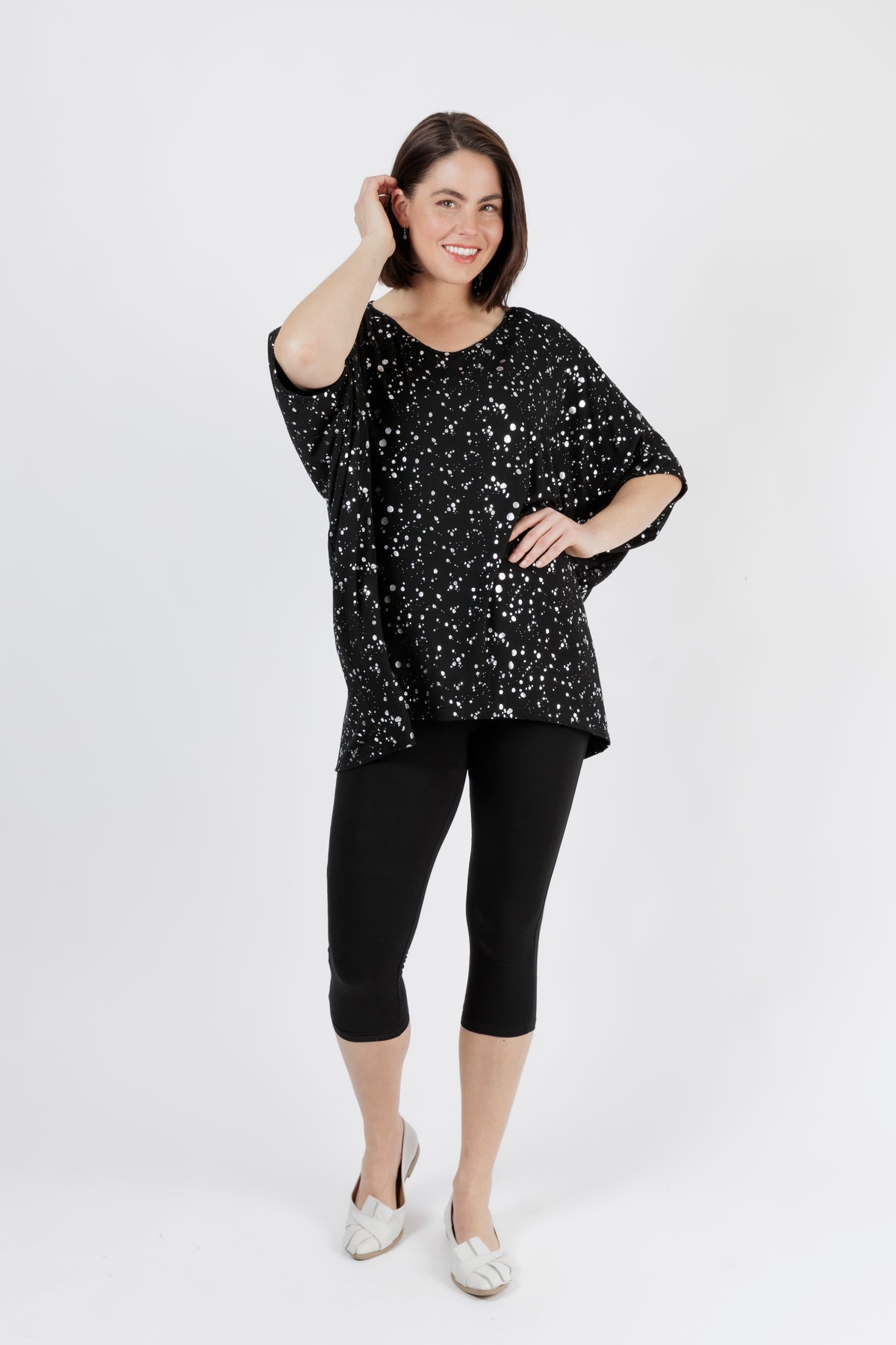 MARGHERITA Black Glitter Print Bamboo Batwing Top
