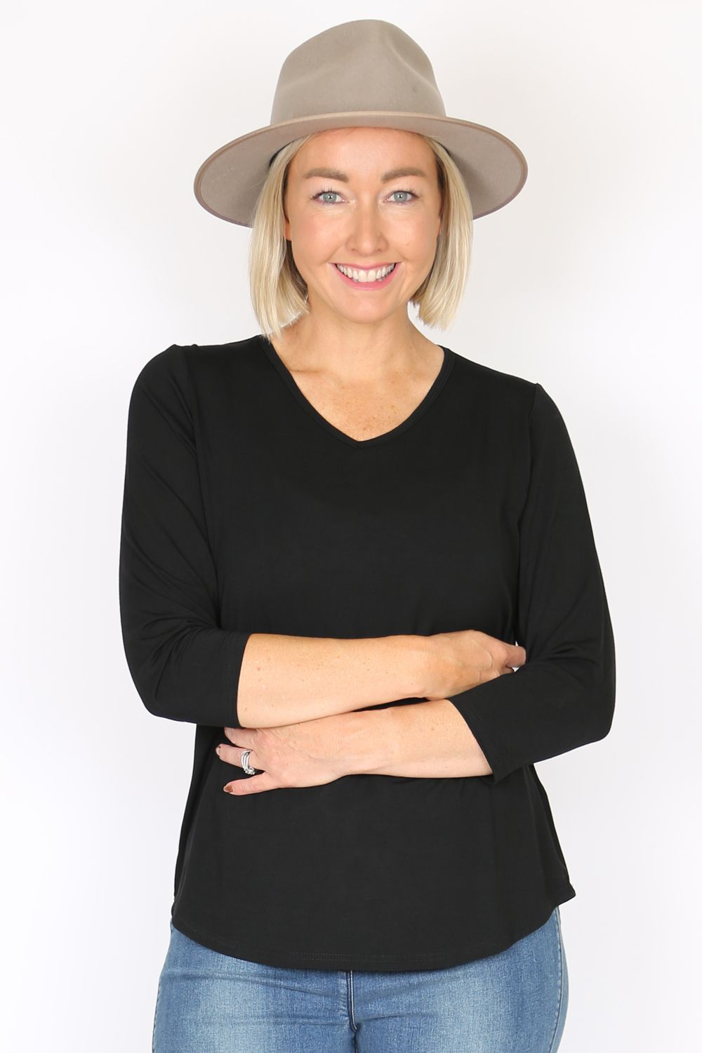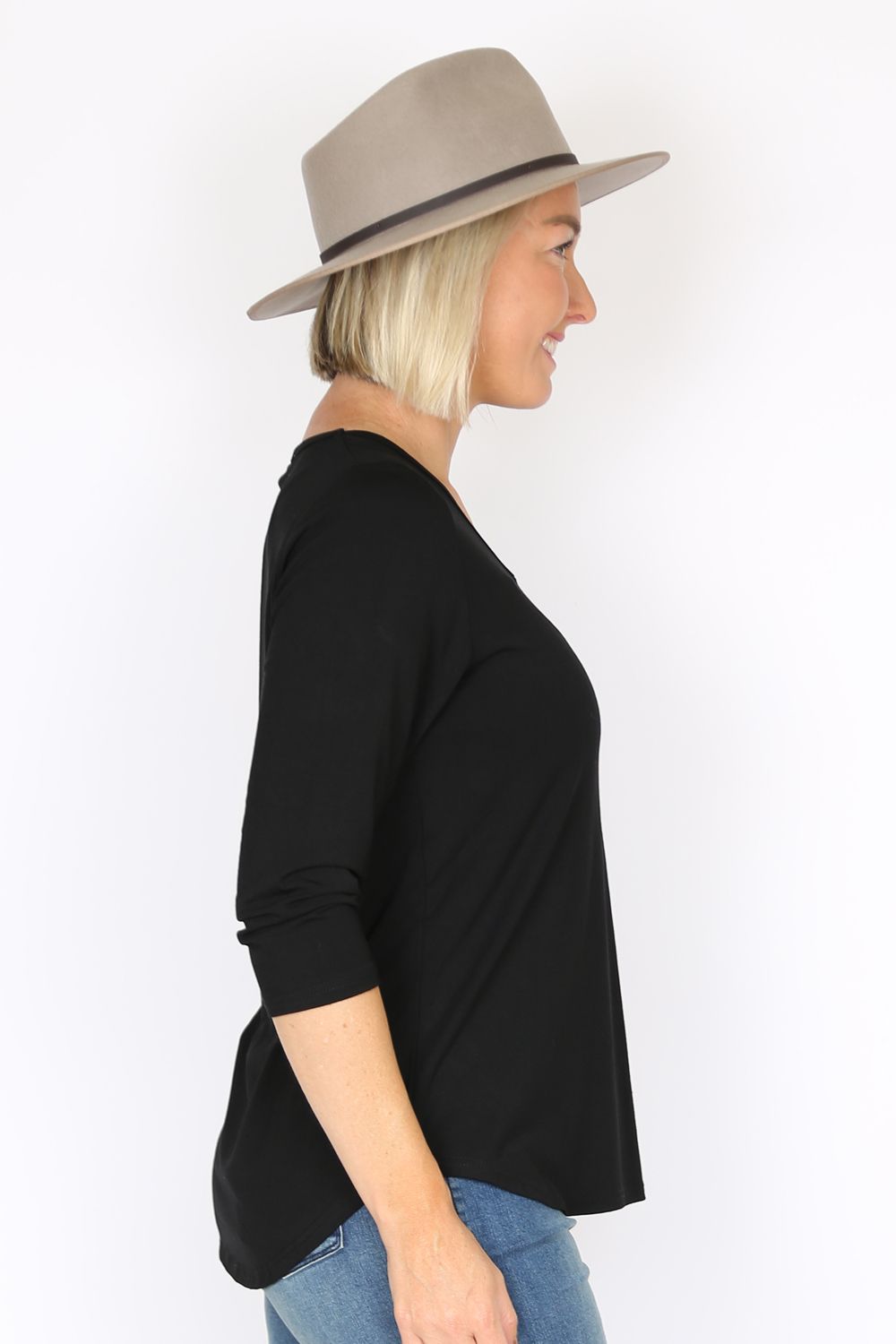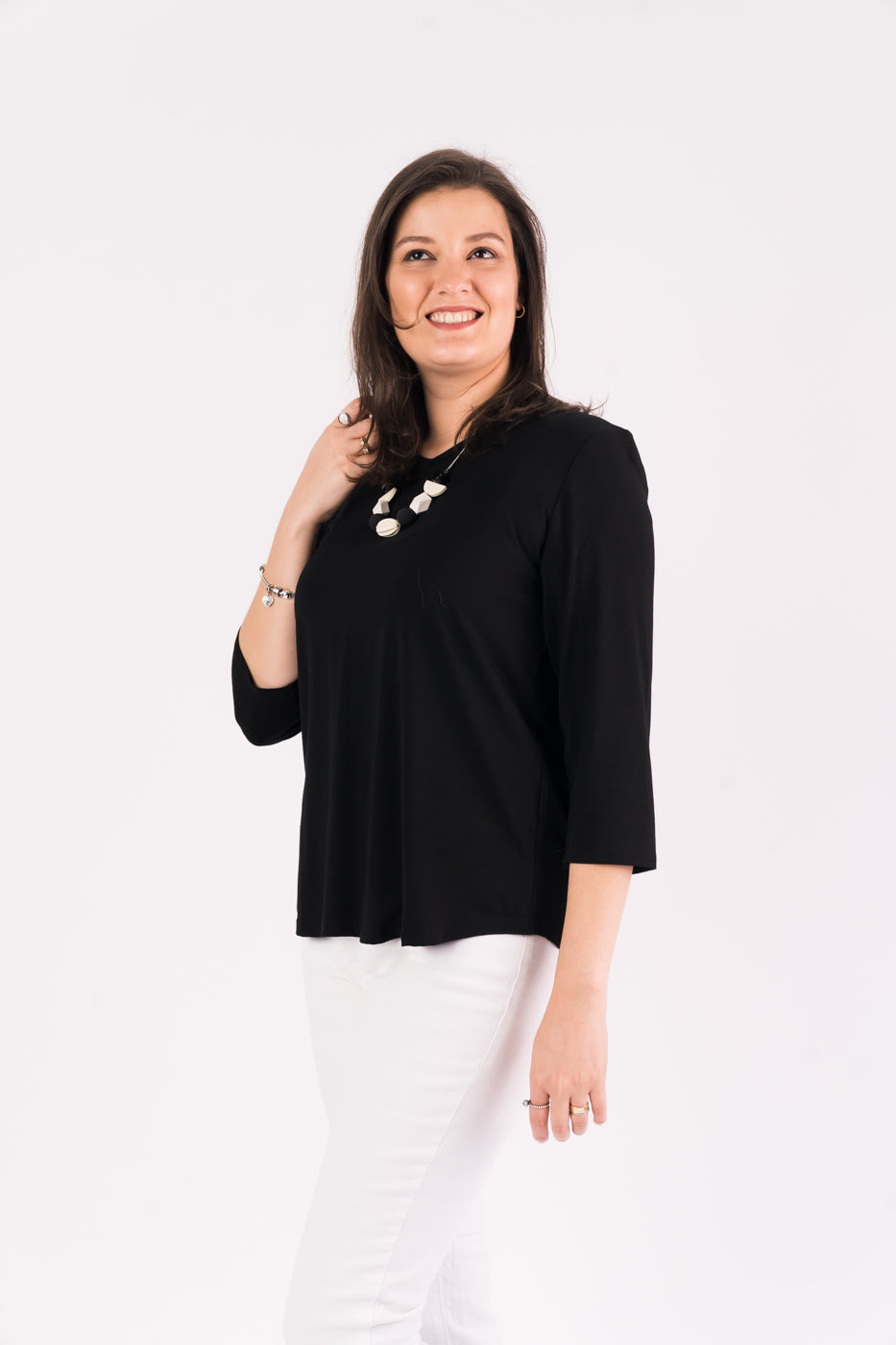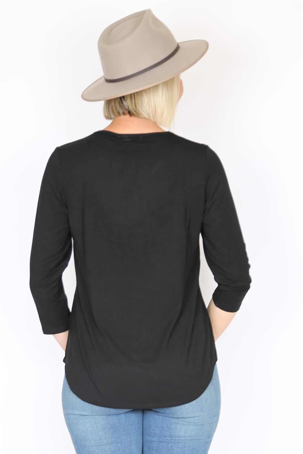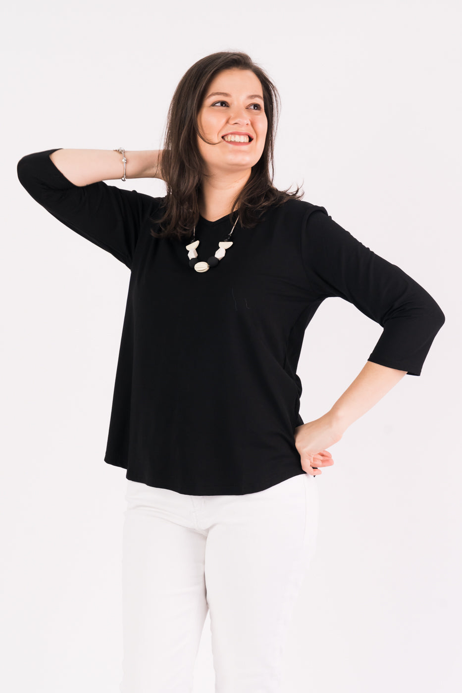 AUBREY Black Bamboo A-line T-shirt 3/4 Sleeve
