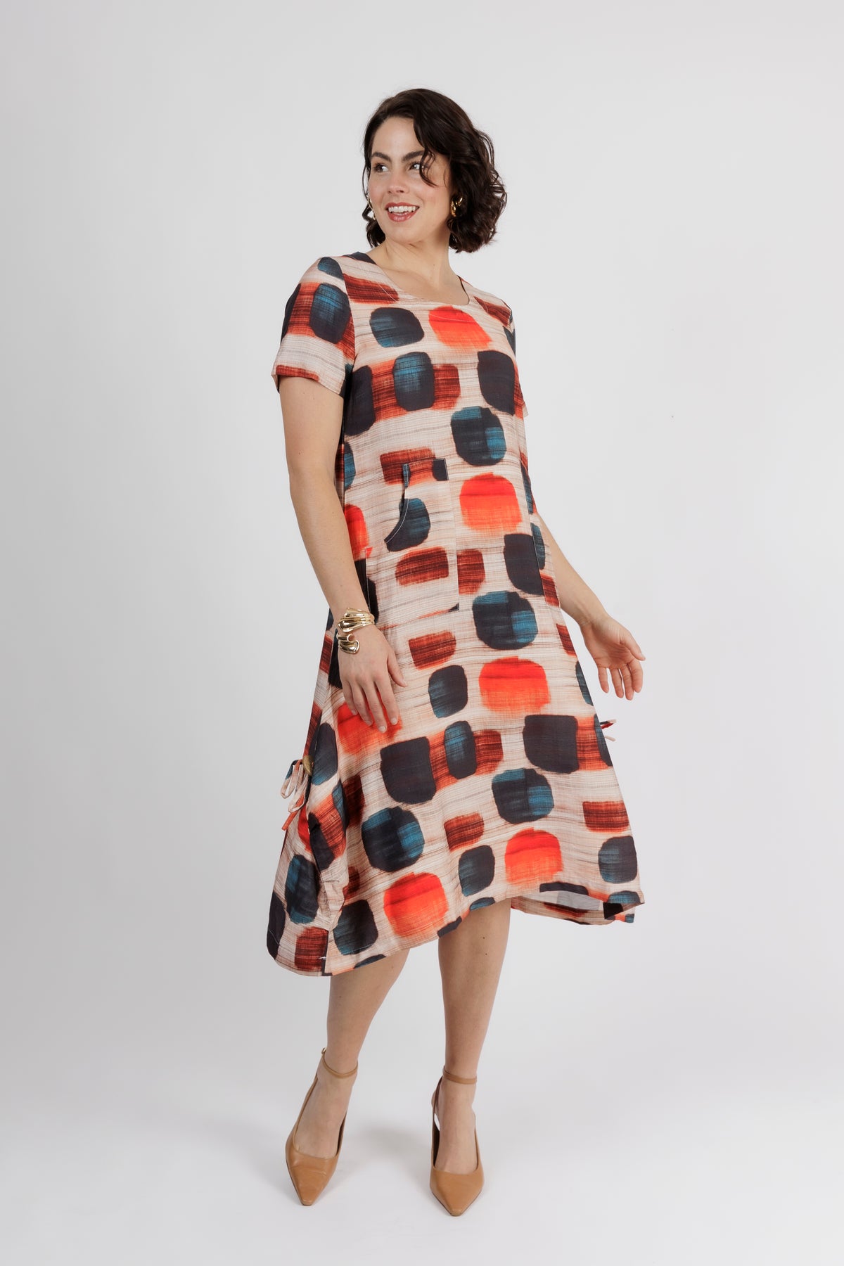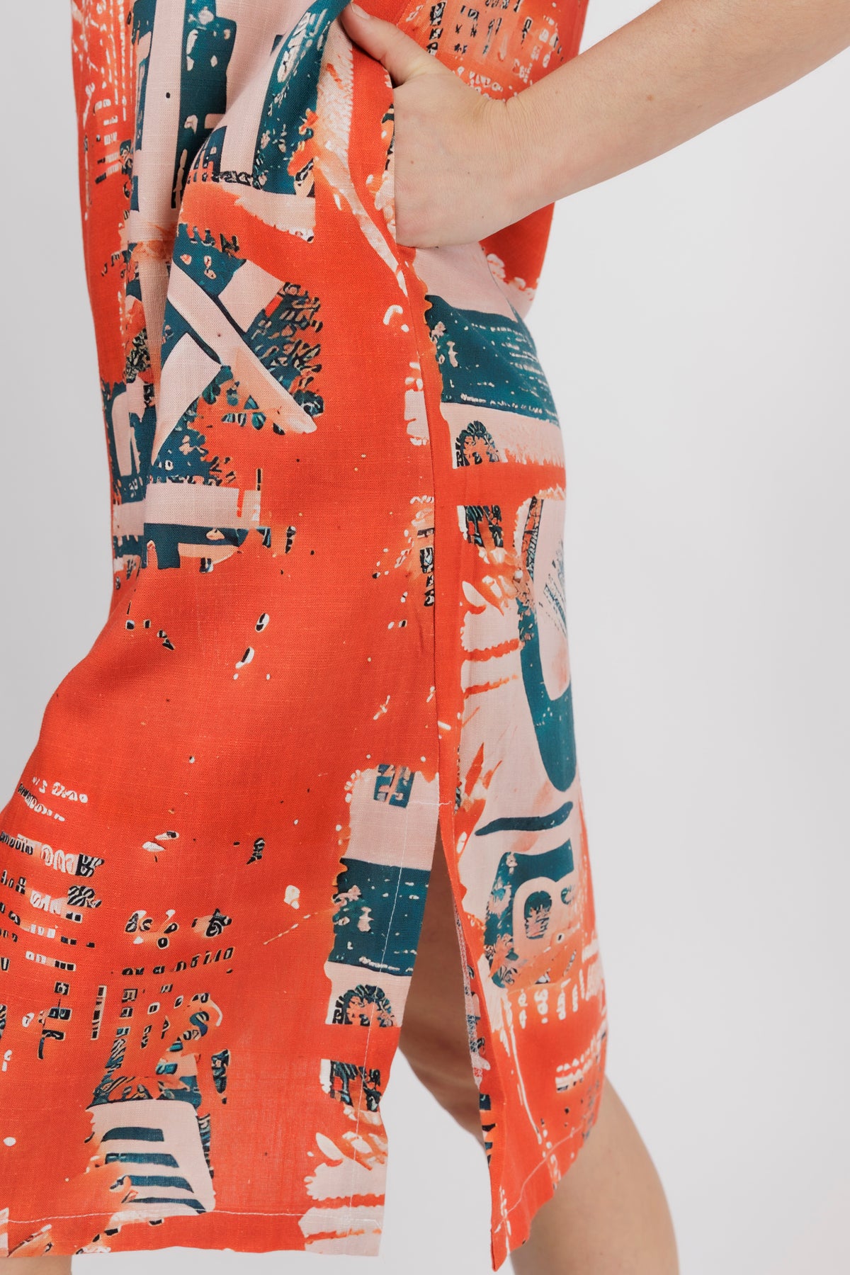 LIDA Multi Abstract Print Linen Blend Midi Dress