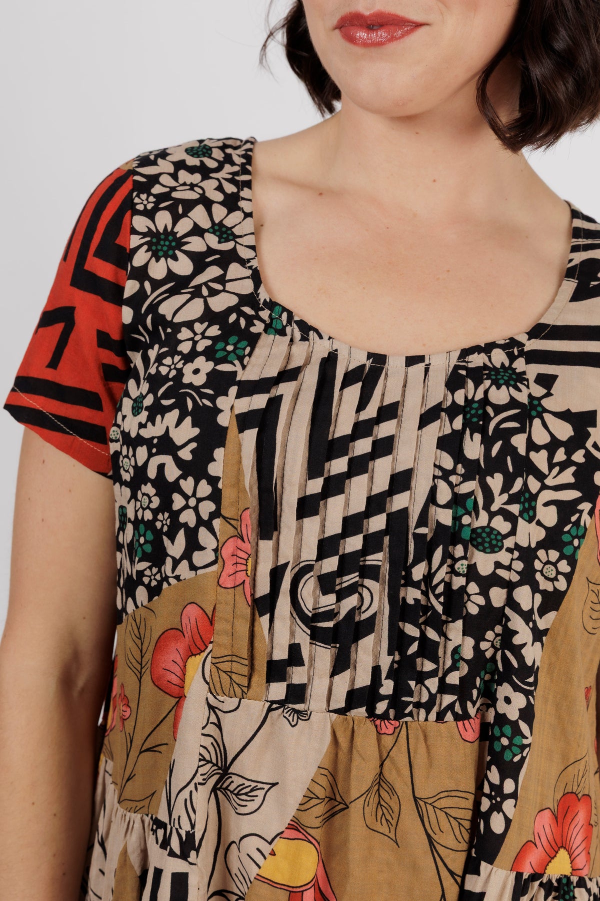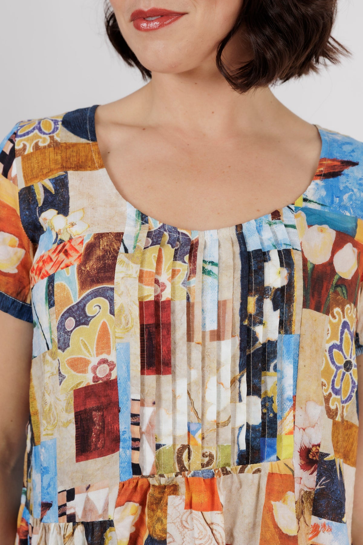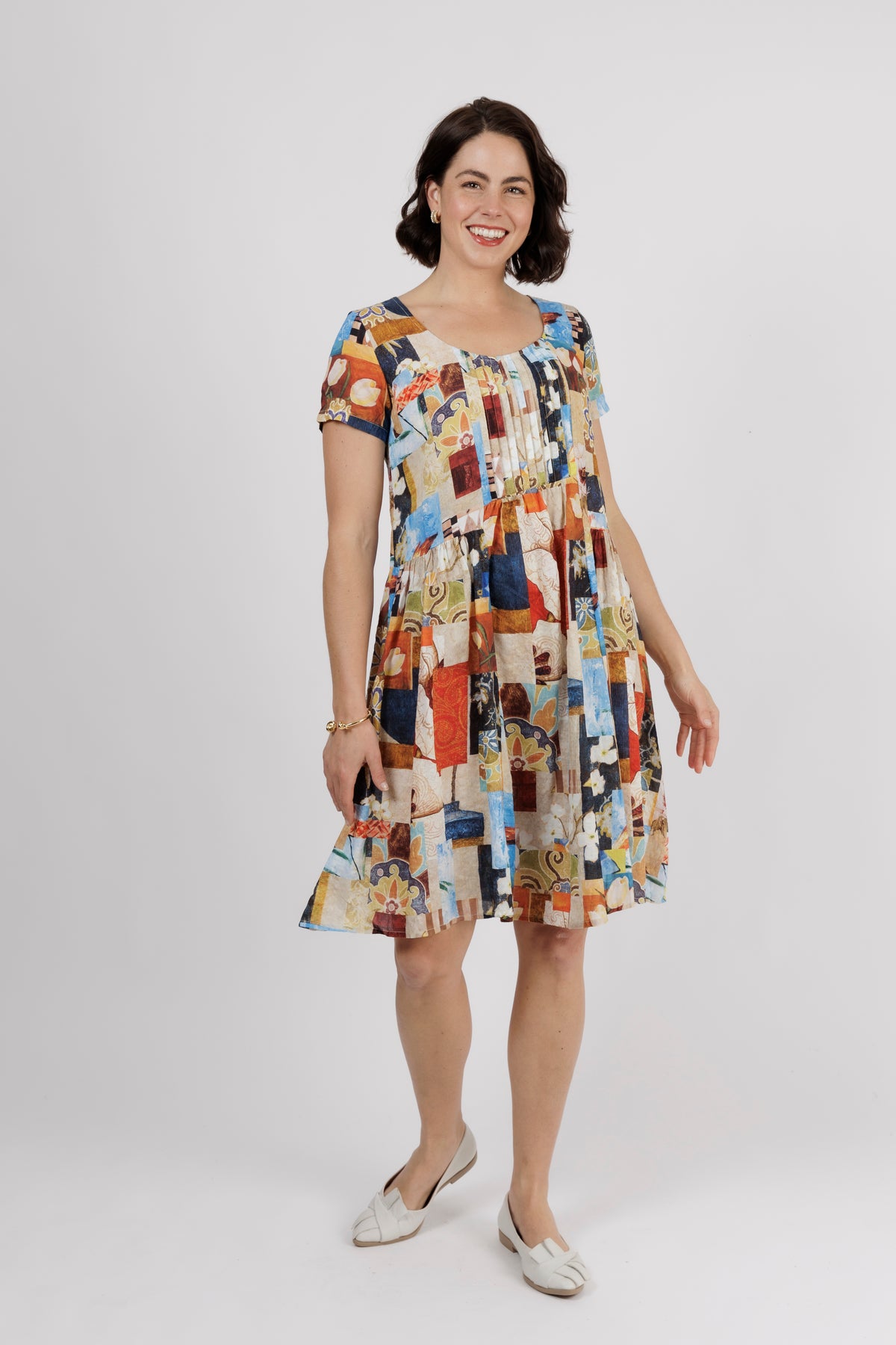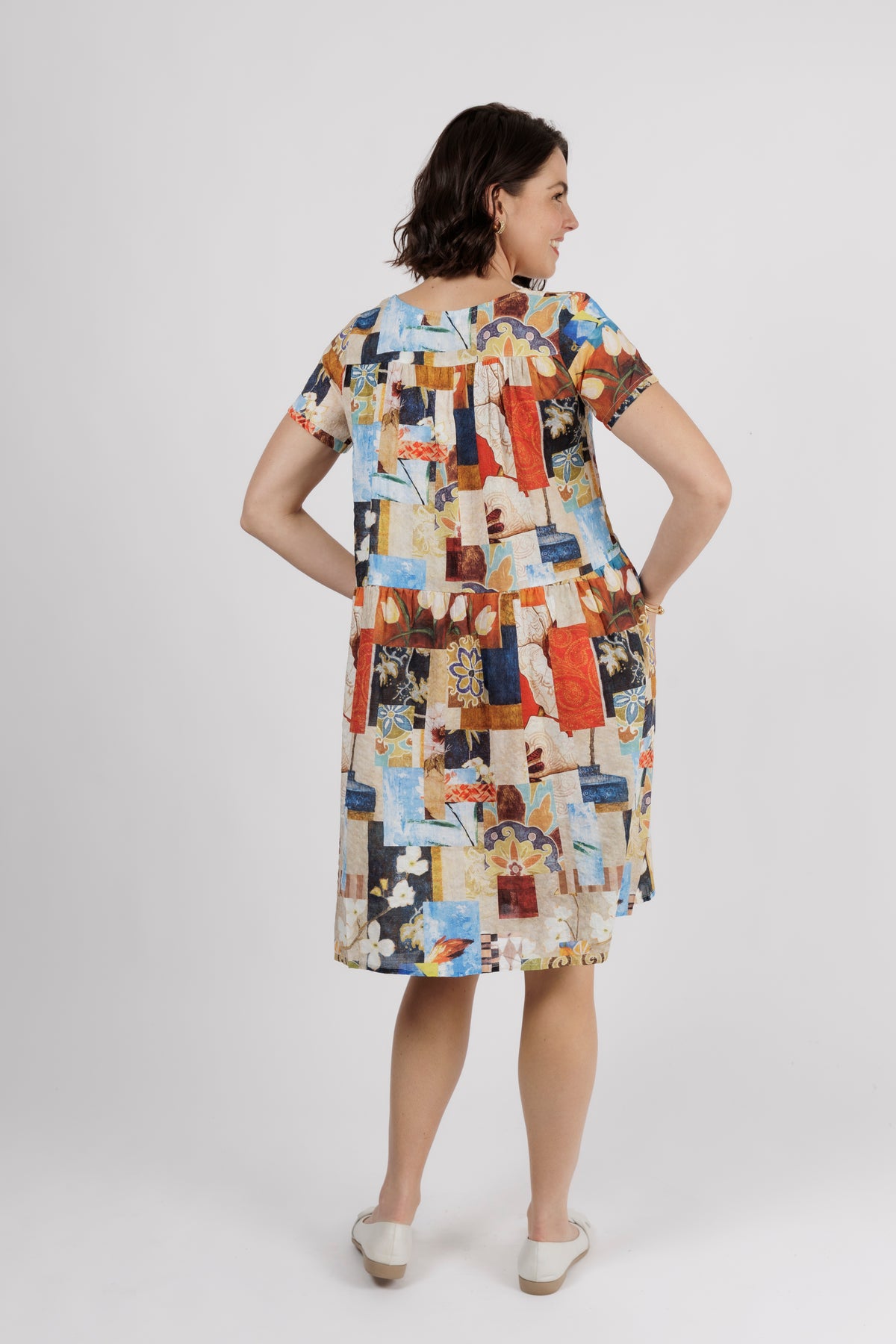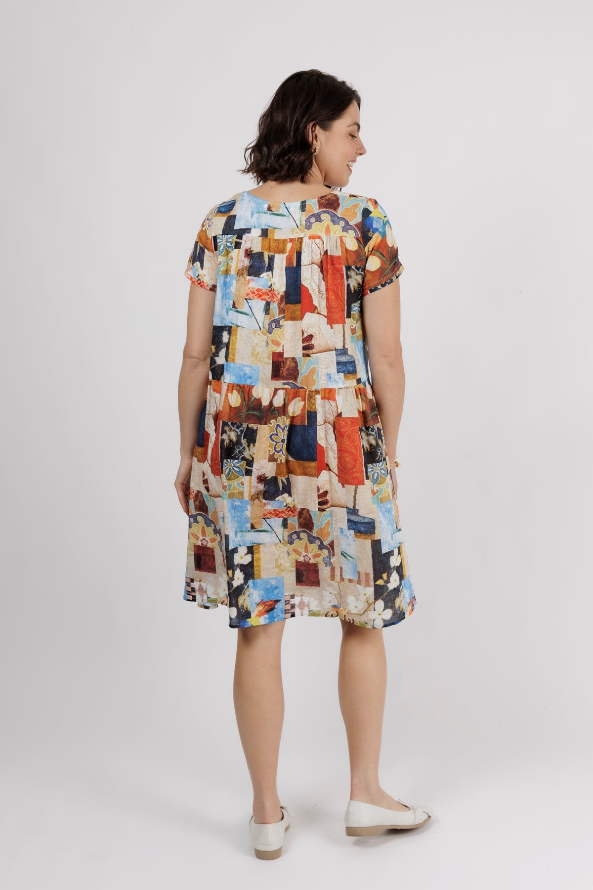 Regular price $59.89 Sale price $39.91Bring colour and creativity to your summer wardrobe with our Patchwork Print Cotton-Blend Dress, a relaxed and flattering style designed for everyday comfort. This vibrant design features an artistic patchwork pattern combining floral, geometric, and abstract elements in warm earthy tones with pops of blue and red.