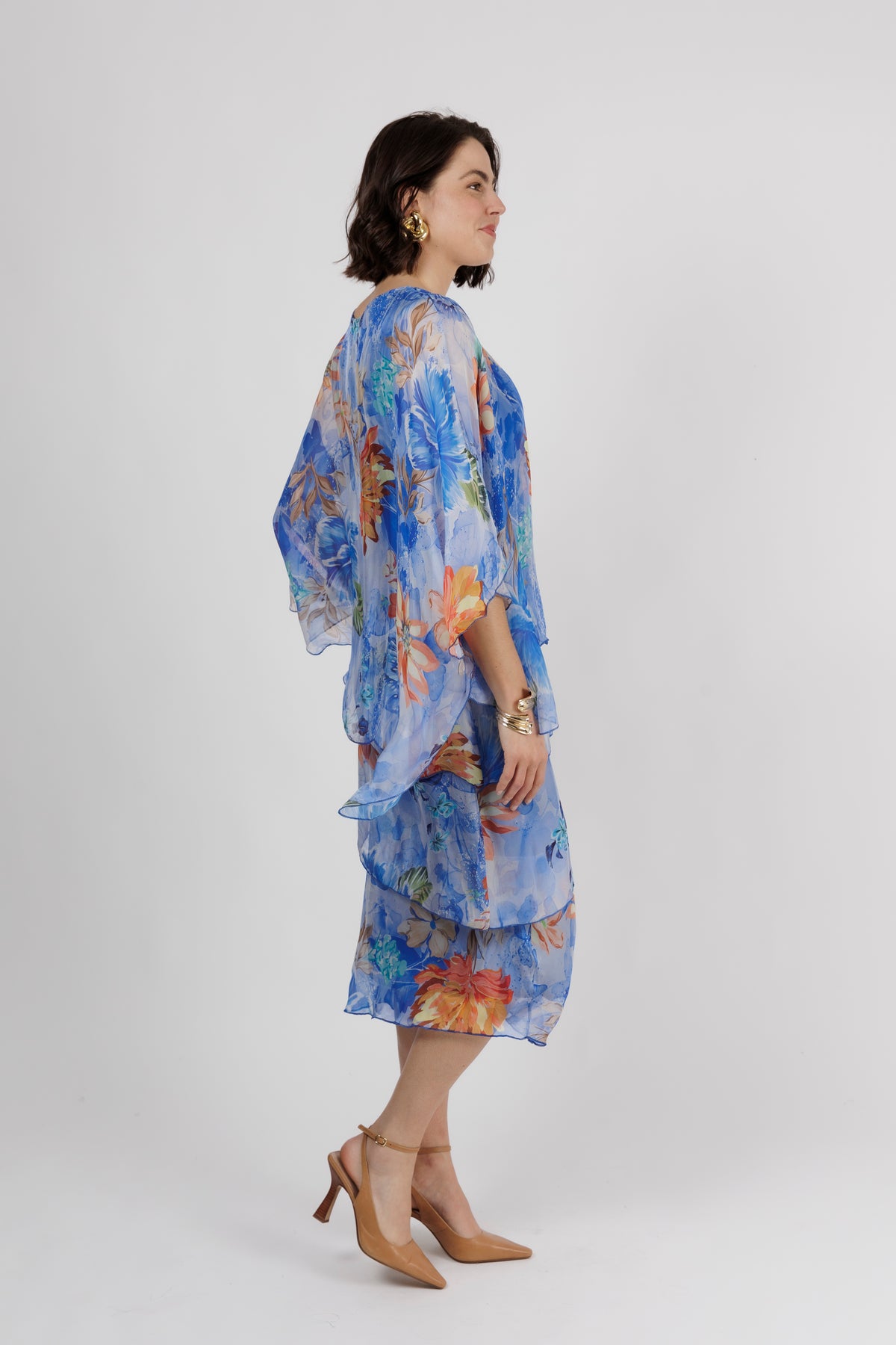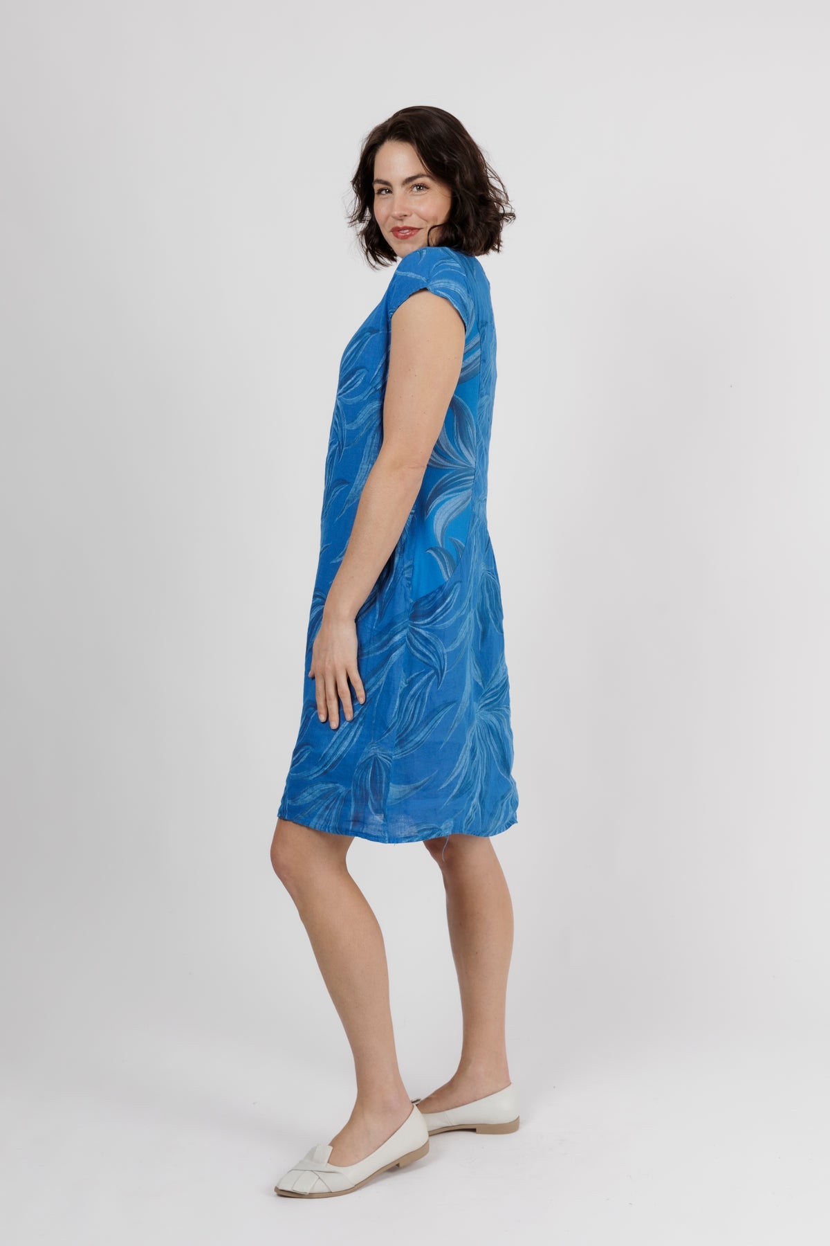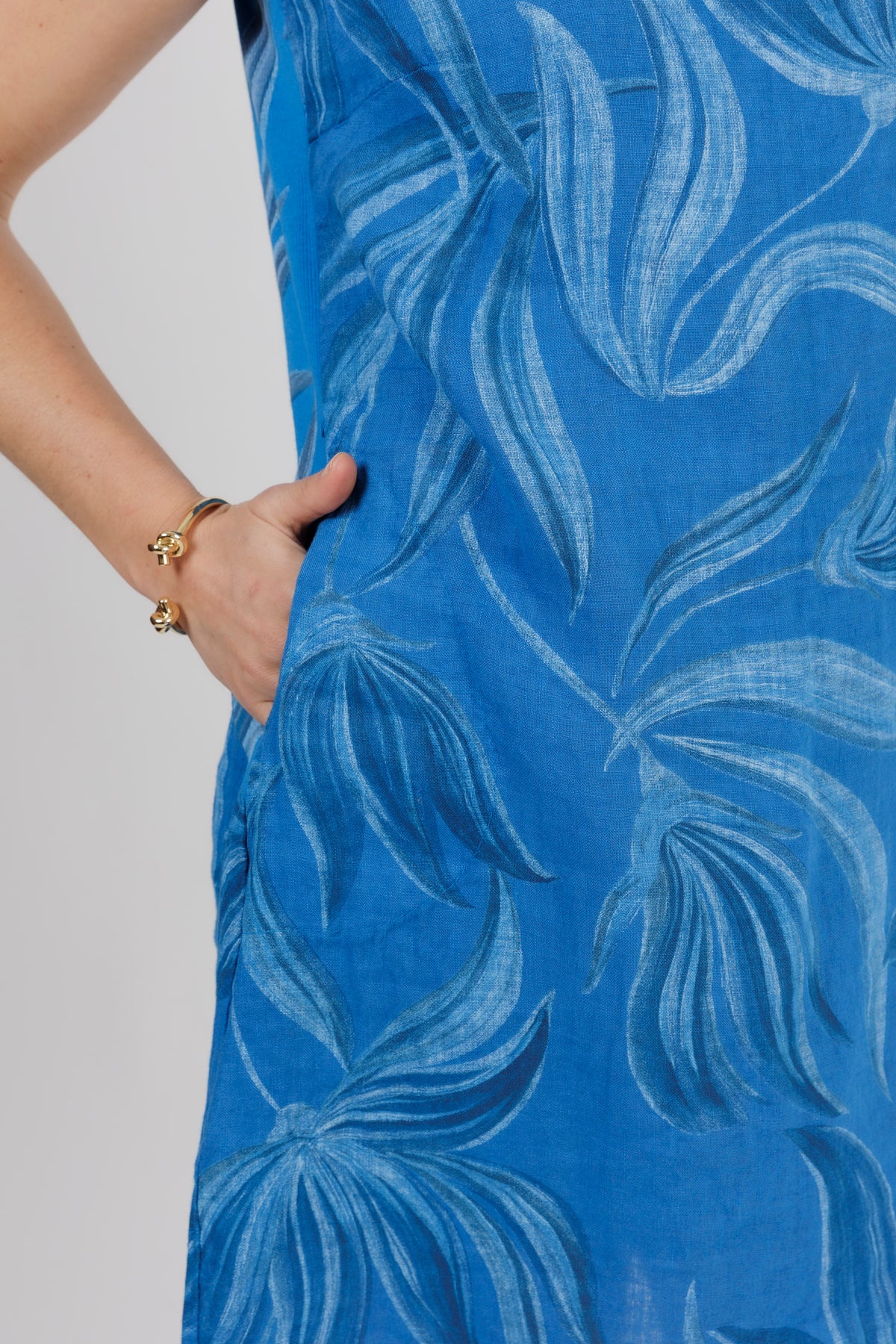 KASATA Cobalt Bold Print Silk Shirt Dress