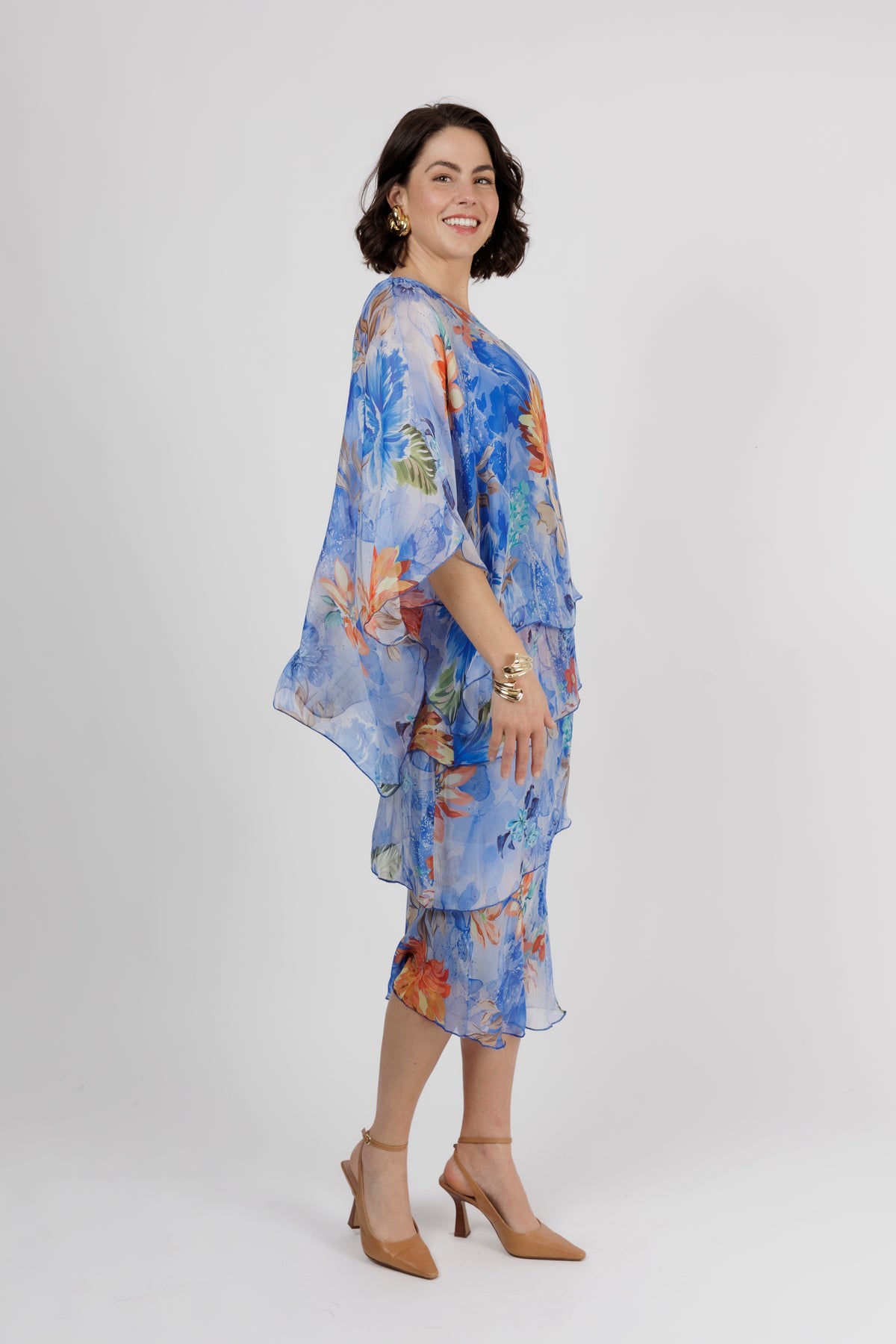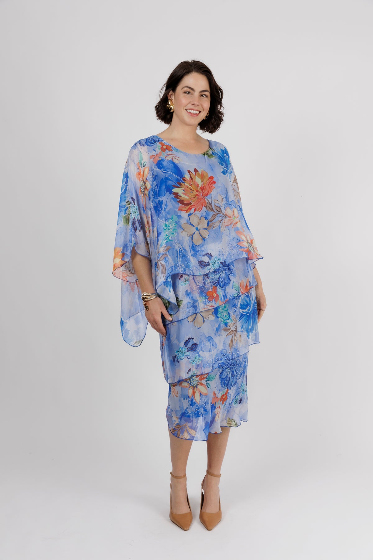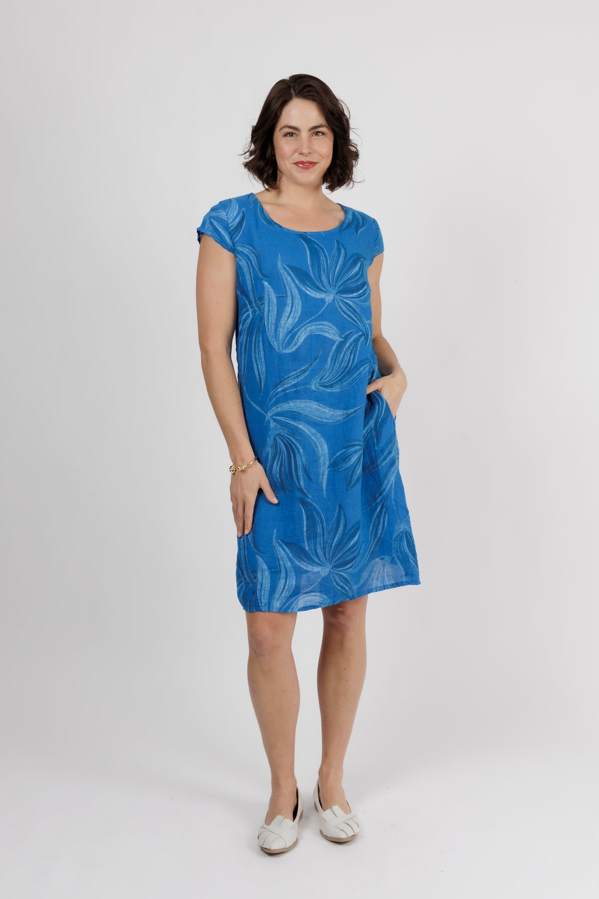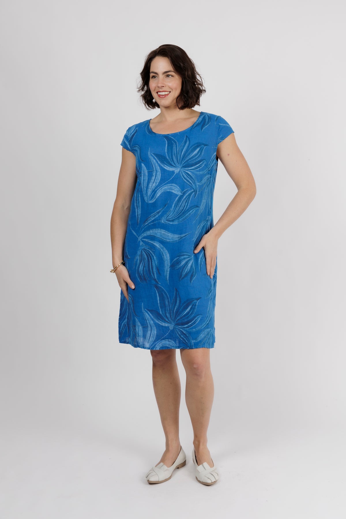KASATA Cobalt Bold Print Silk Shirt Dress