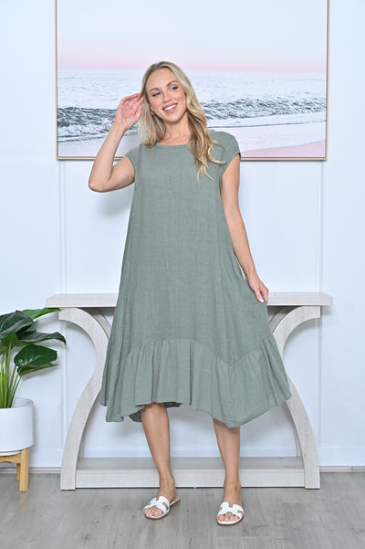 EMILIA Military A Line Flare Hem Linen Maxi Dress