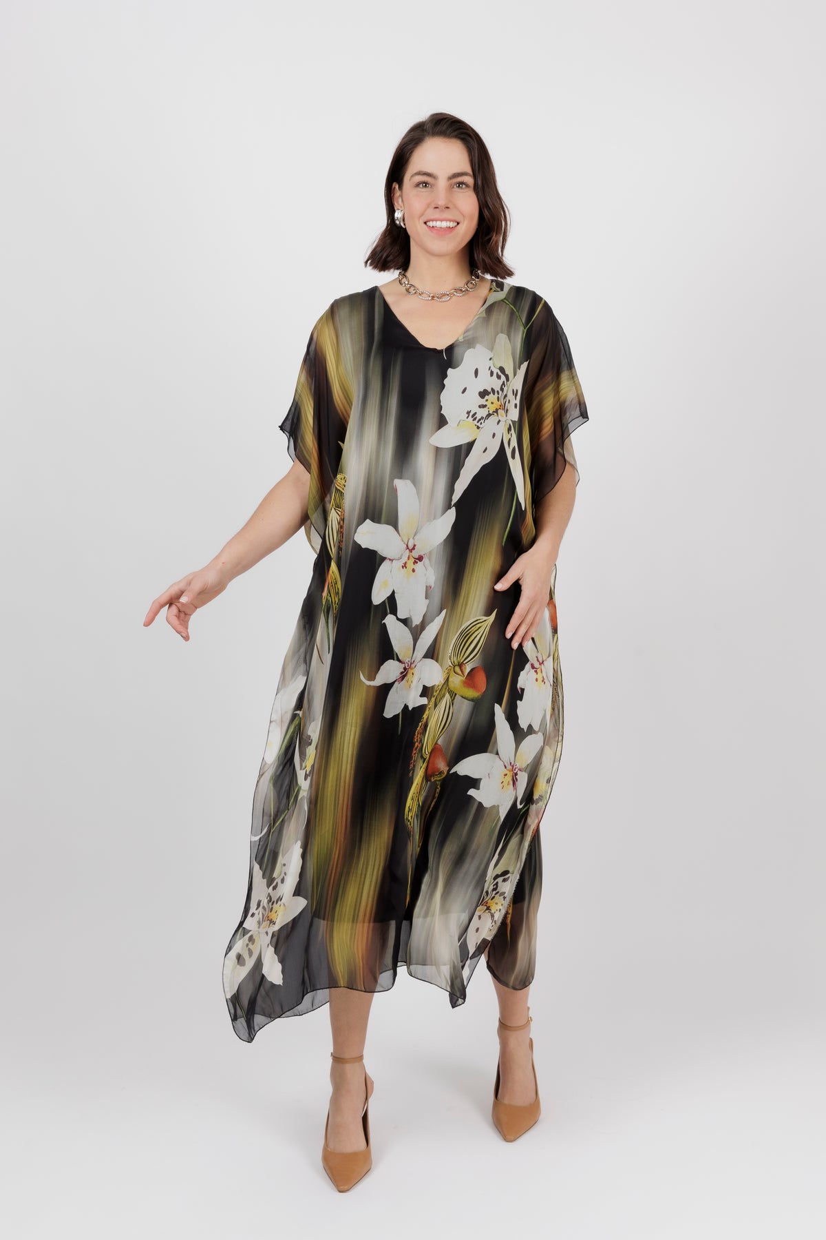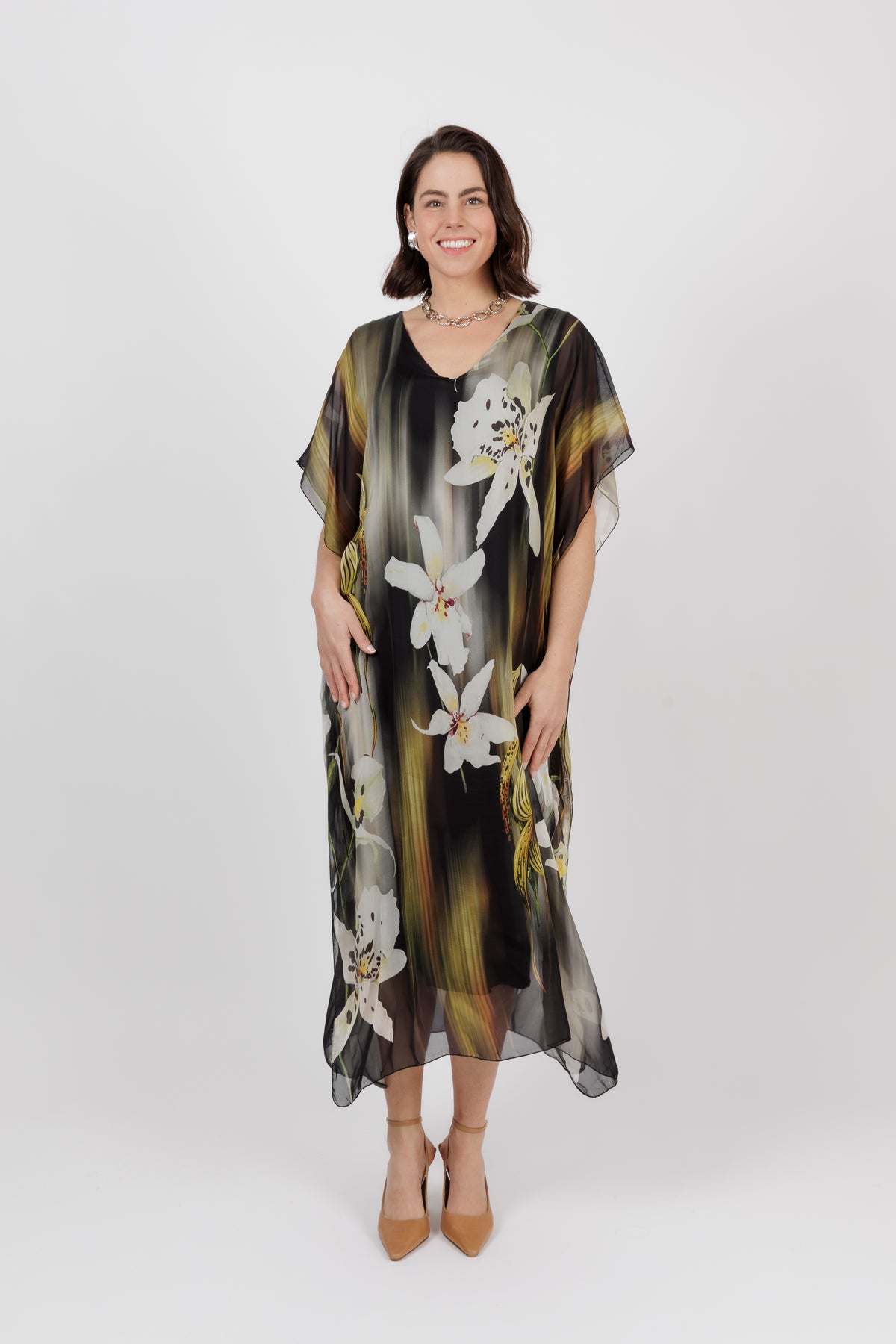 - COLOUR: Lovely floral print on khaki base