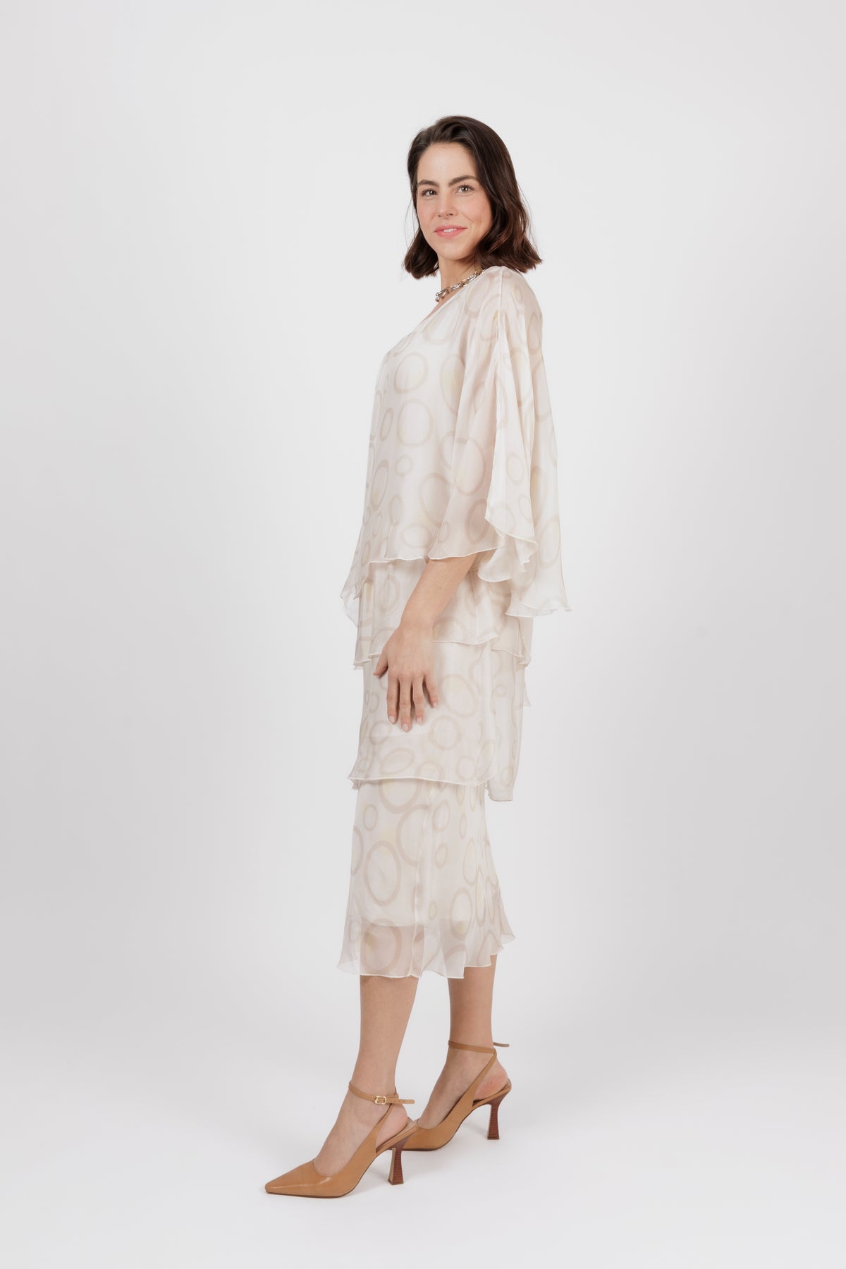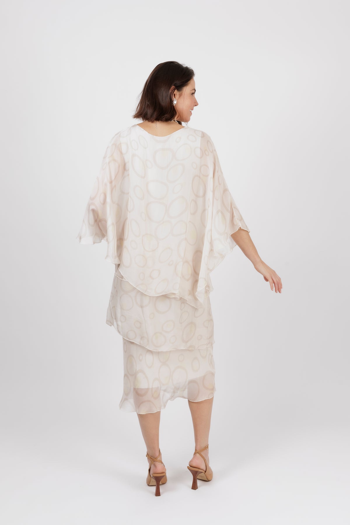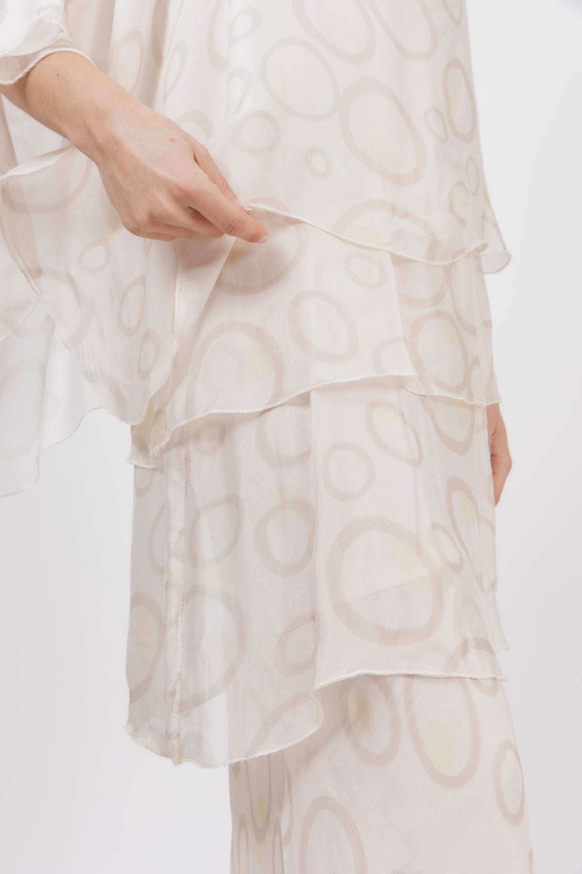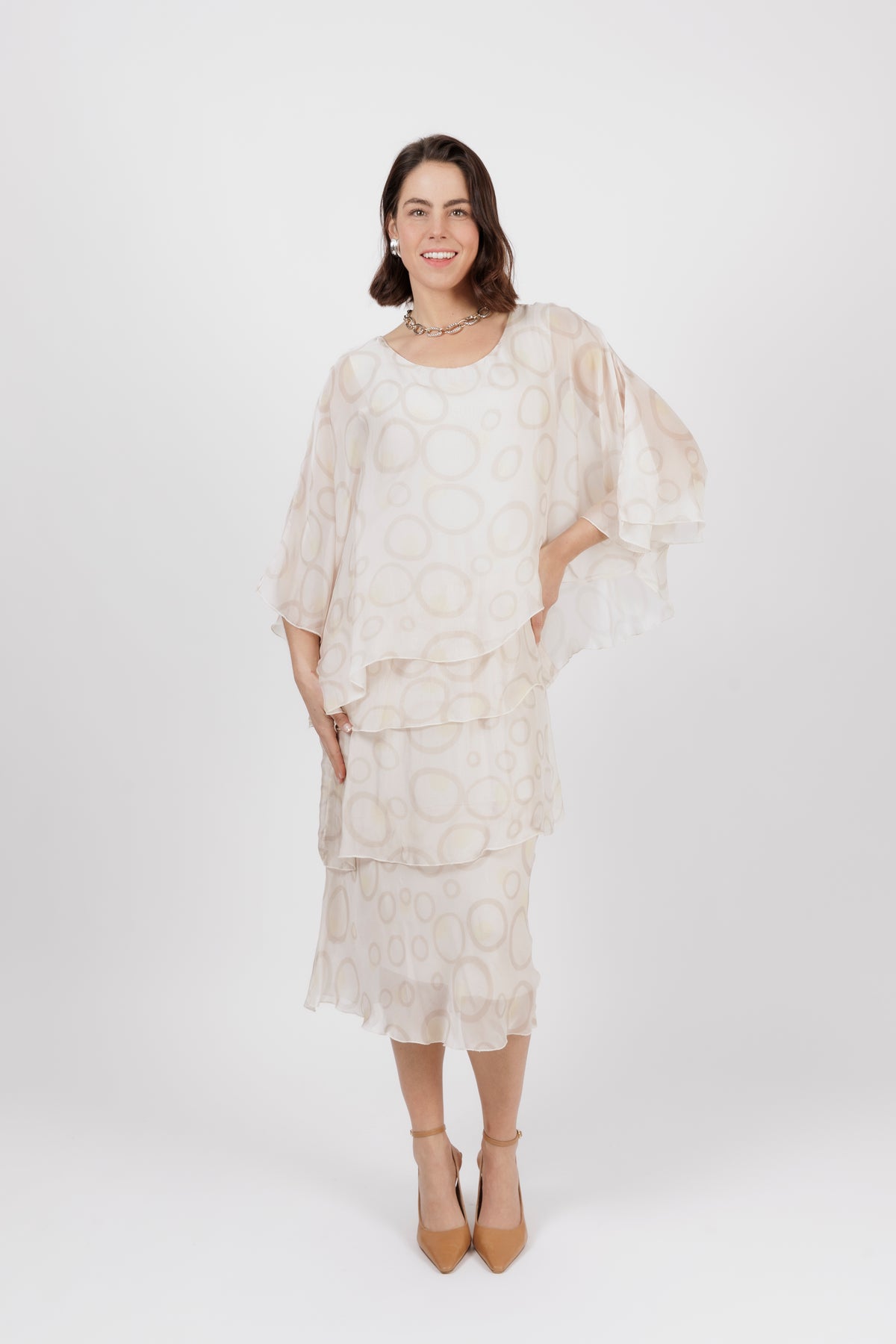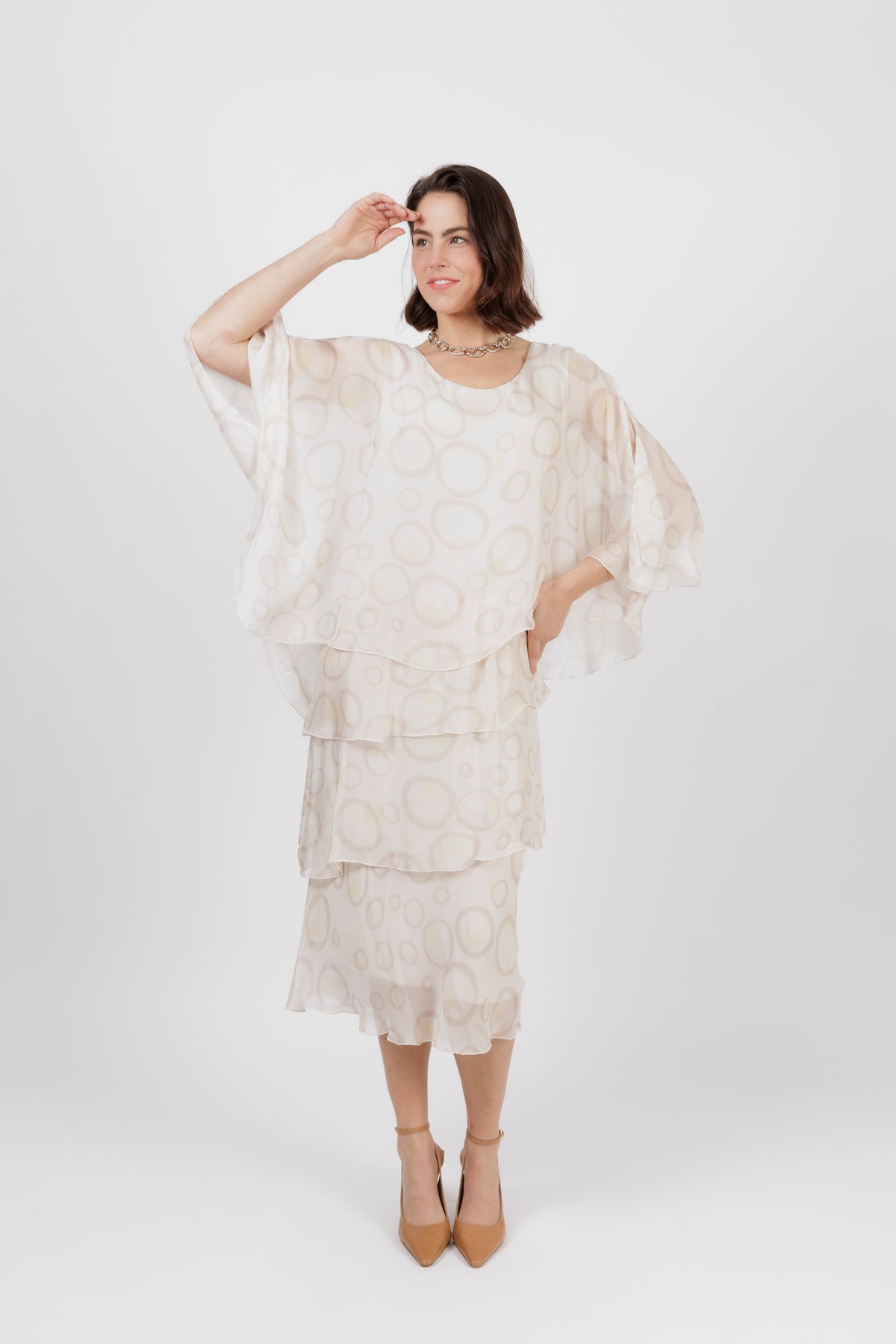AMIDALA Cream Circle Silk Dress