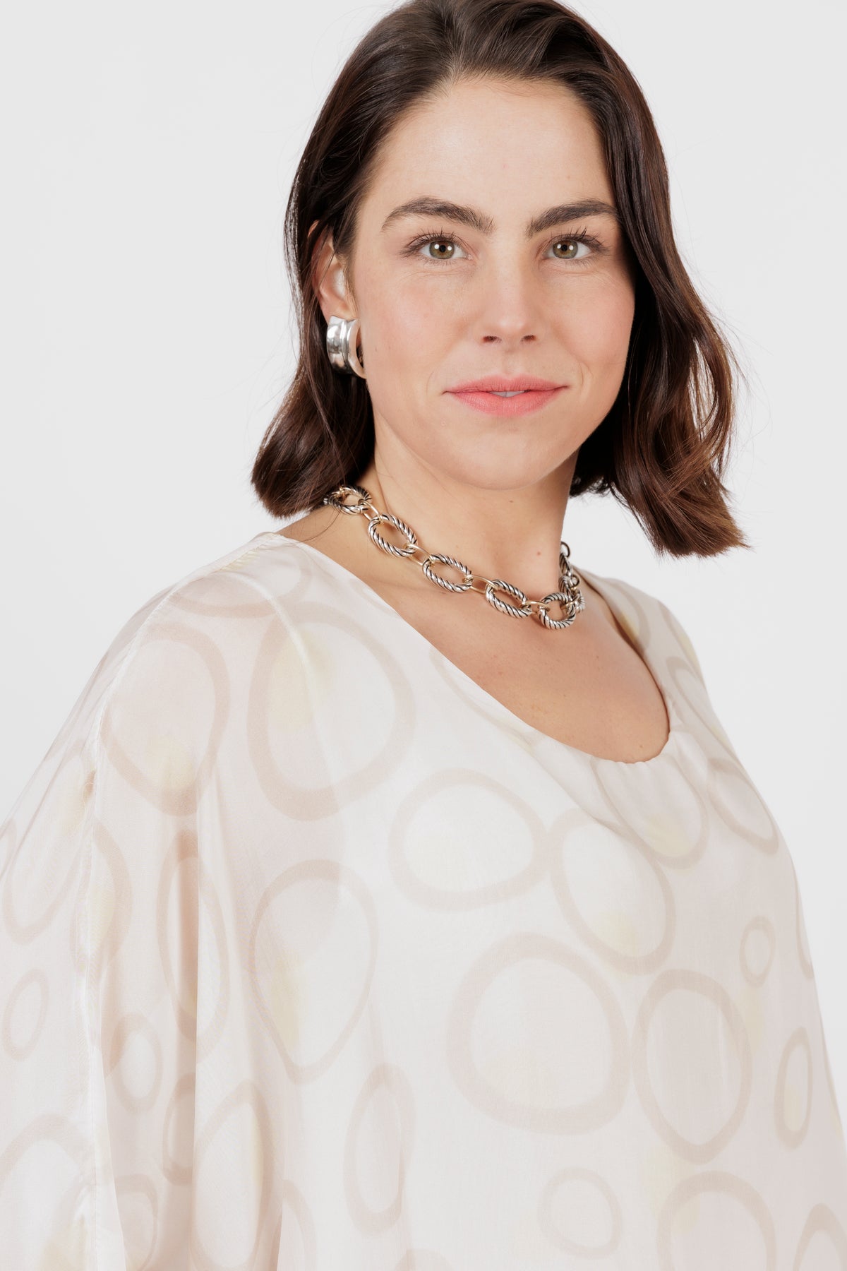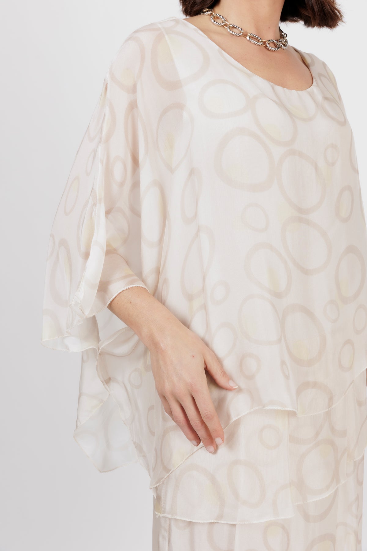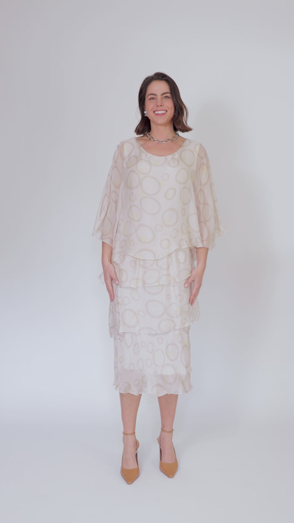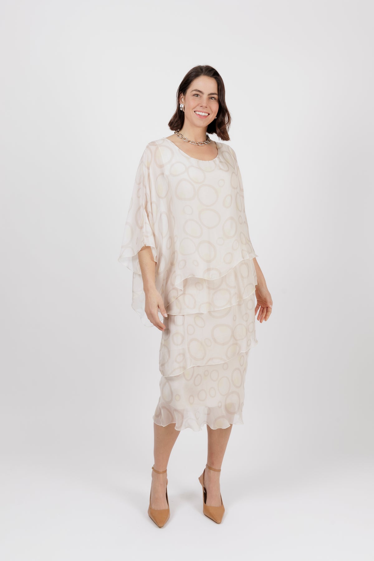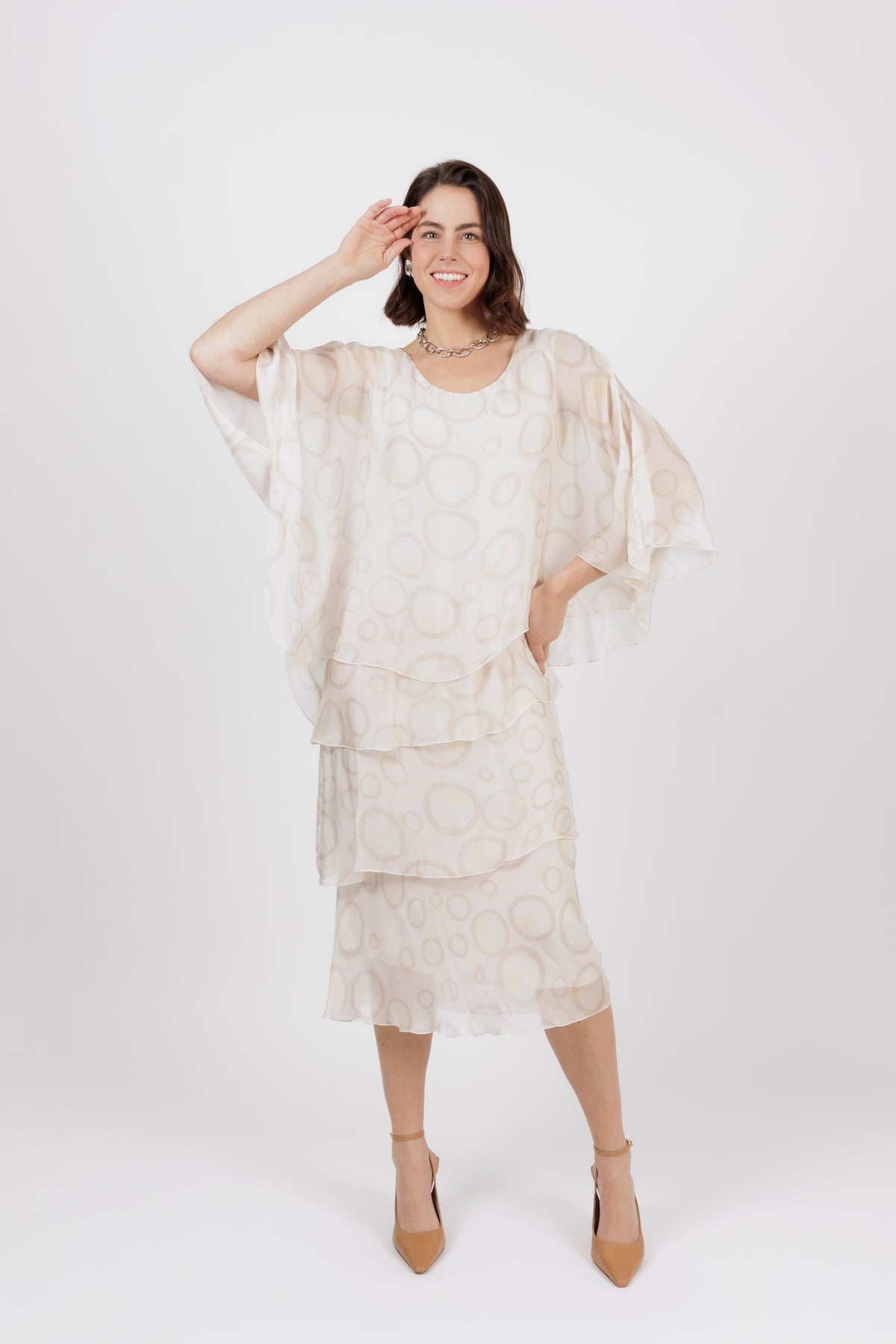AMIDALA Cream Circle Silk Dress