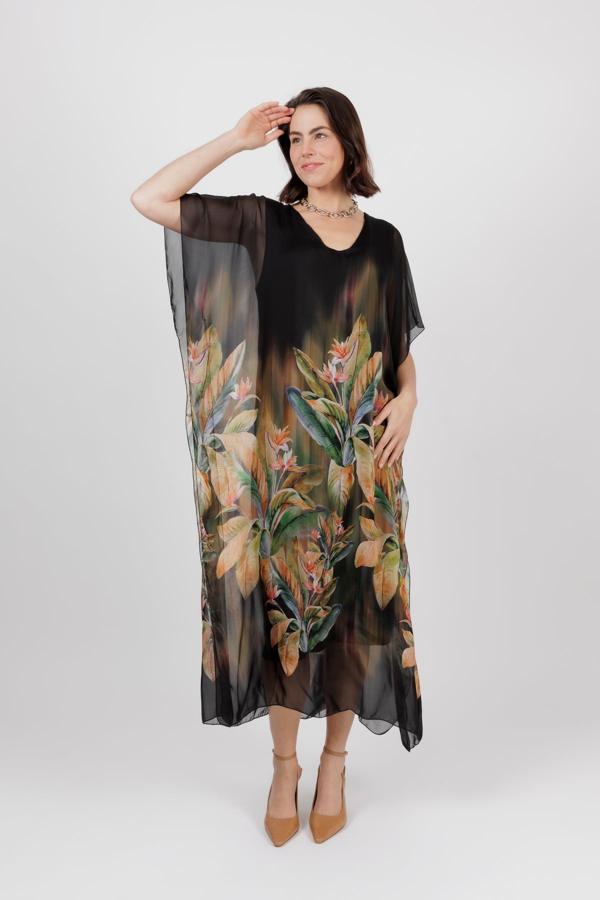 MAREE Black Floral Caftan