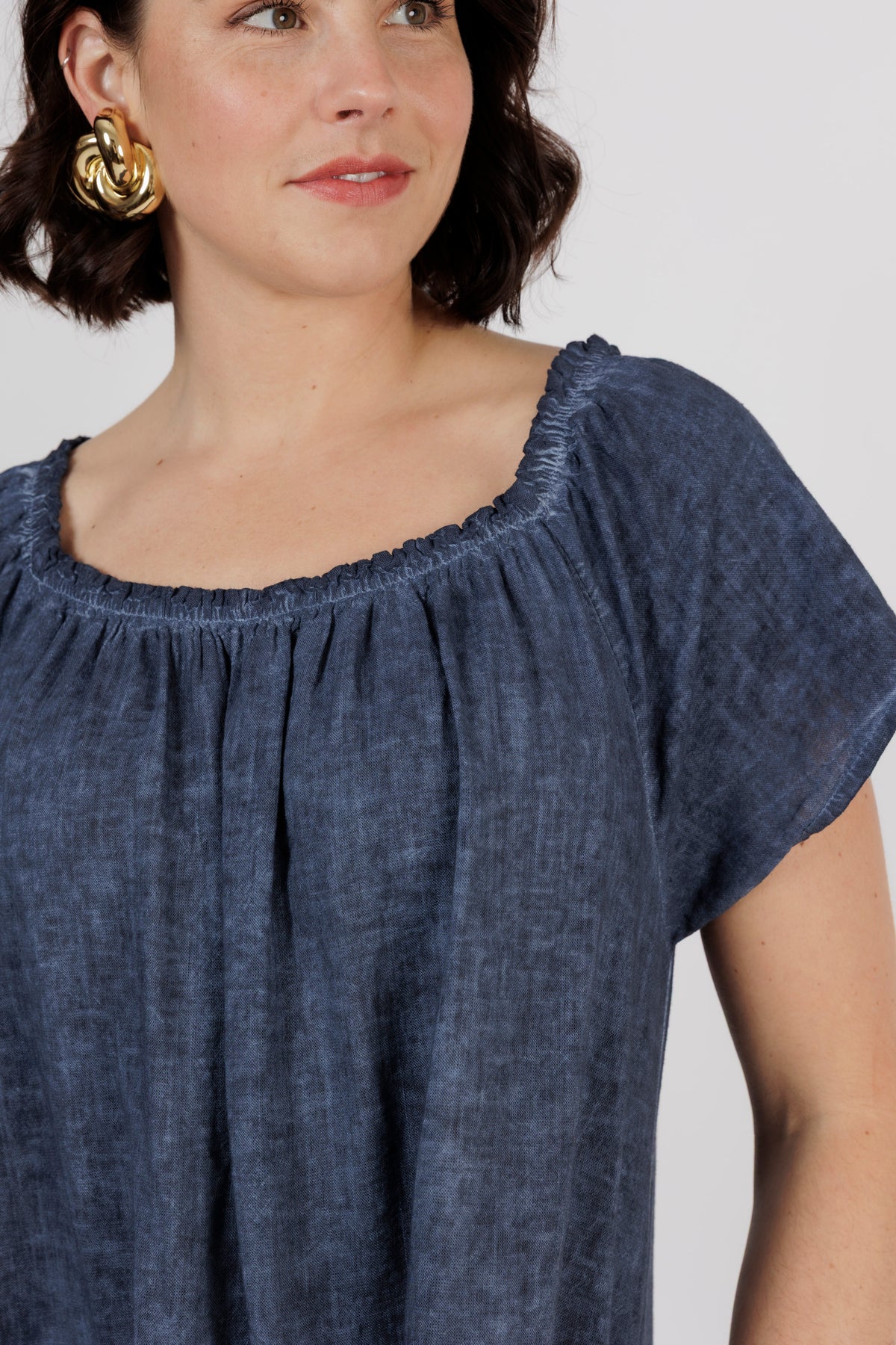 - Shirring rounded neckline