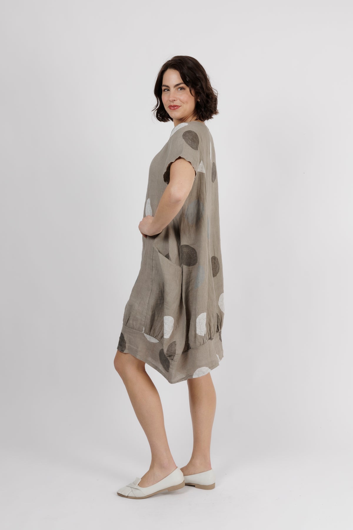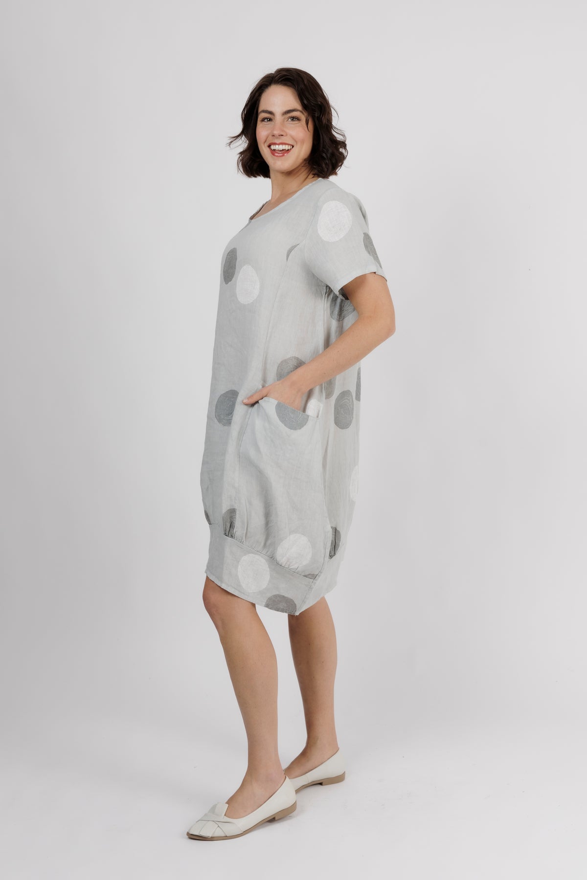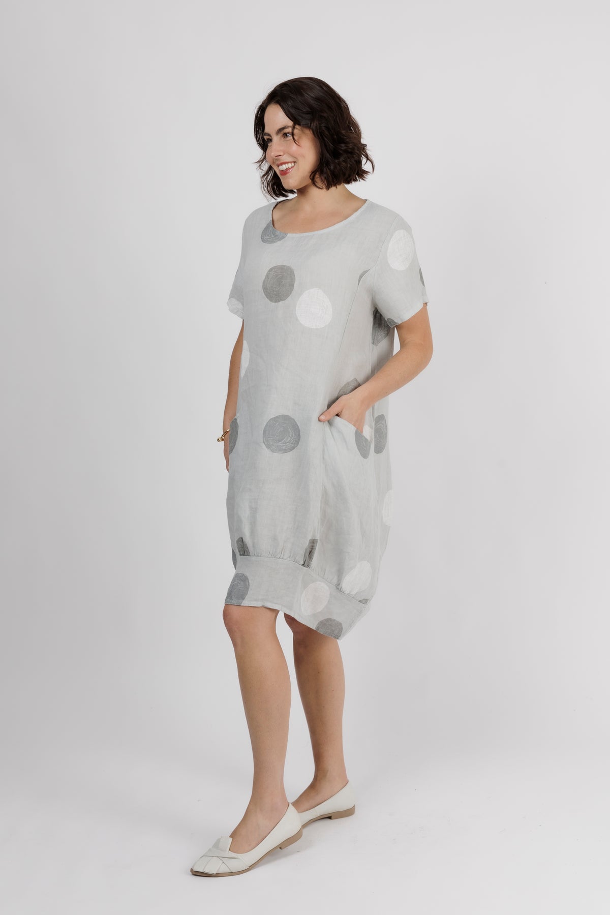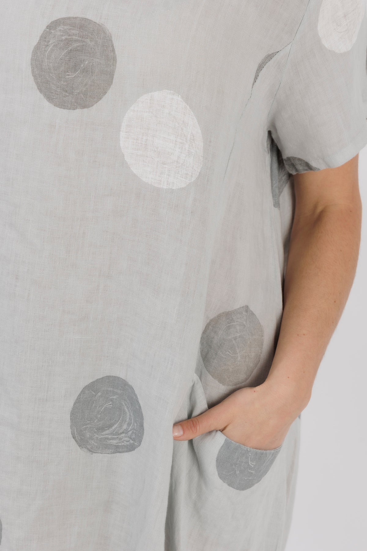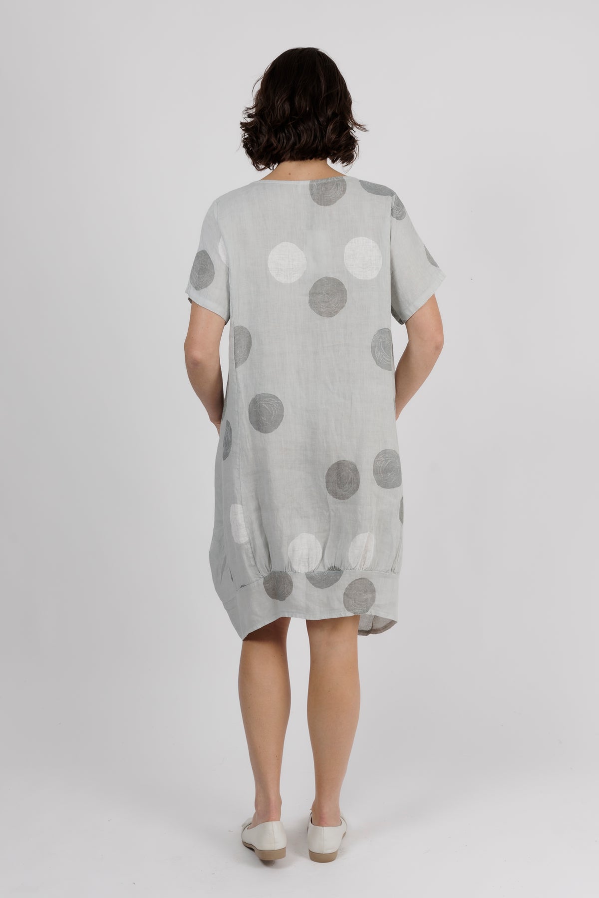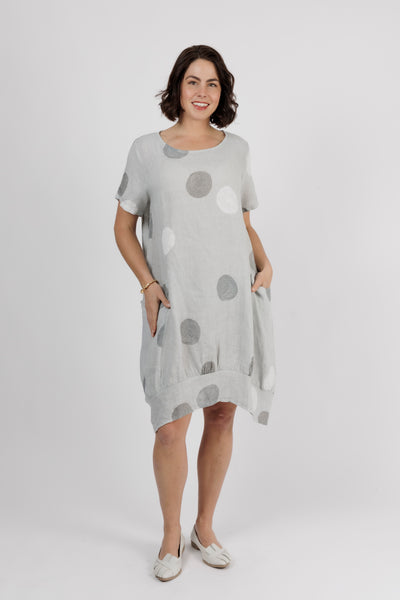ALOUCI Light Grey Circle Print Linen Dress