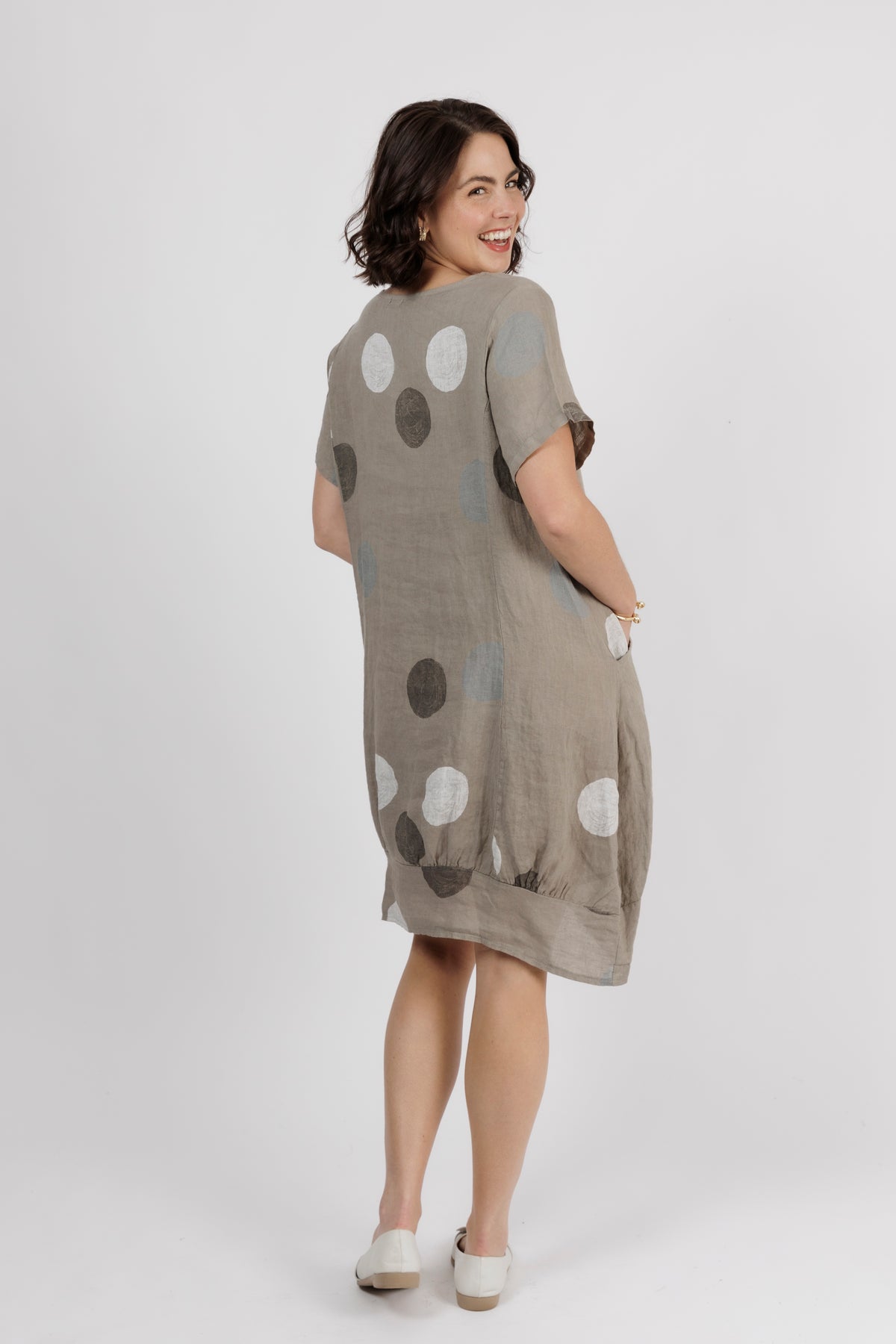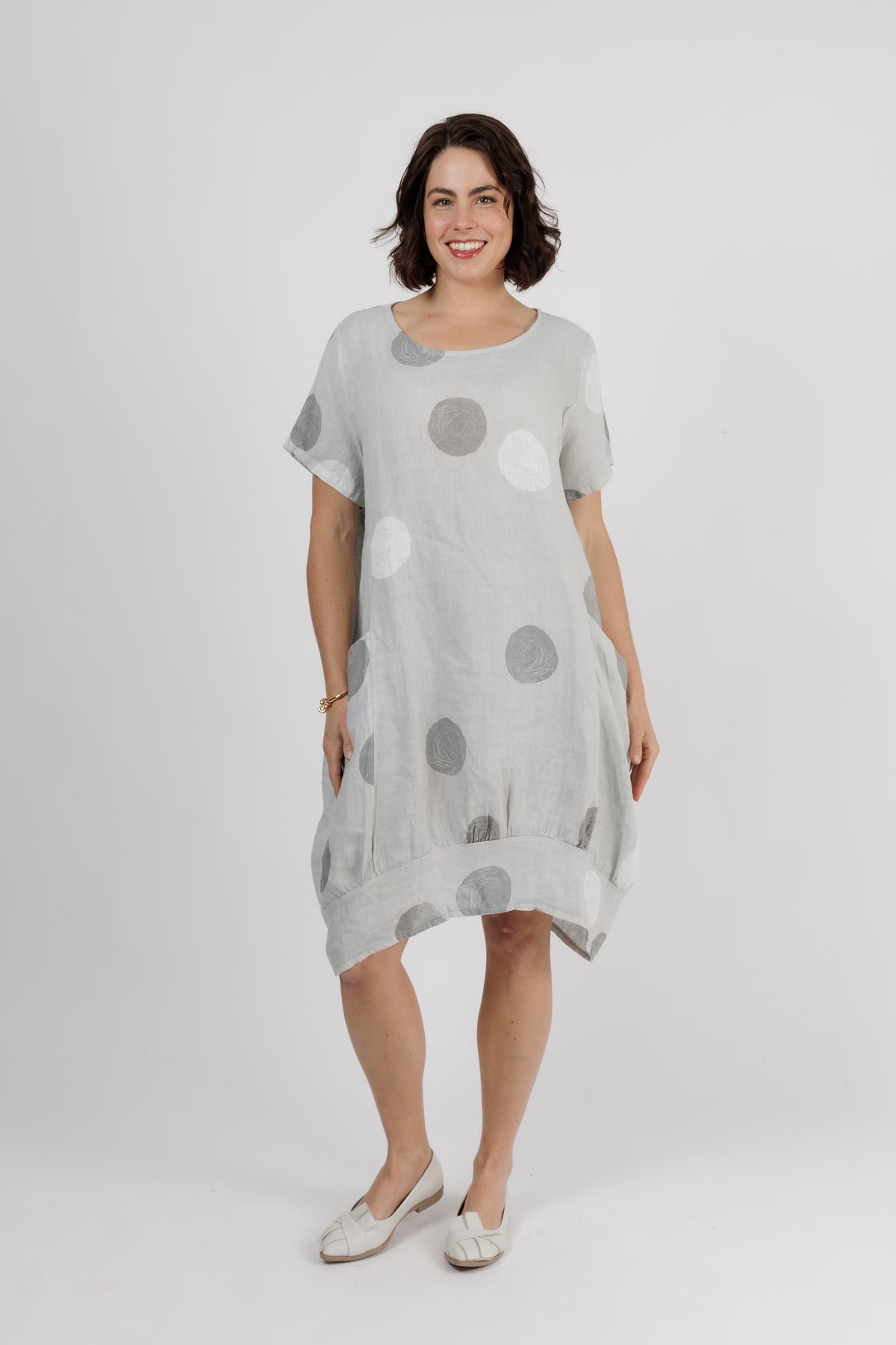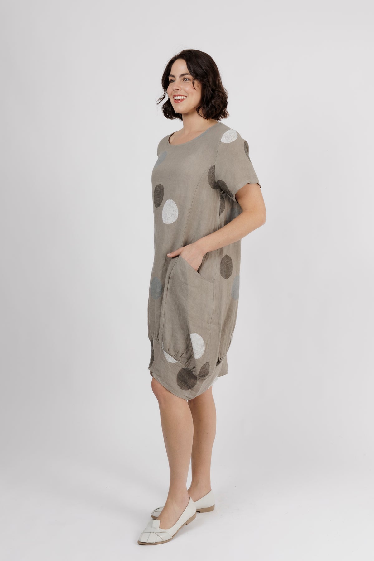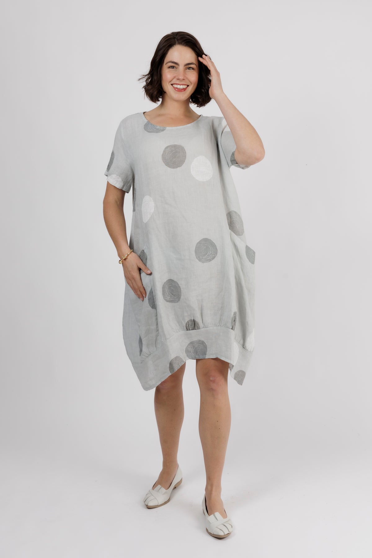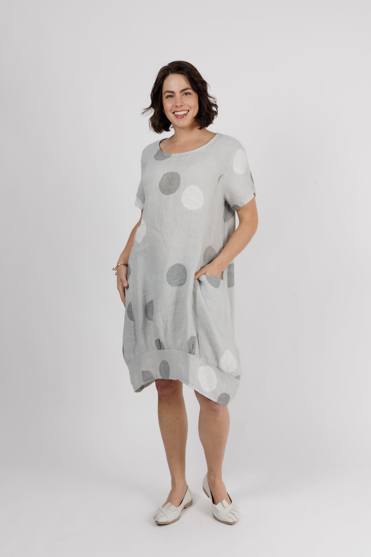 ALOUCI Light Grey Circle Print Linen Dress
