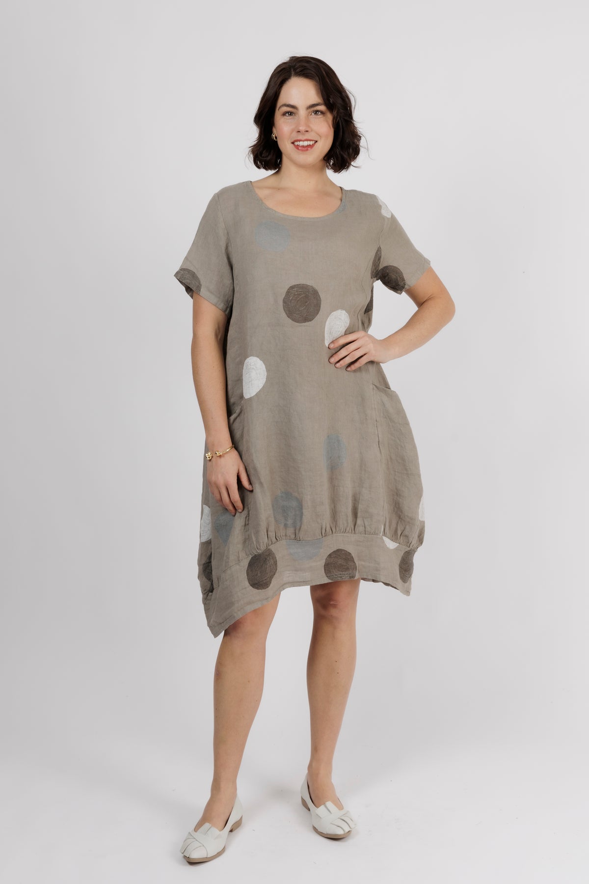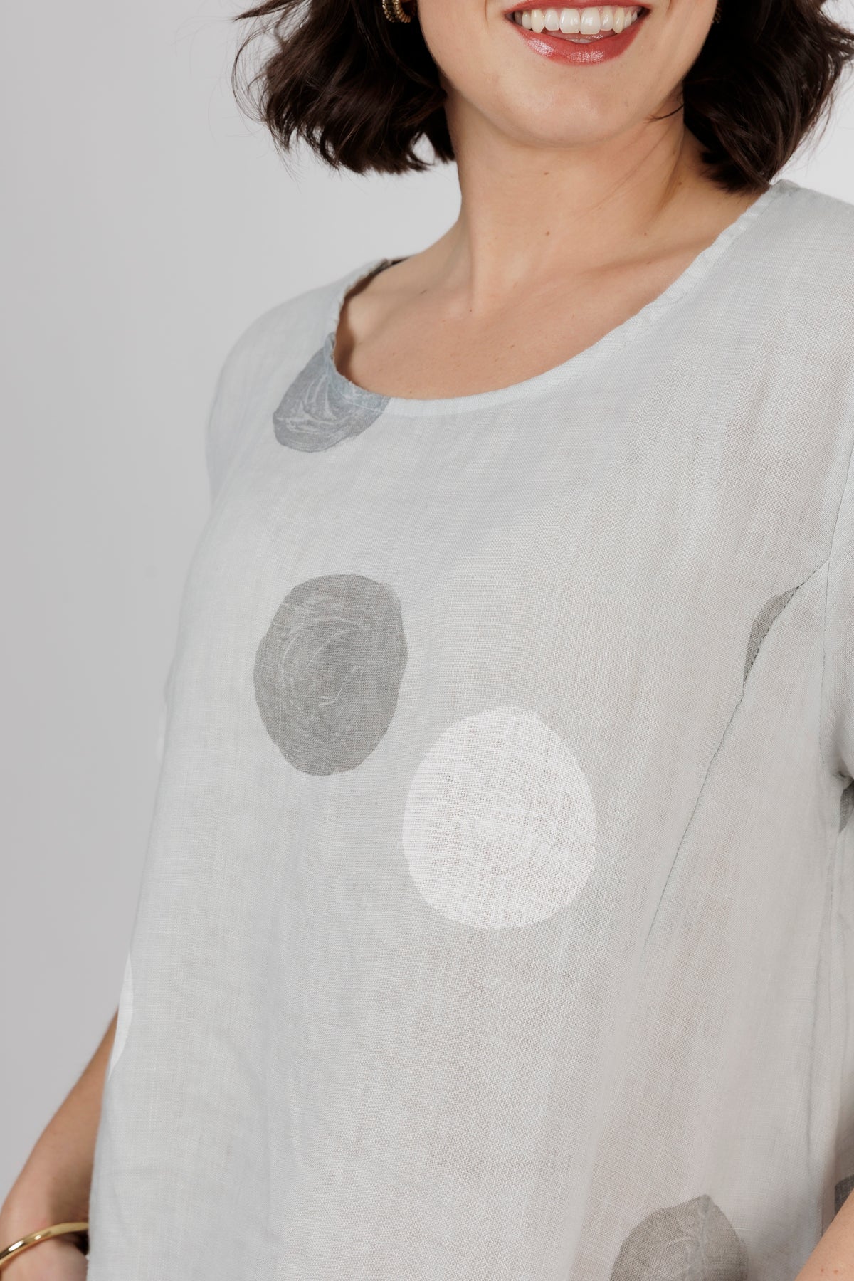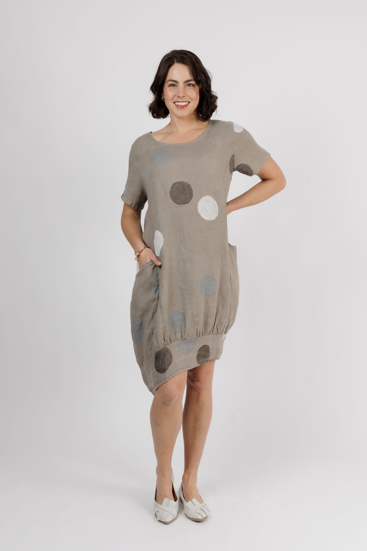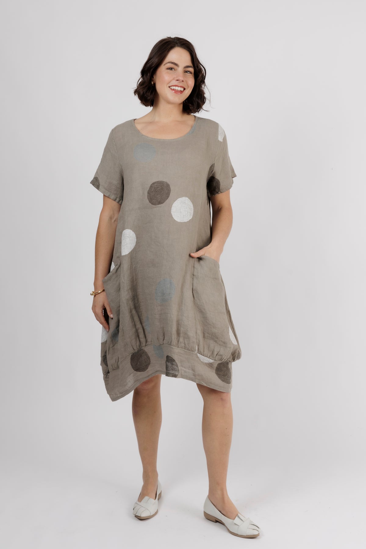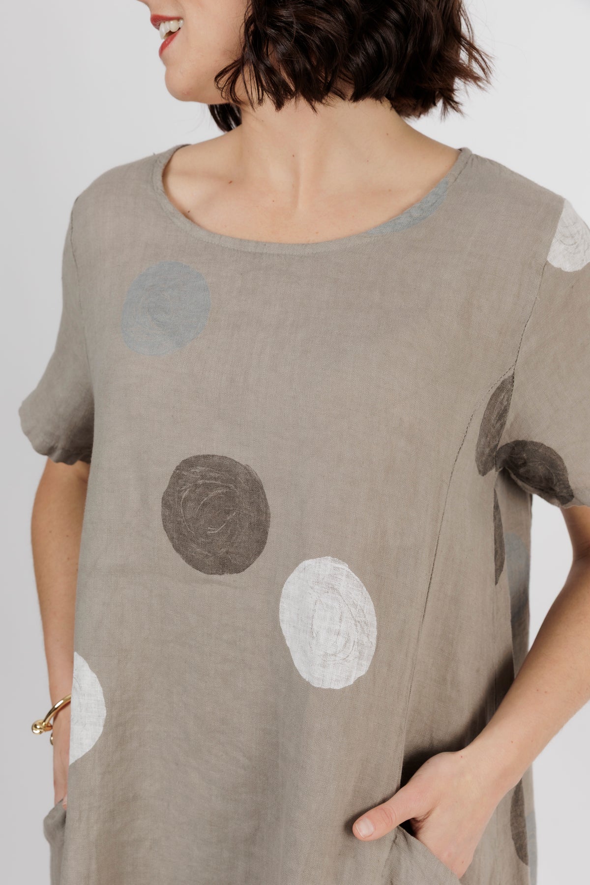 ALOUCI Light Grey Circle Print Linen Dress