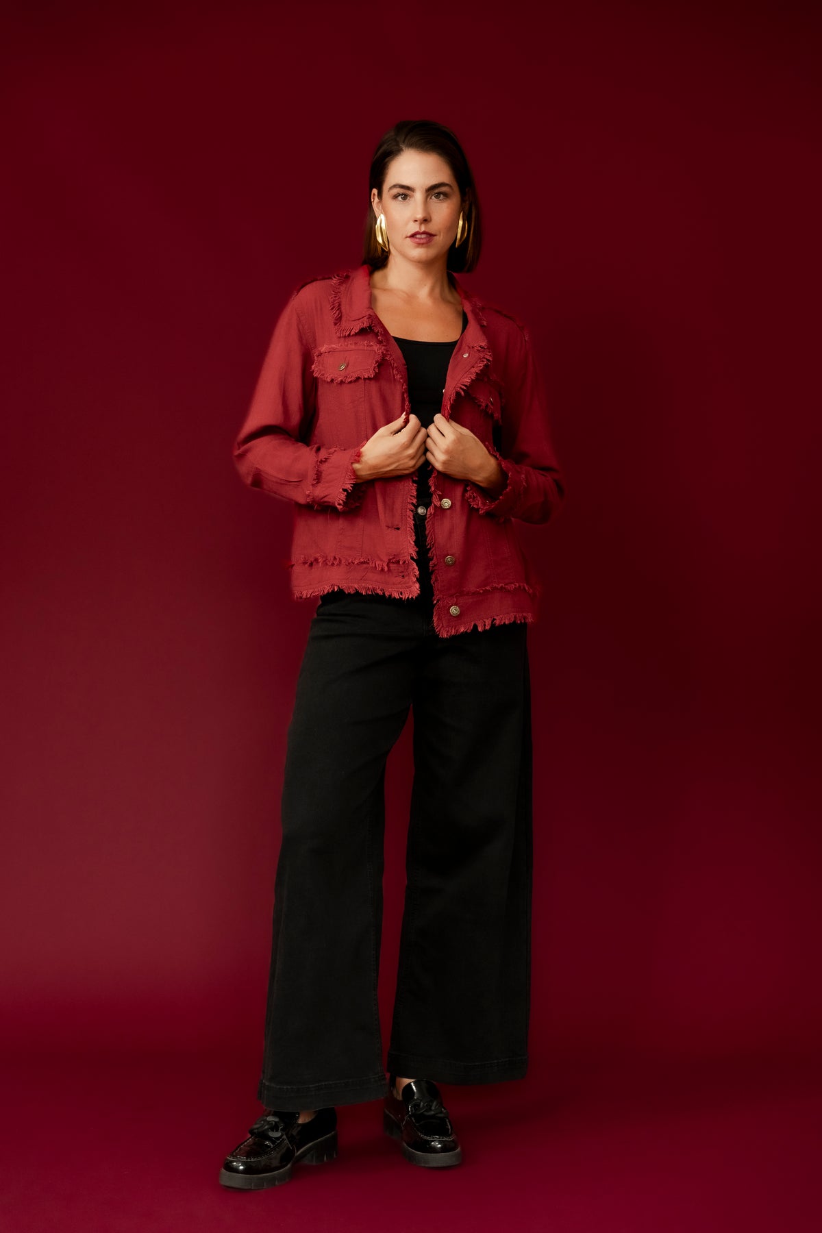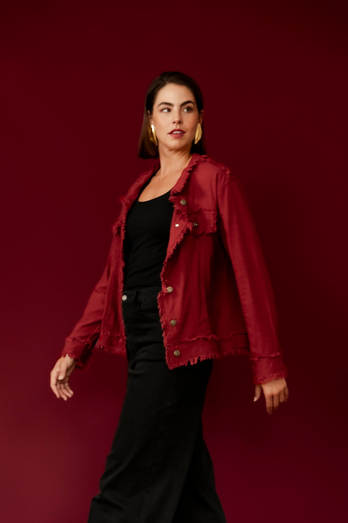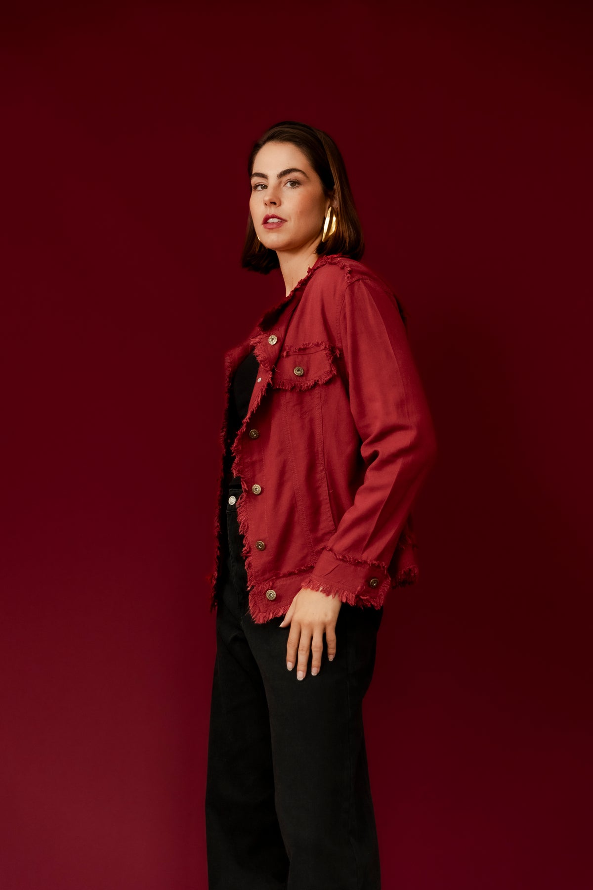 BAMBI Burgundy Frayed Edge Casual Jean Jacket