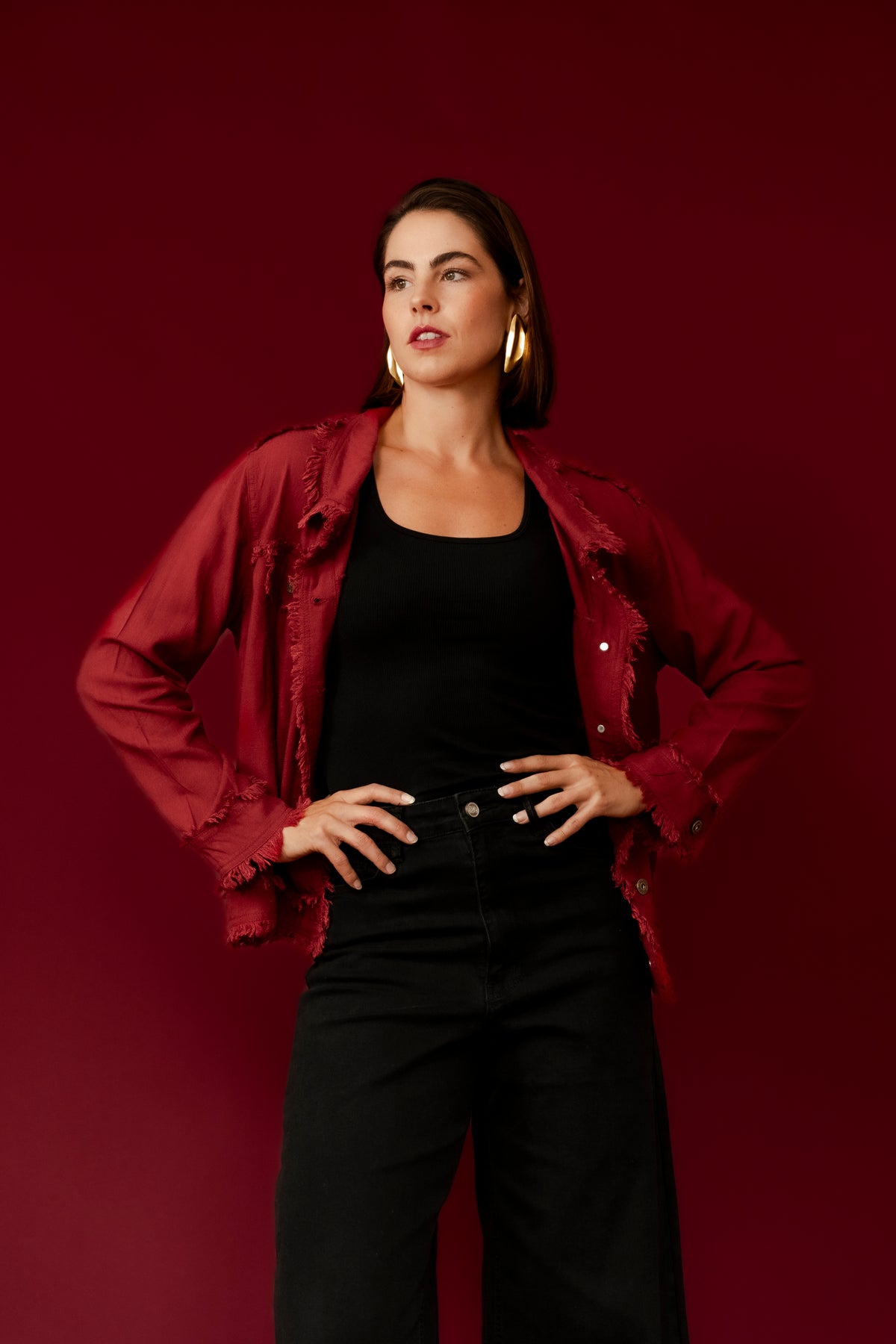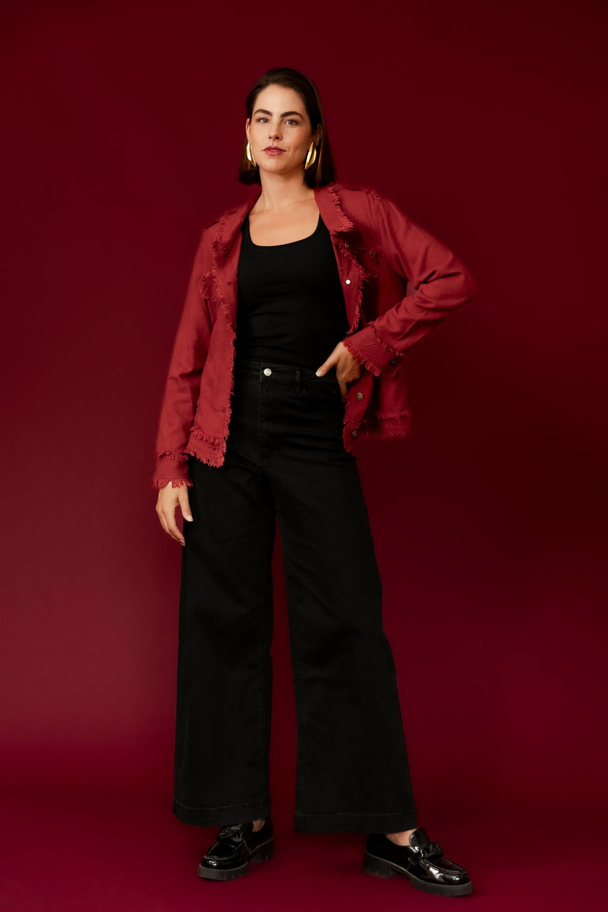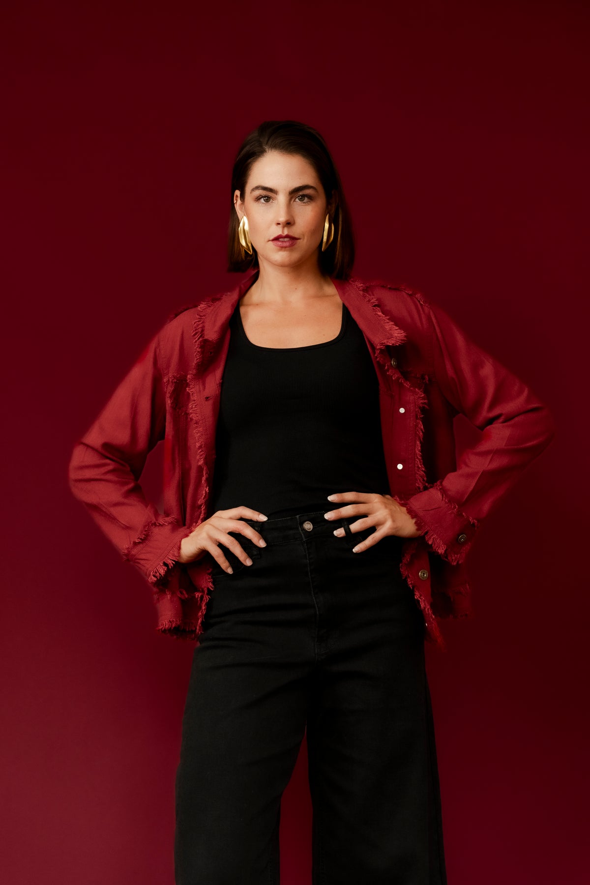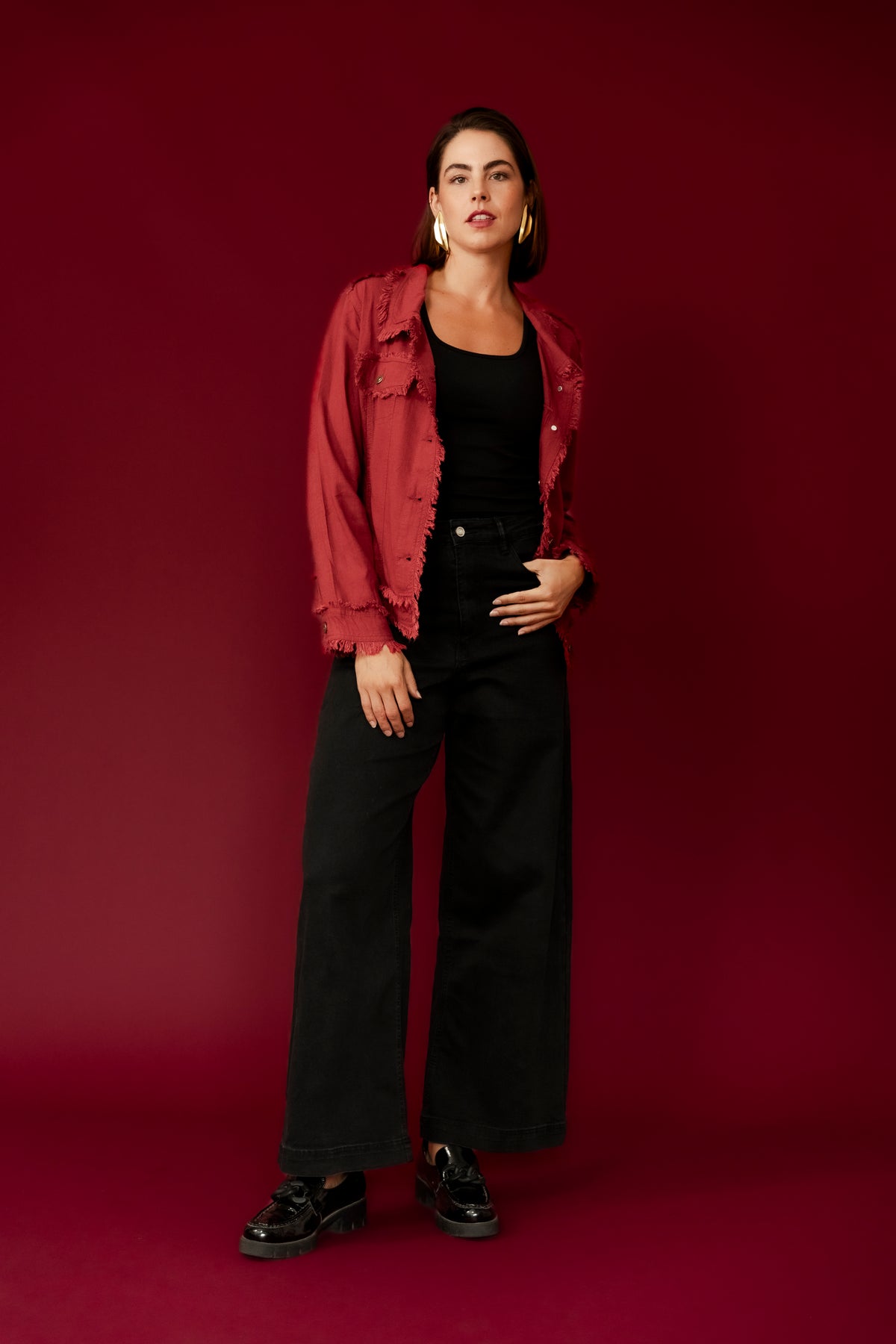 BAMBI Burgundy Frayed Edge Casual Jean Jacket