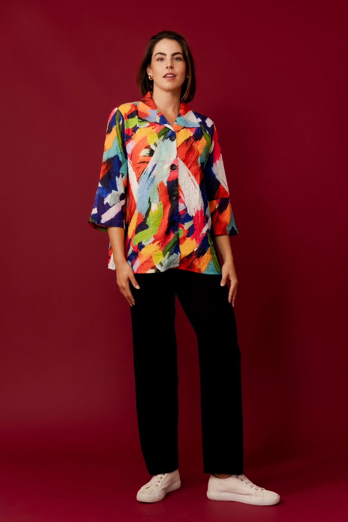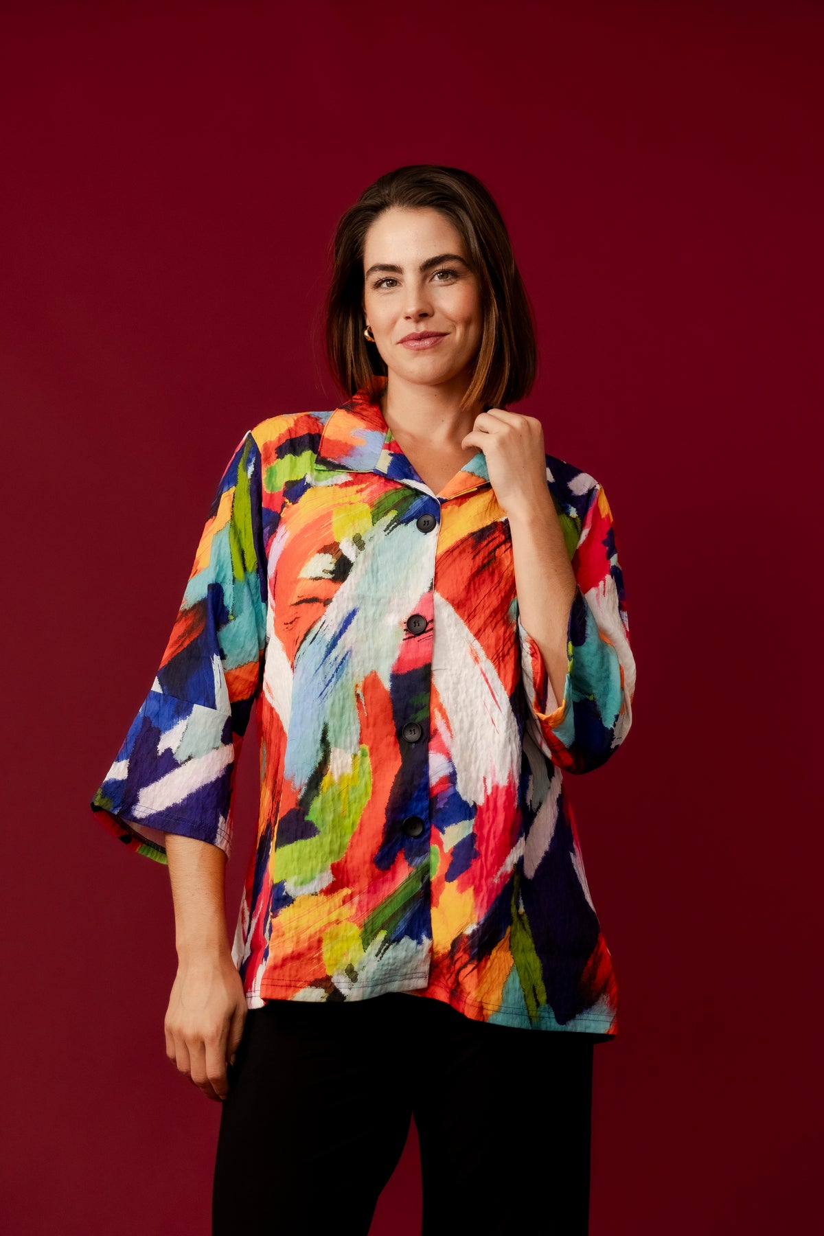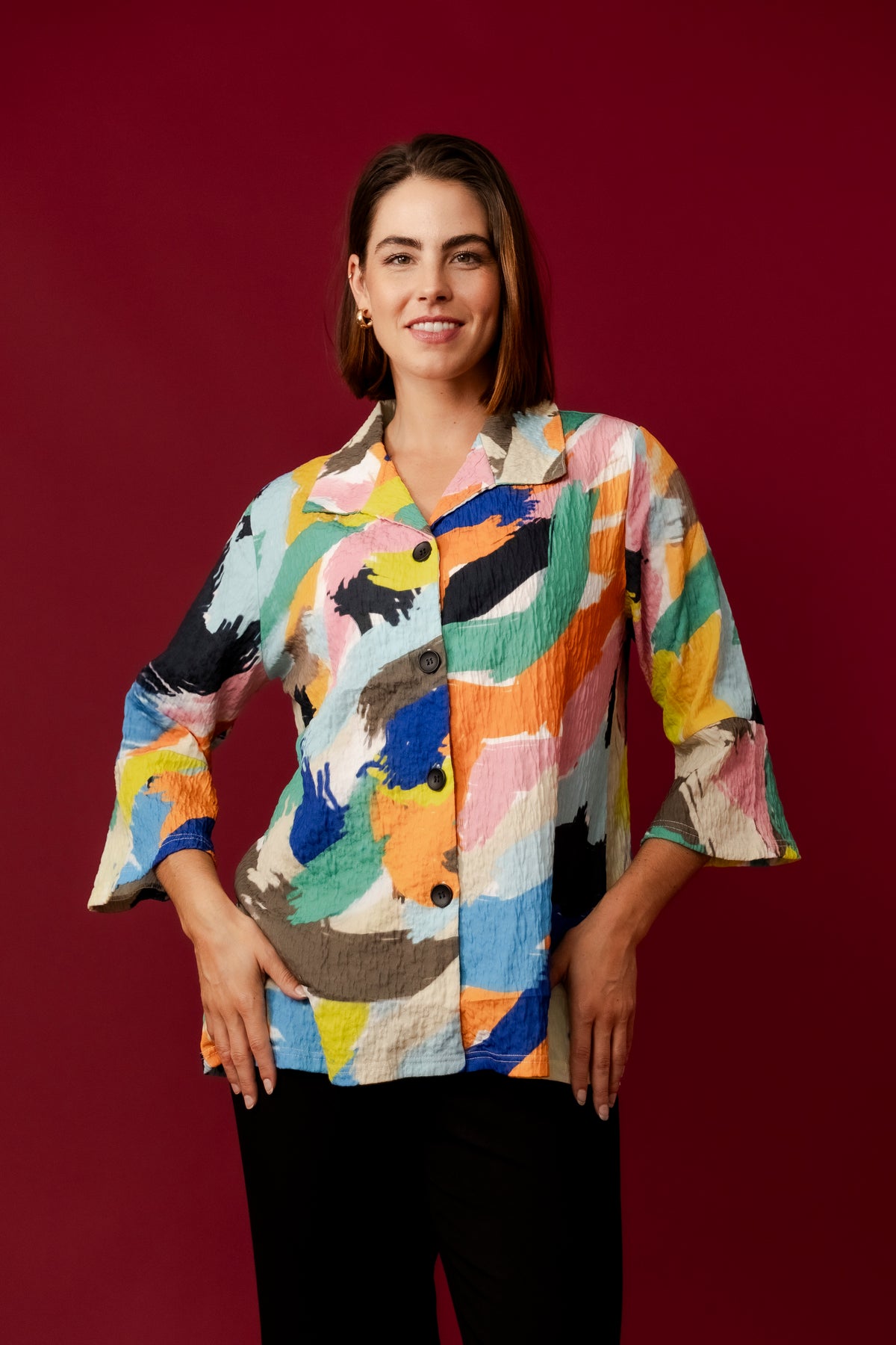 Ideal for adding a burst of colour to any outfit, the Margery Jacket is versatile enough for both casual and dressy occasions. Embrace your bold side with this eye-catching piece.