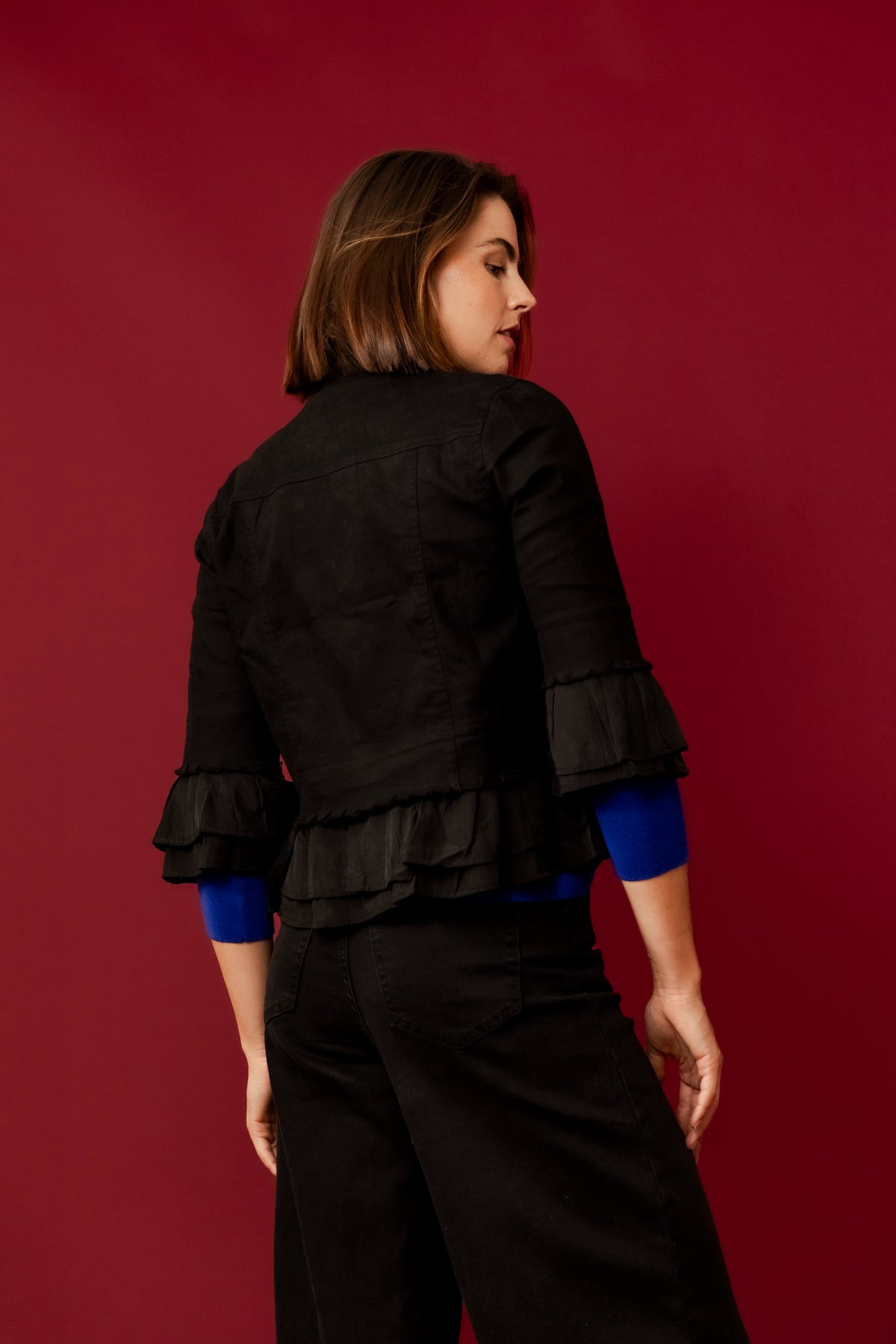 LEELA Black Ruffle Crop Jacket