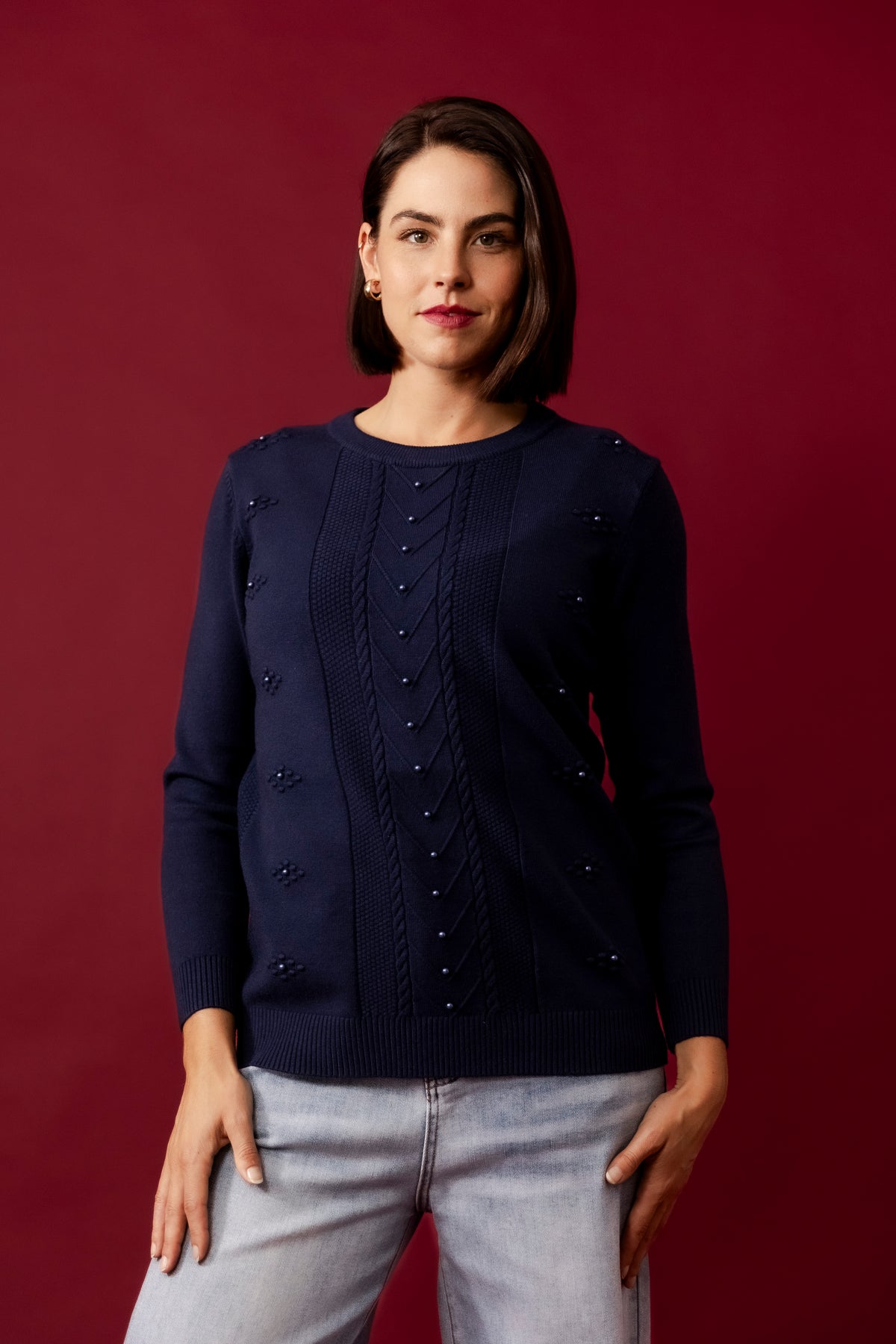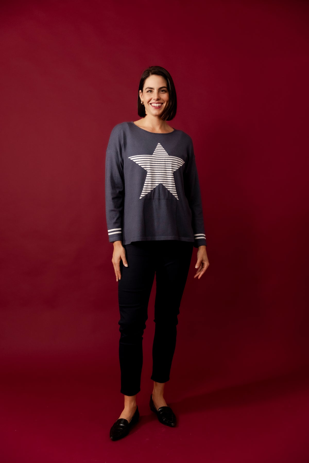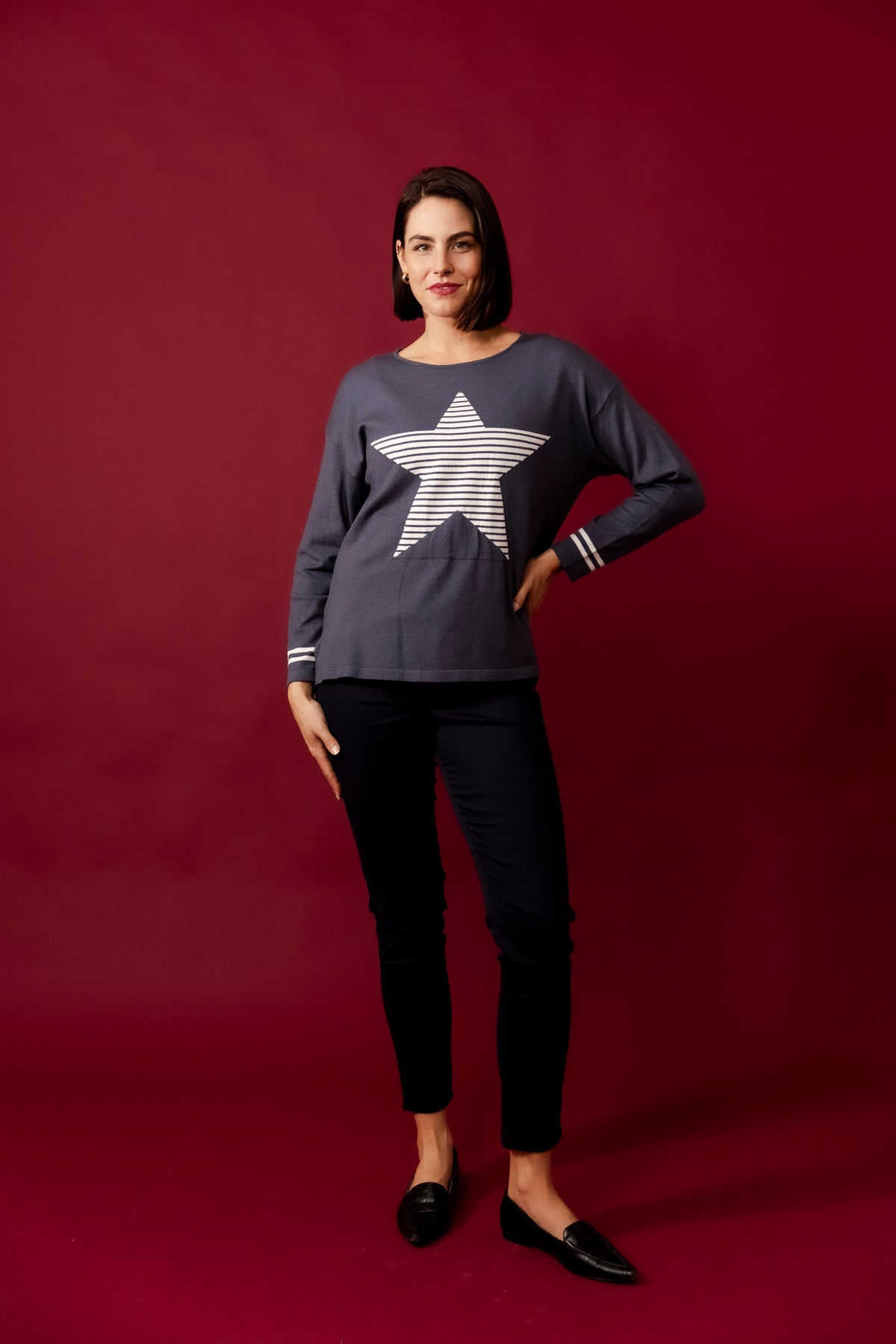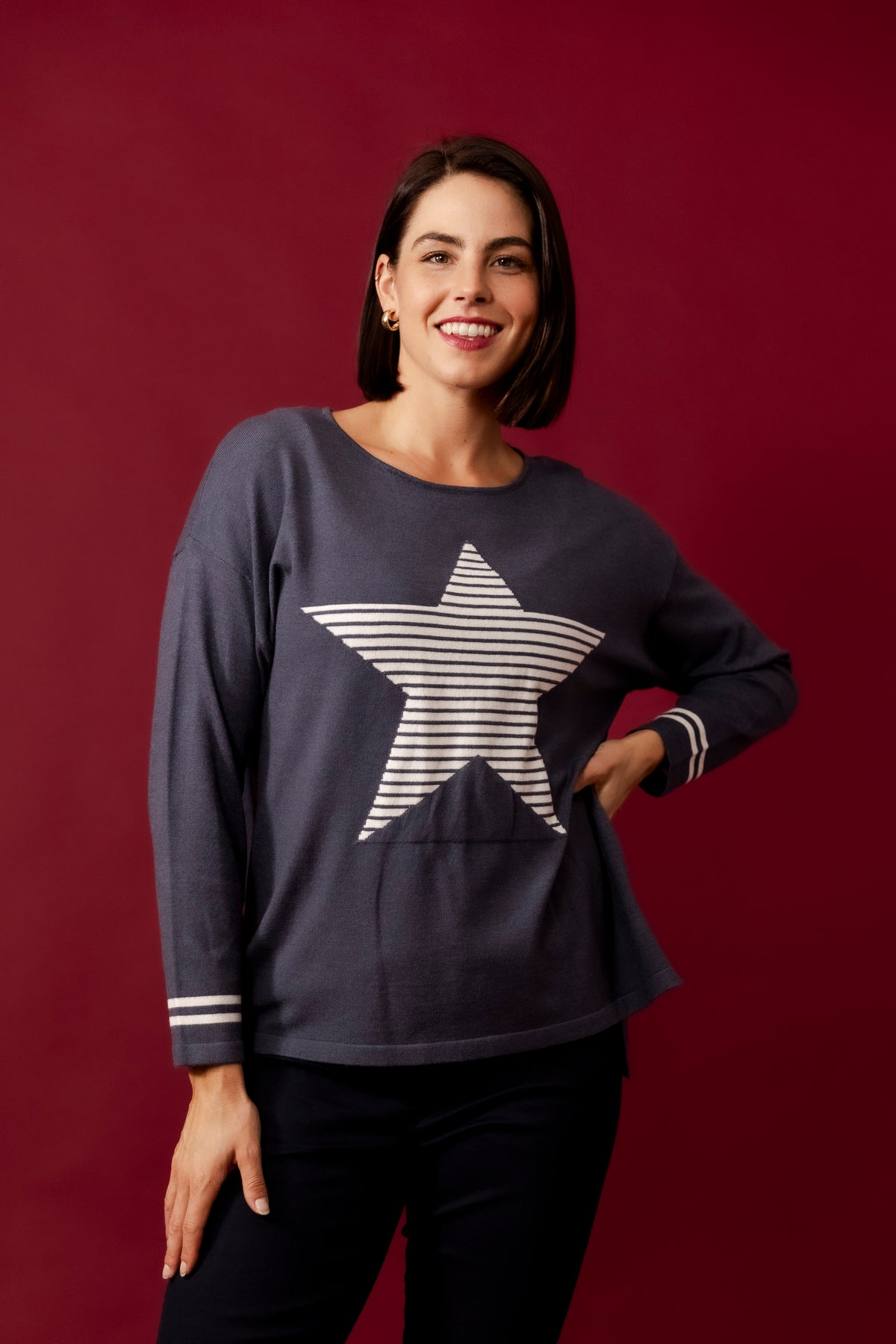 DOLLY Wine Wool Blend Stars Jumper