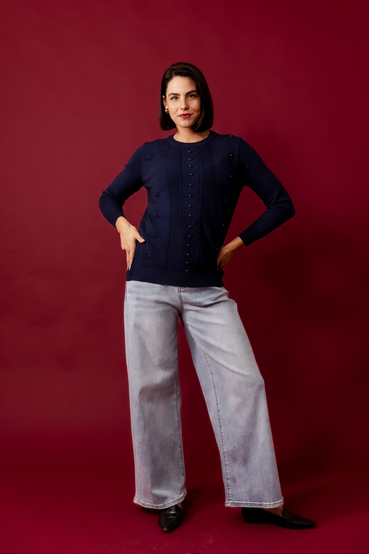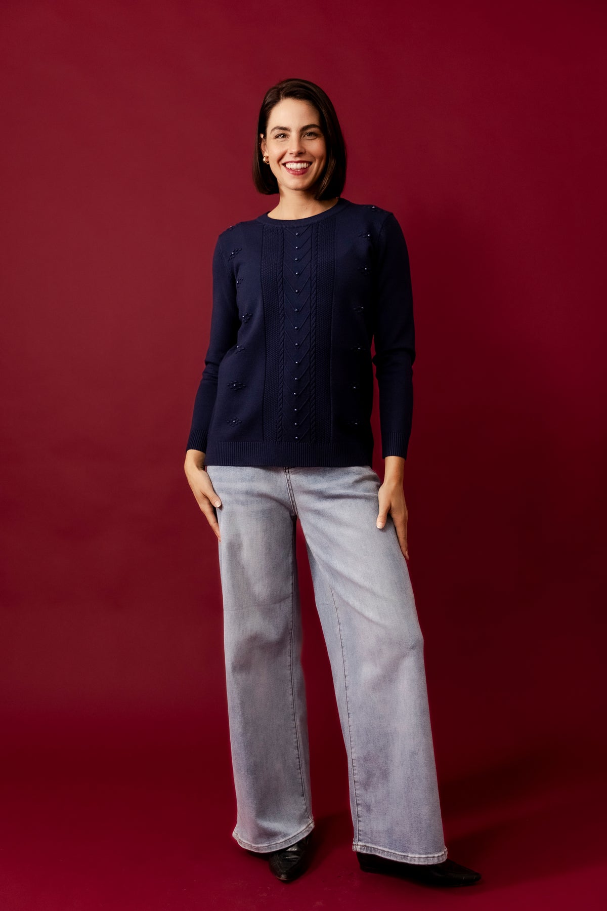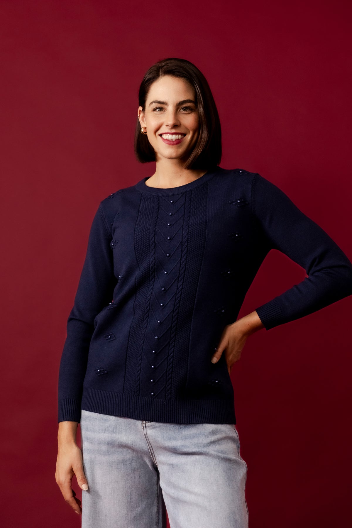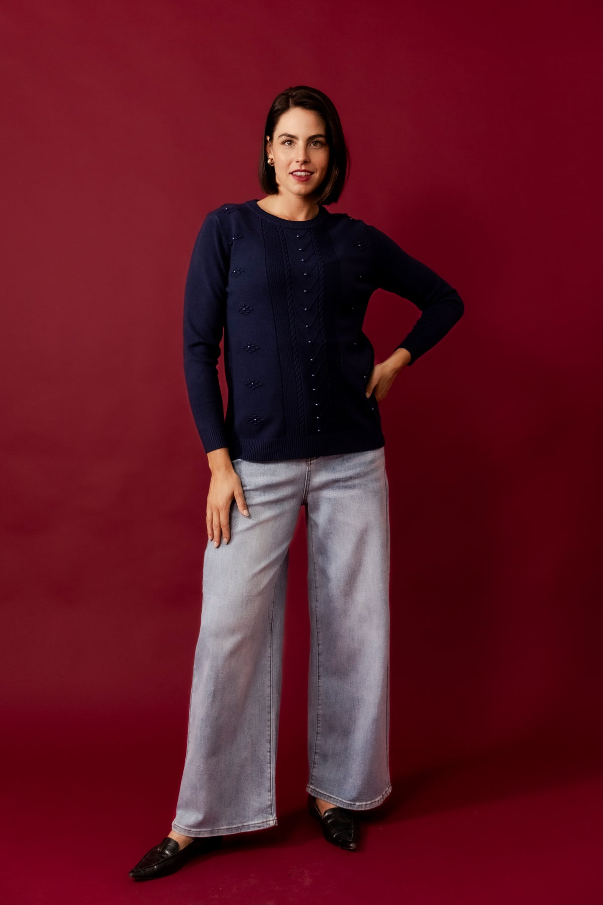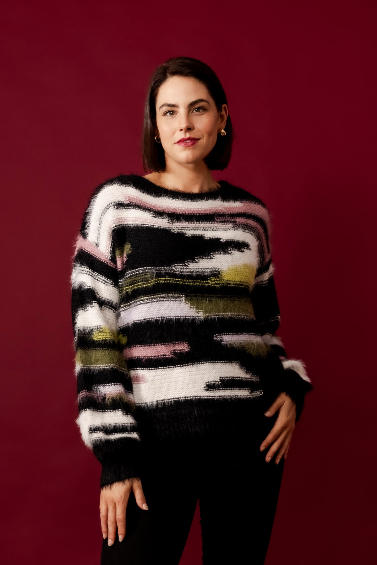 DOLLY Wine Wool Blend Stars Jumper