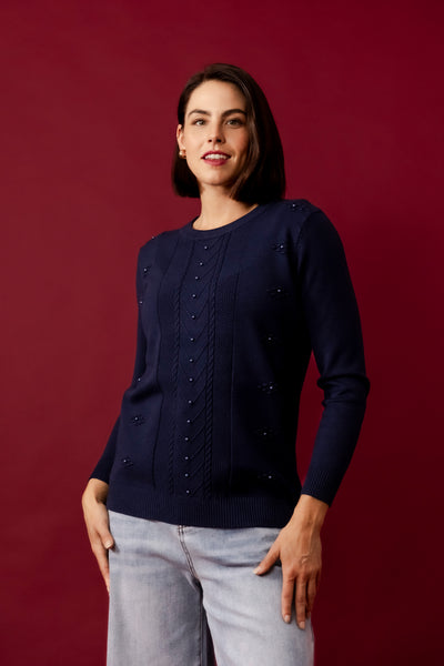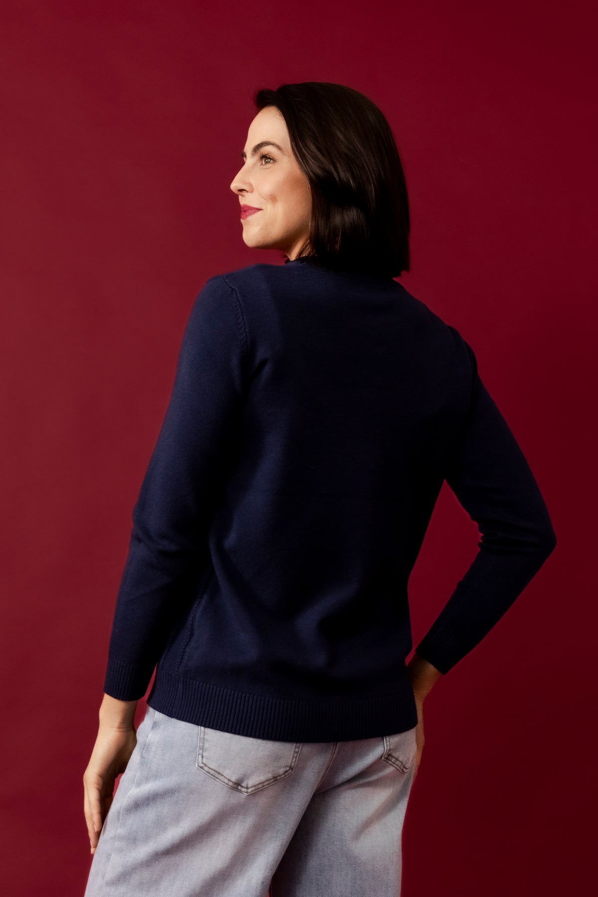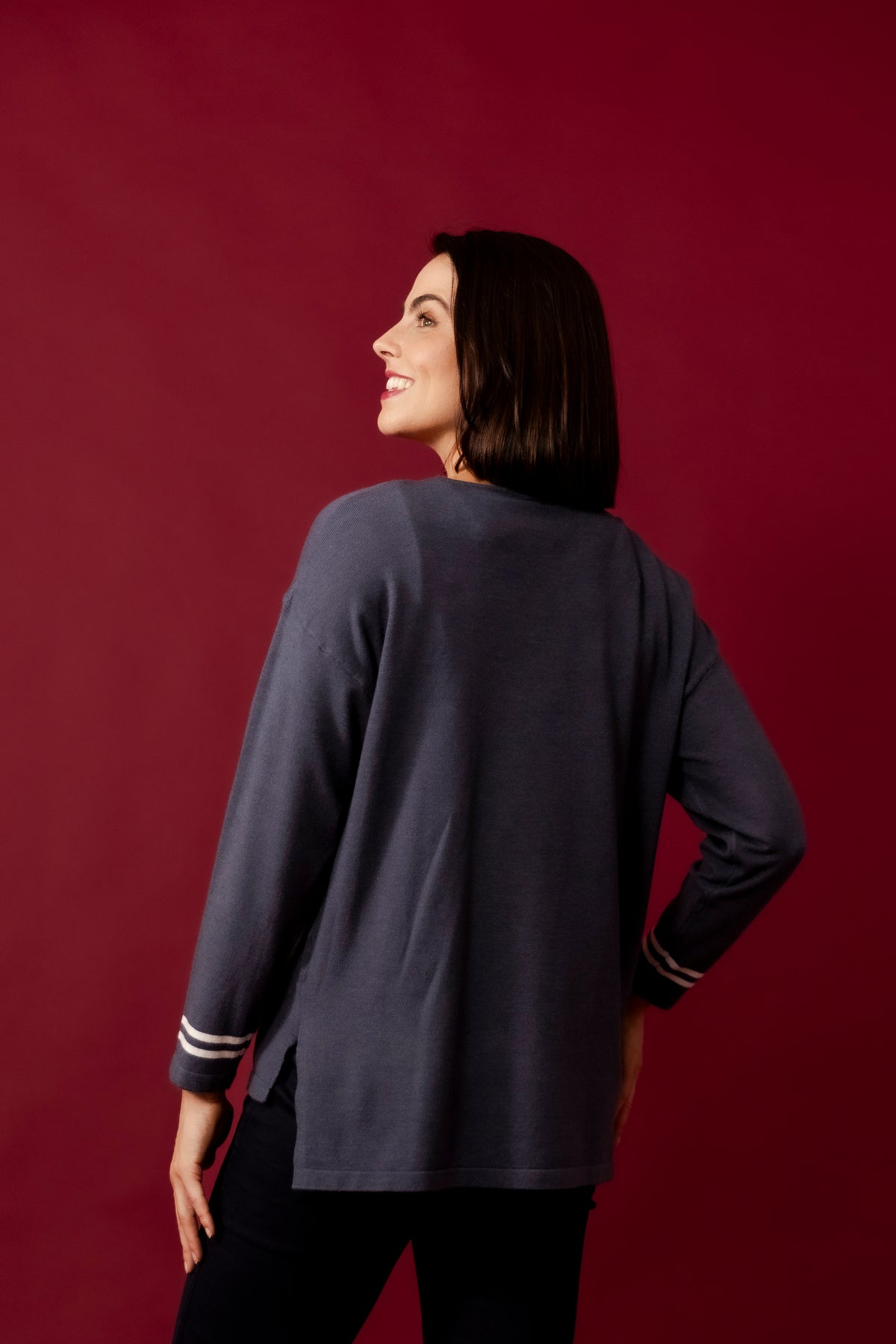 ESTELLE Navy Contrast Swing Cardigan