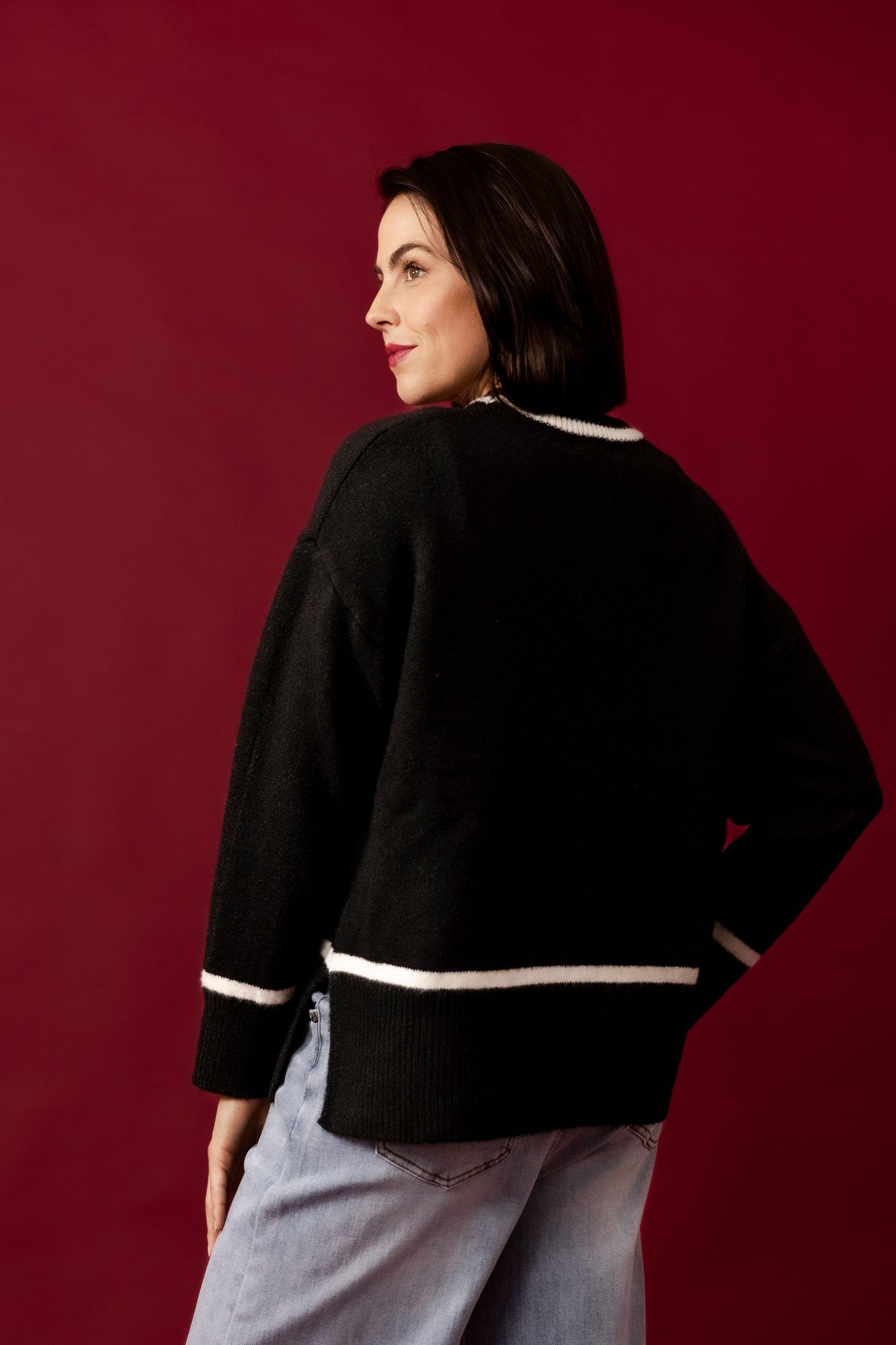 ESTELLE Black Contrast Swing Cardigan