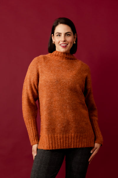 ESTELLE Rust Contrast Swing Cardigan
