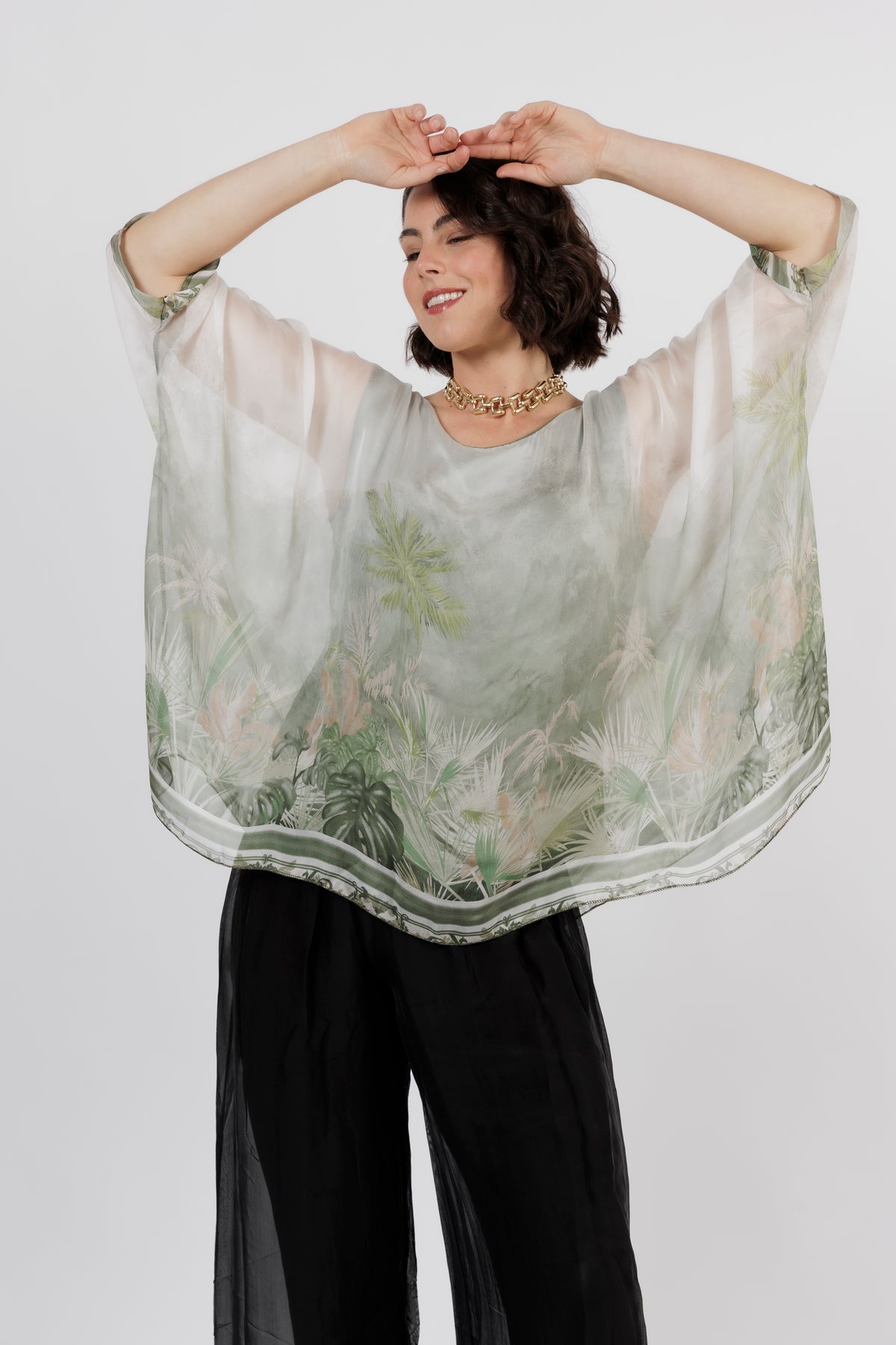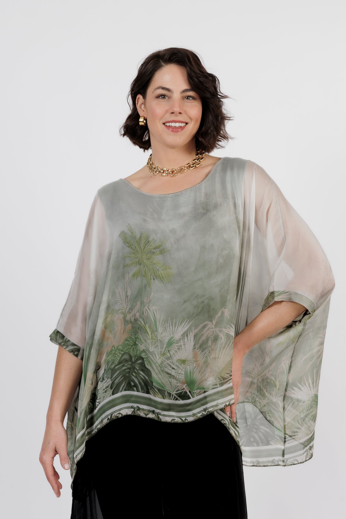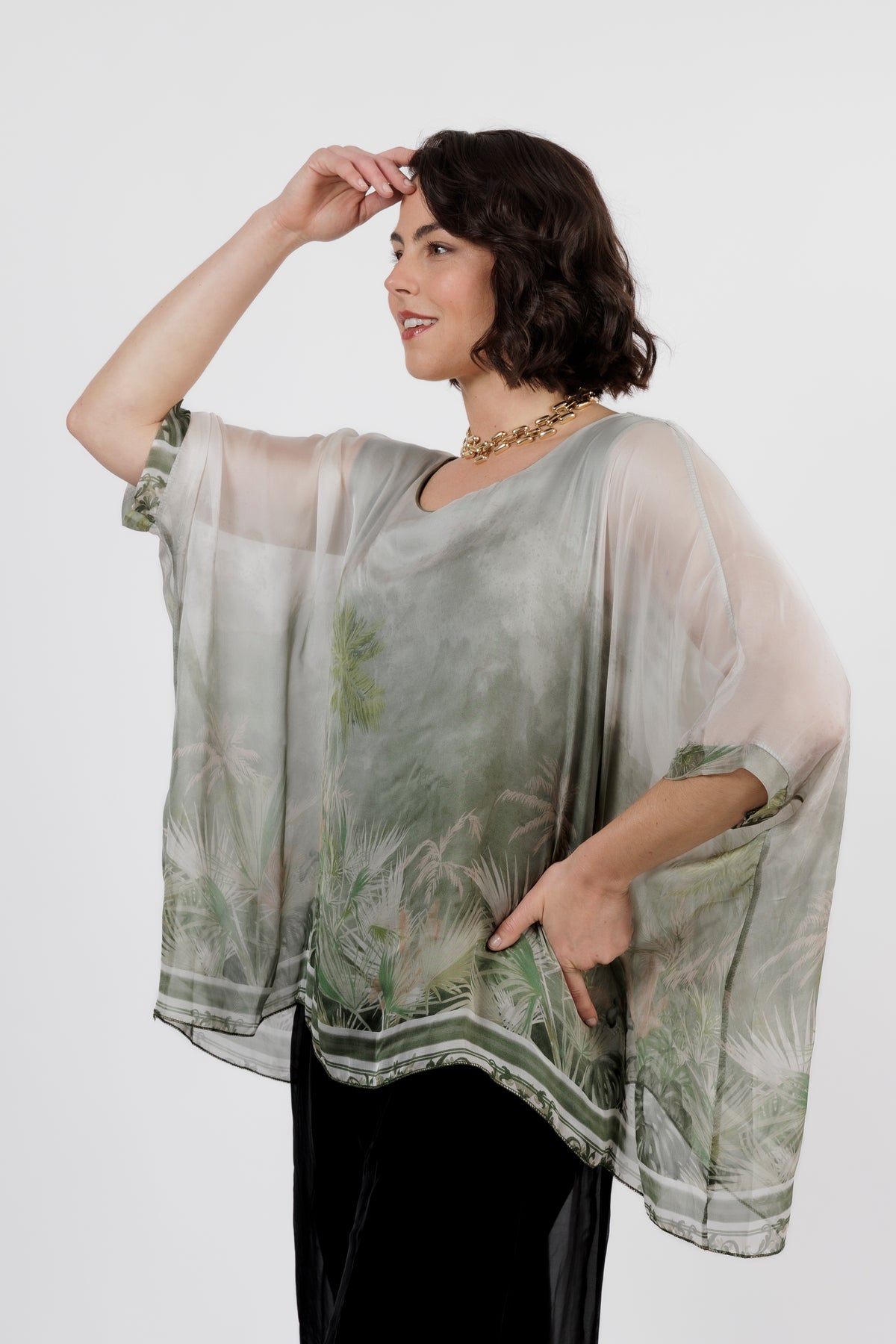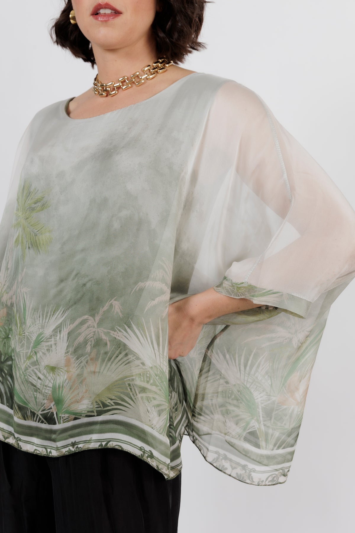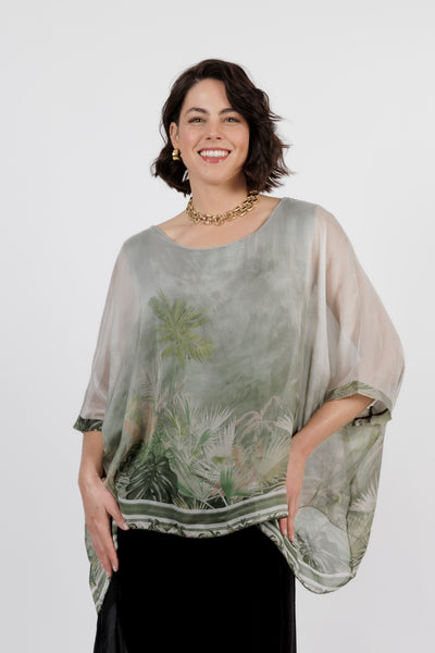 CONTESSA Palm Silk Overlay Top