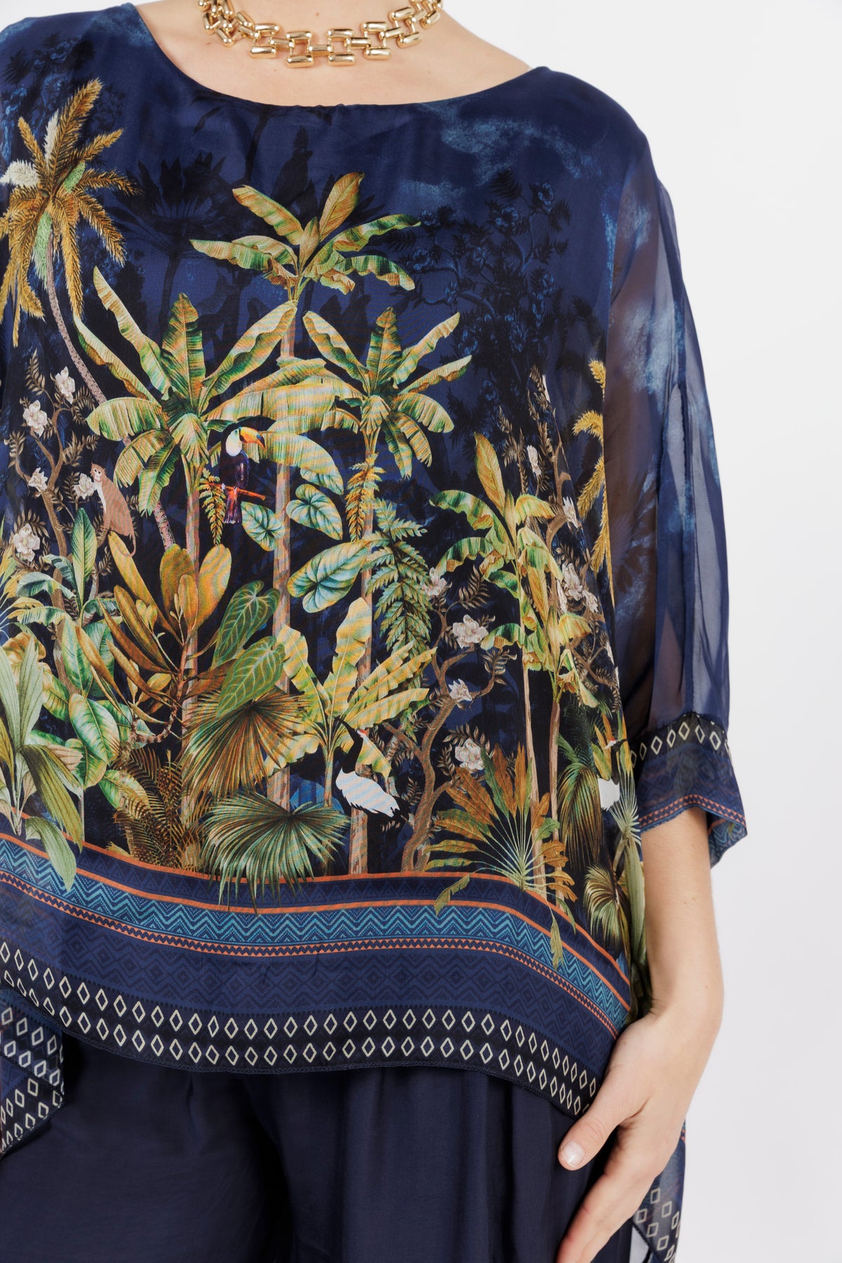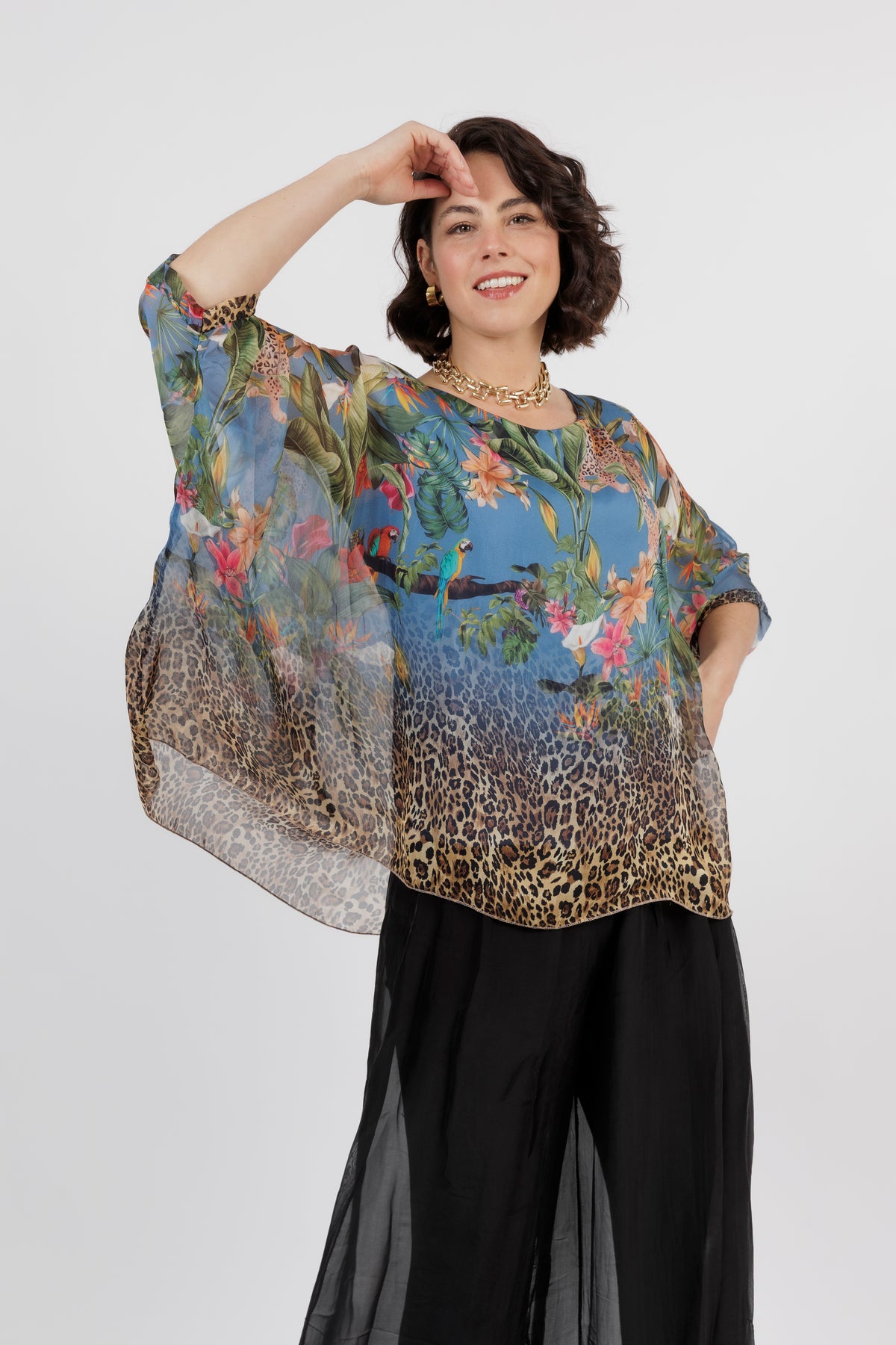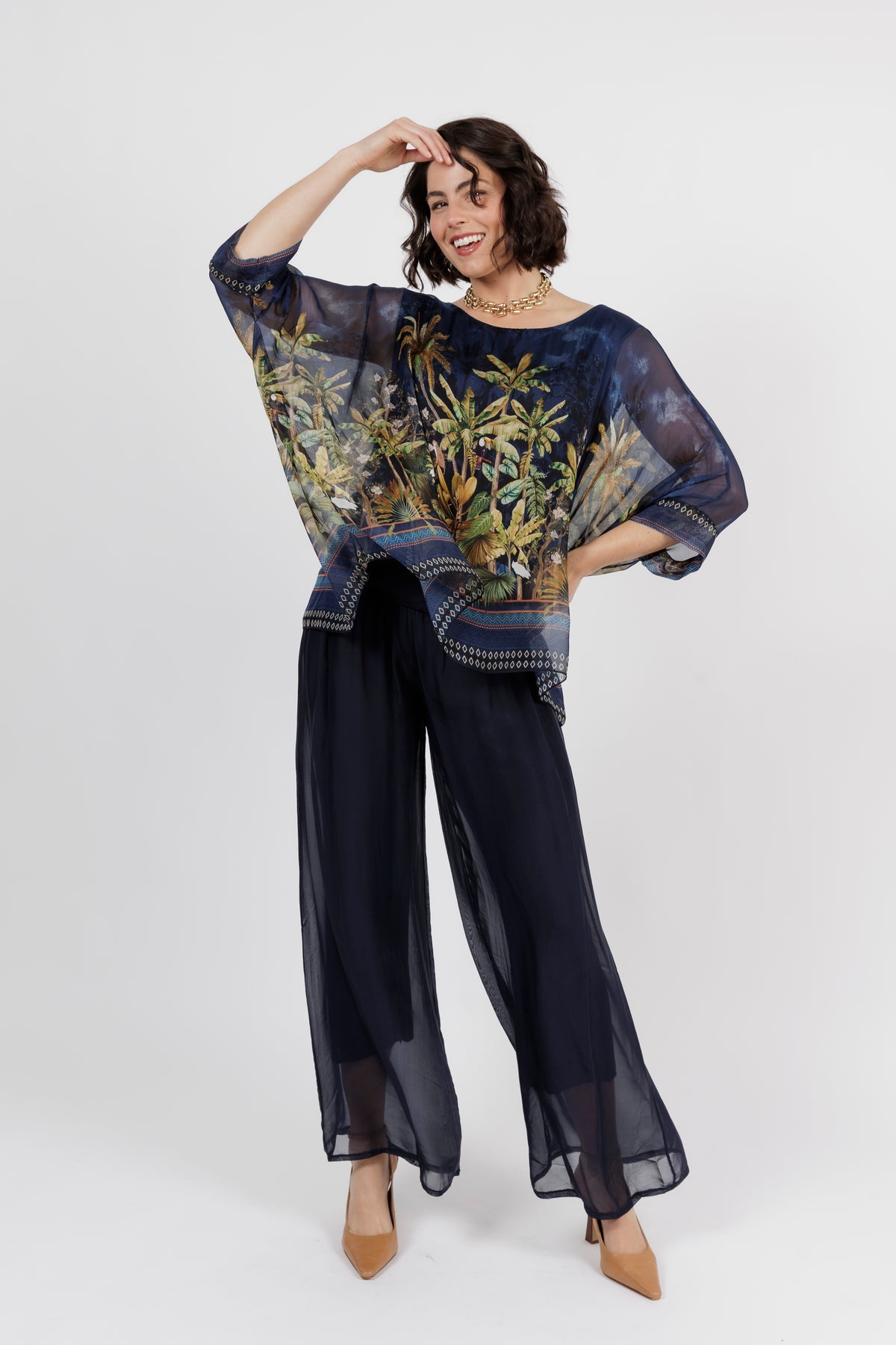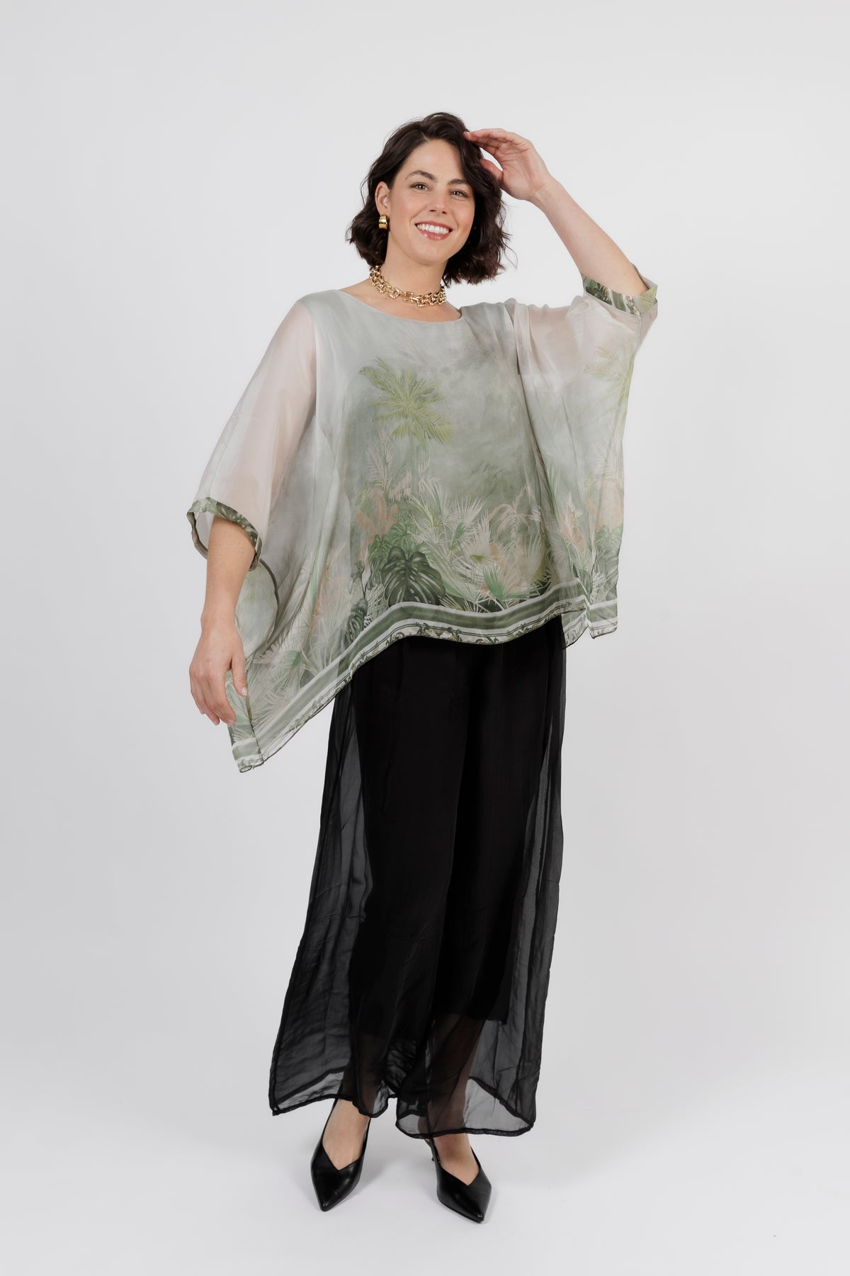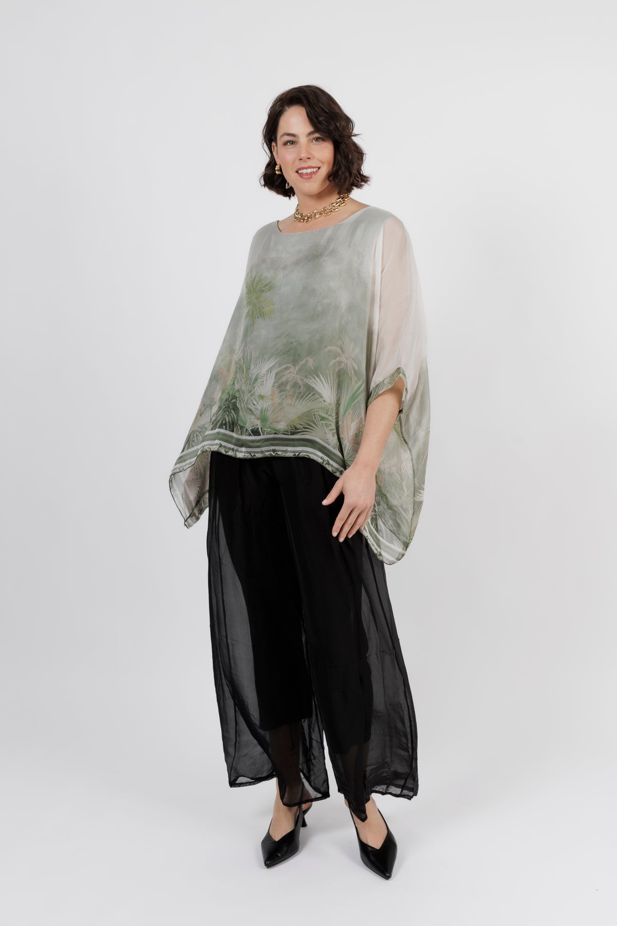 CONTESSA Palm Silk Overlay Top