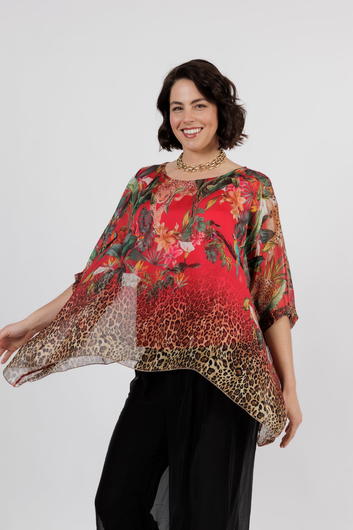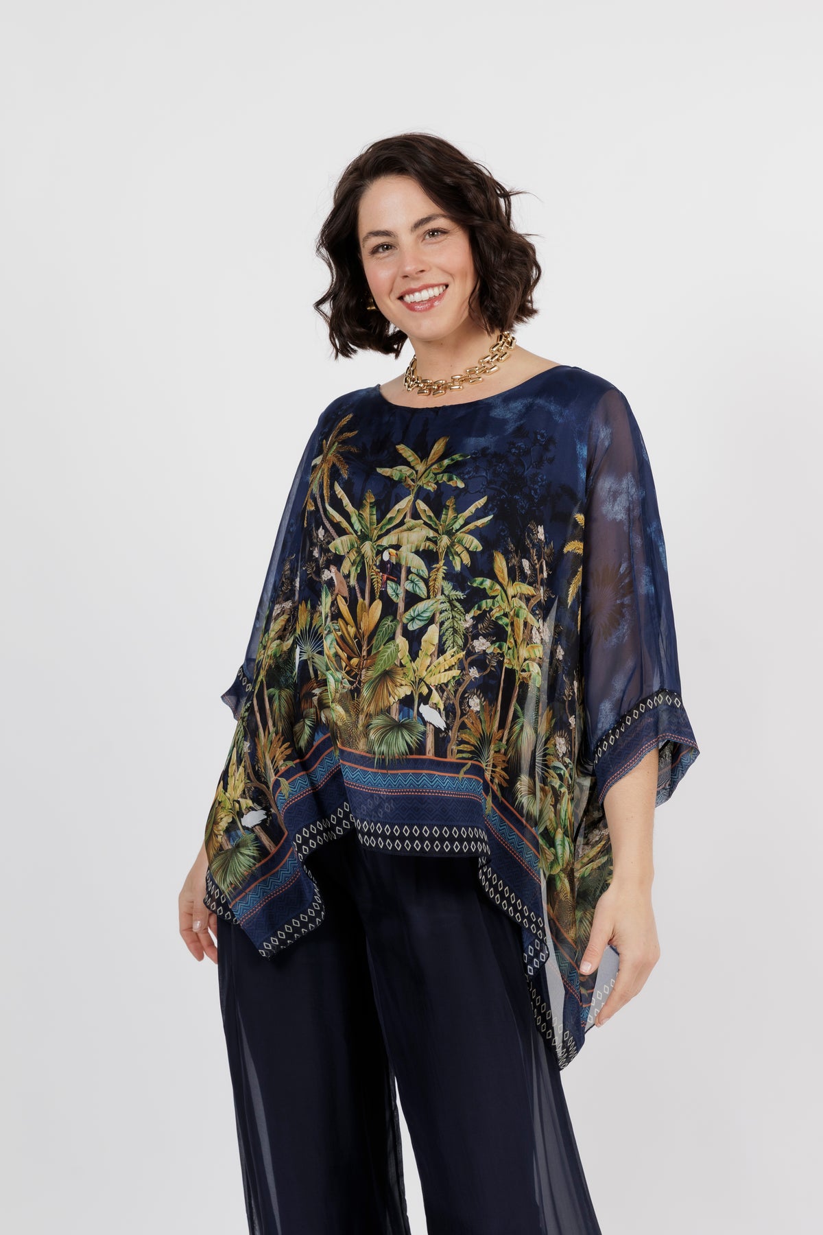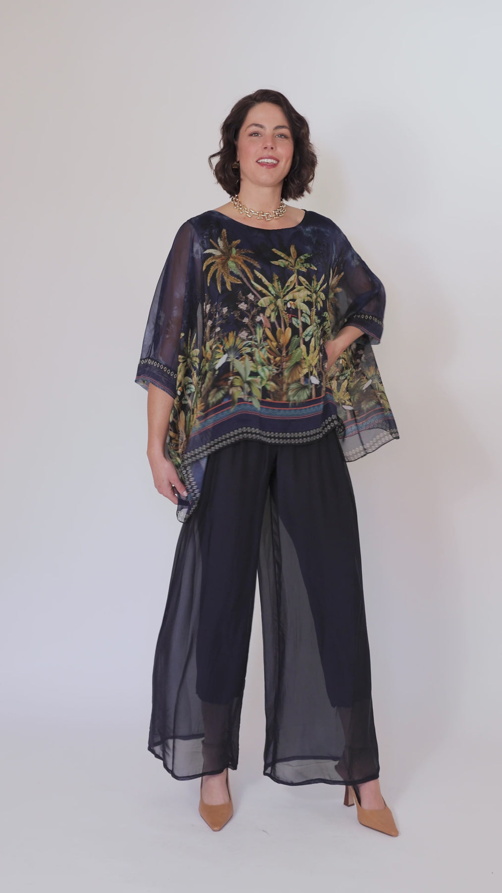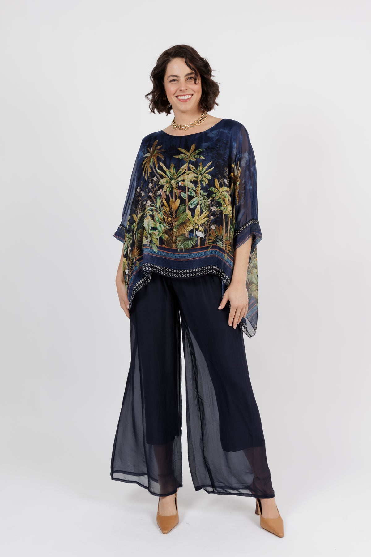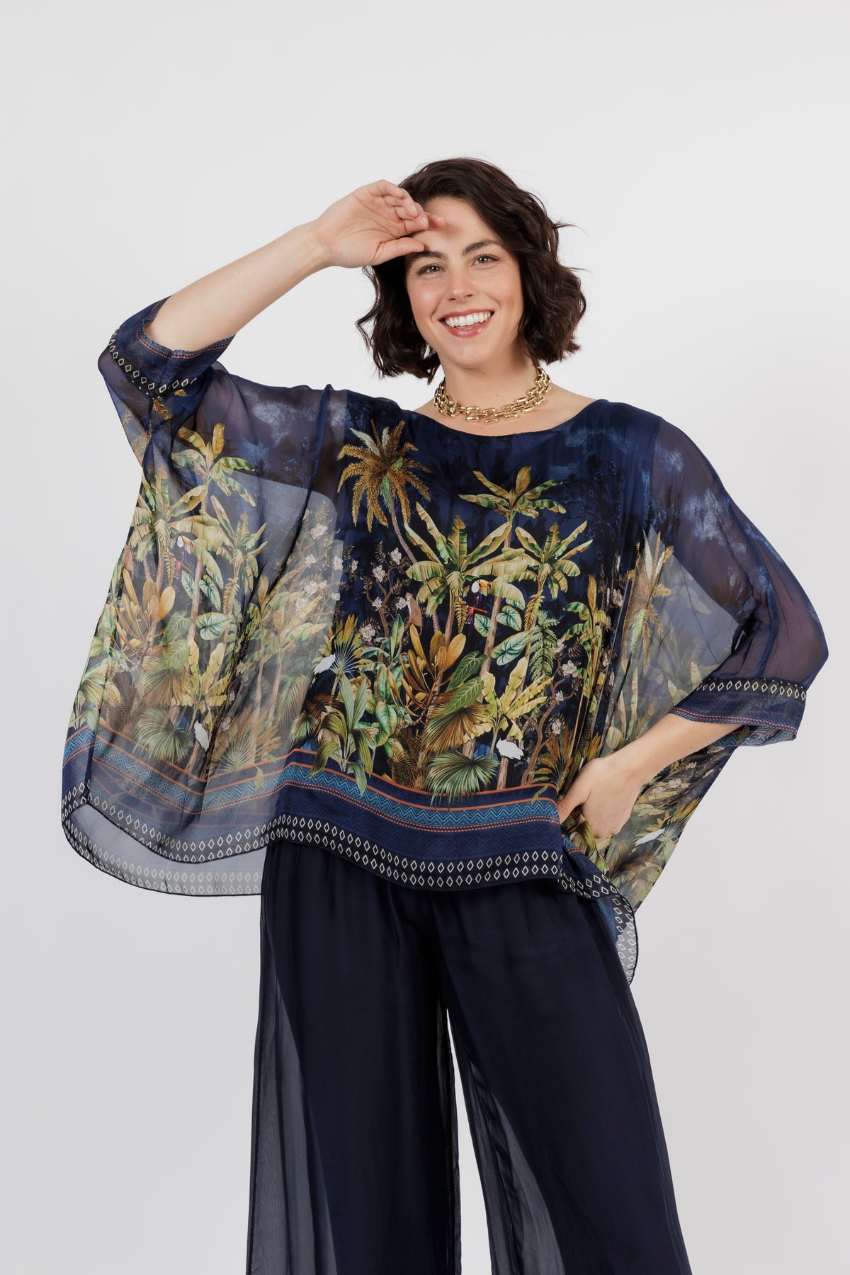 CONTESSA Palm Silk Overlay Top