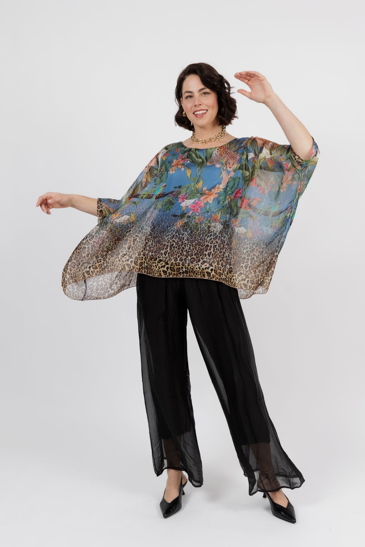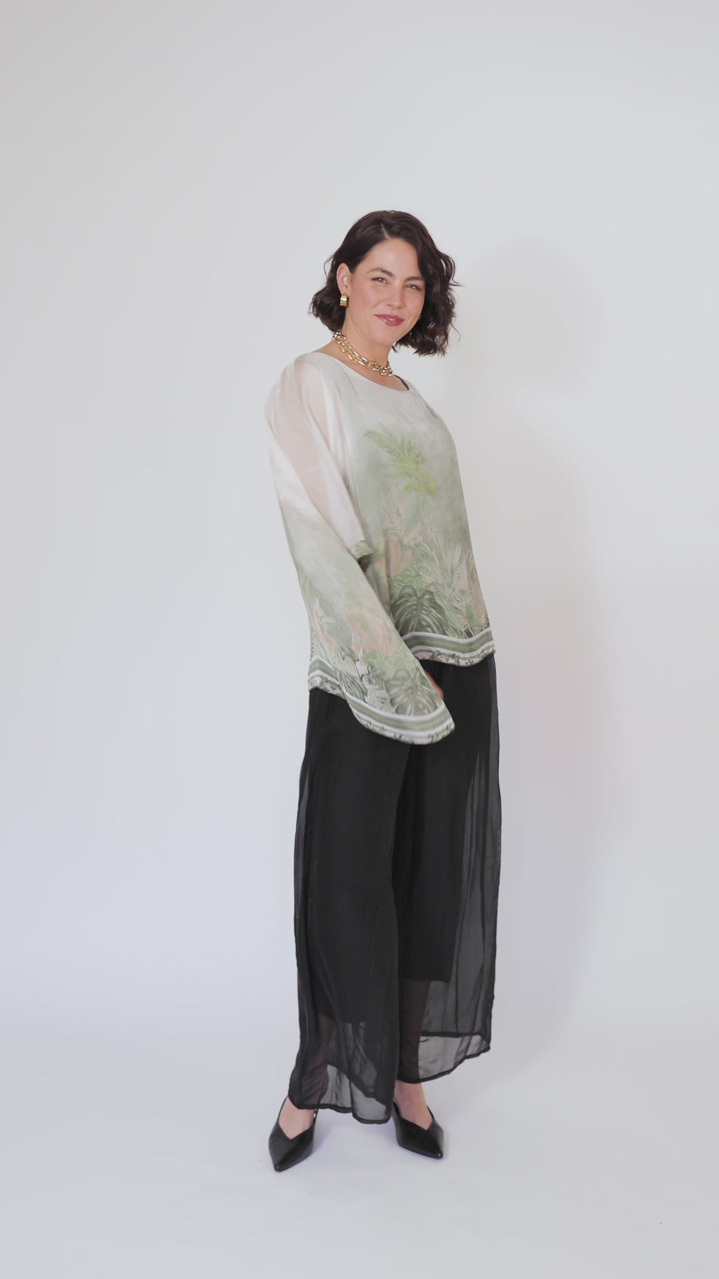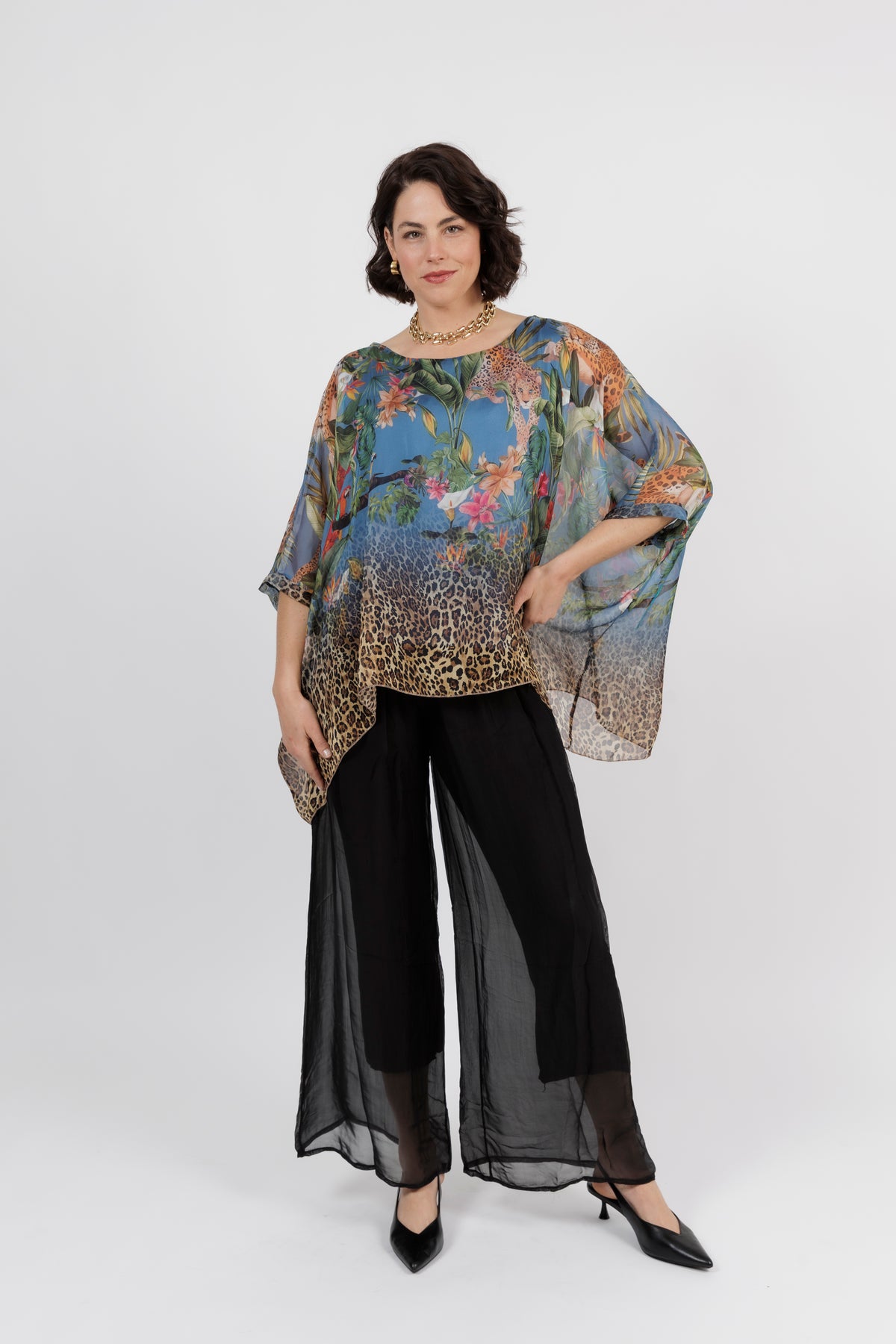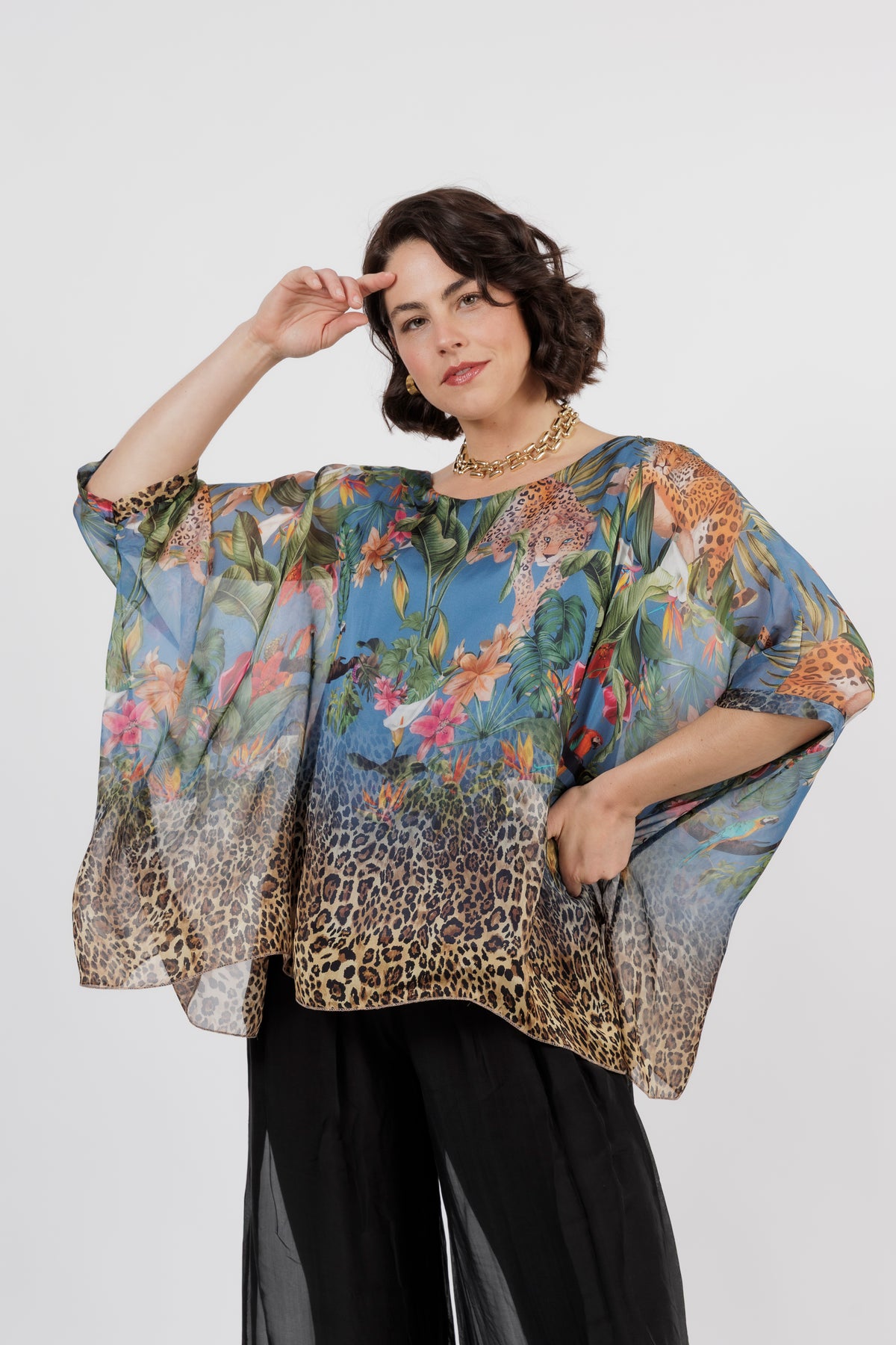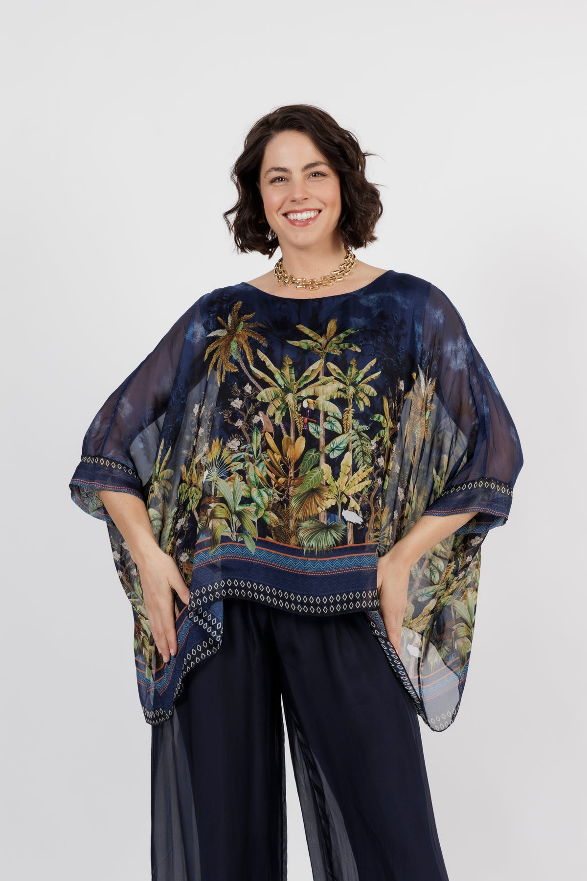 CONTESSA Palm Silk Overlay Top