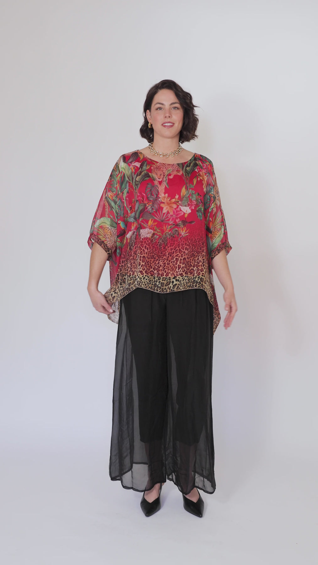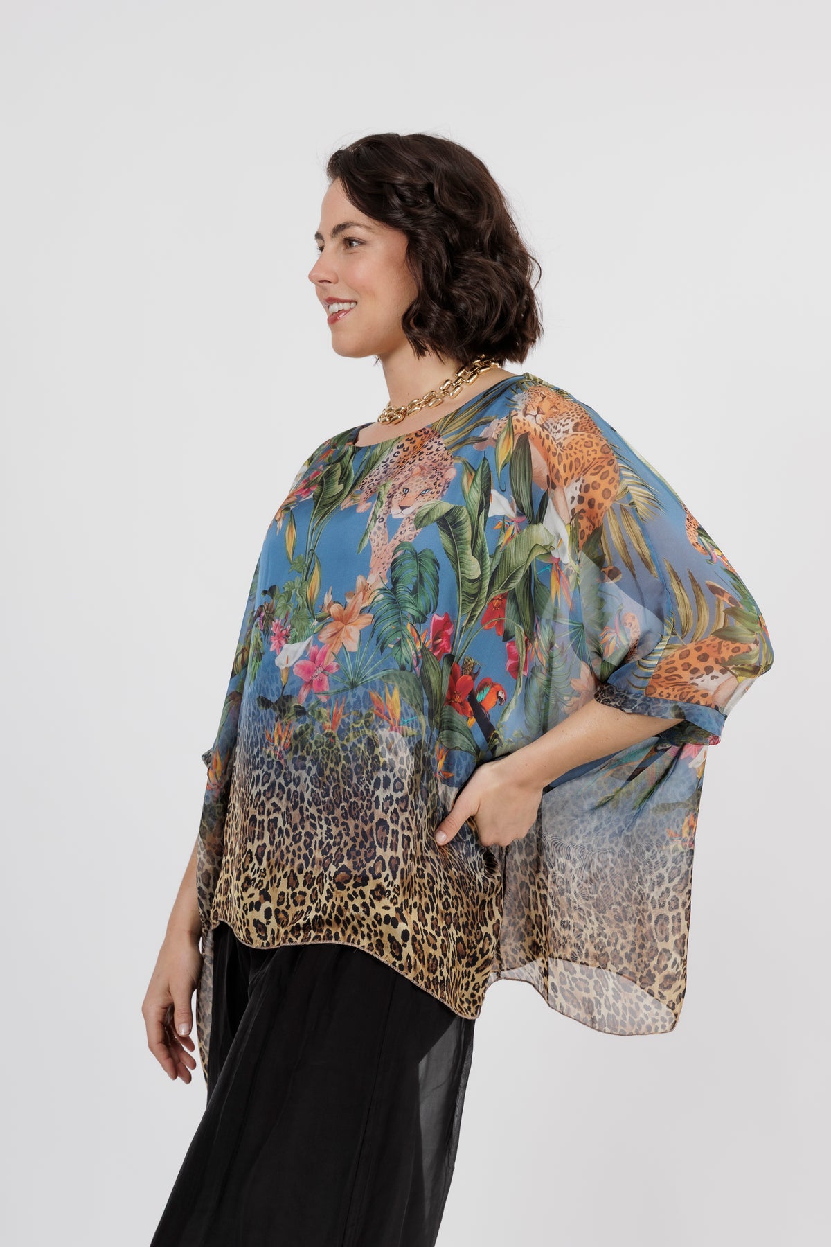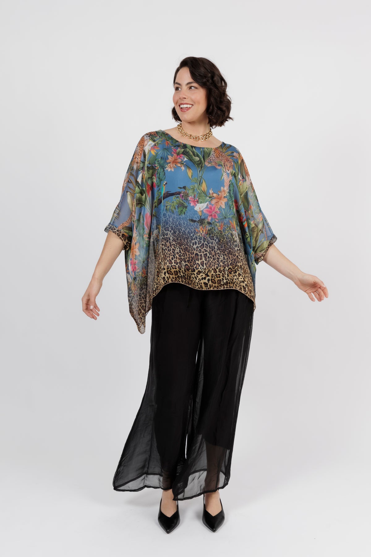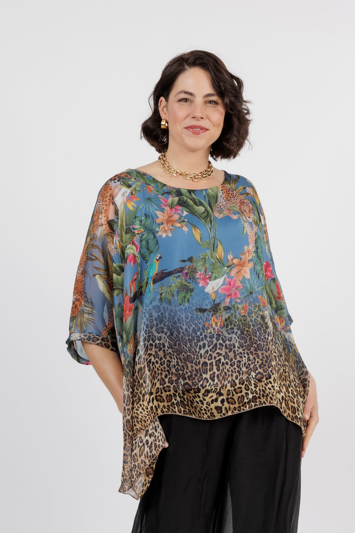 CONTESSA Palm Silk Overlay Top