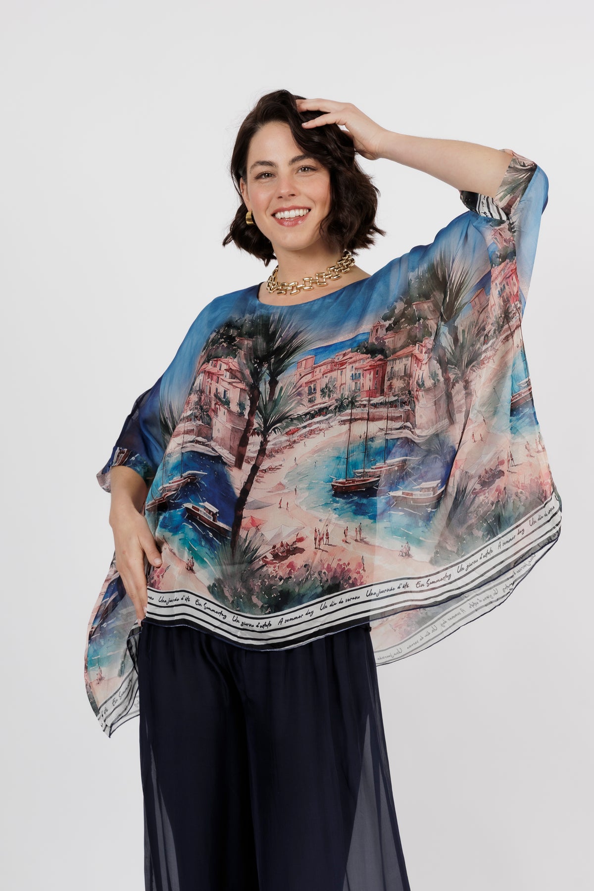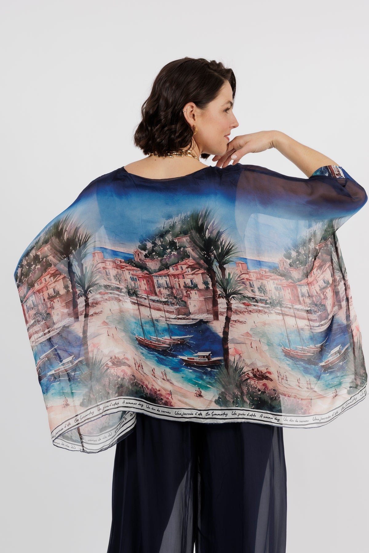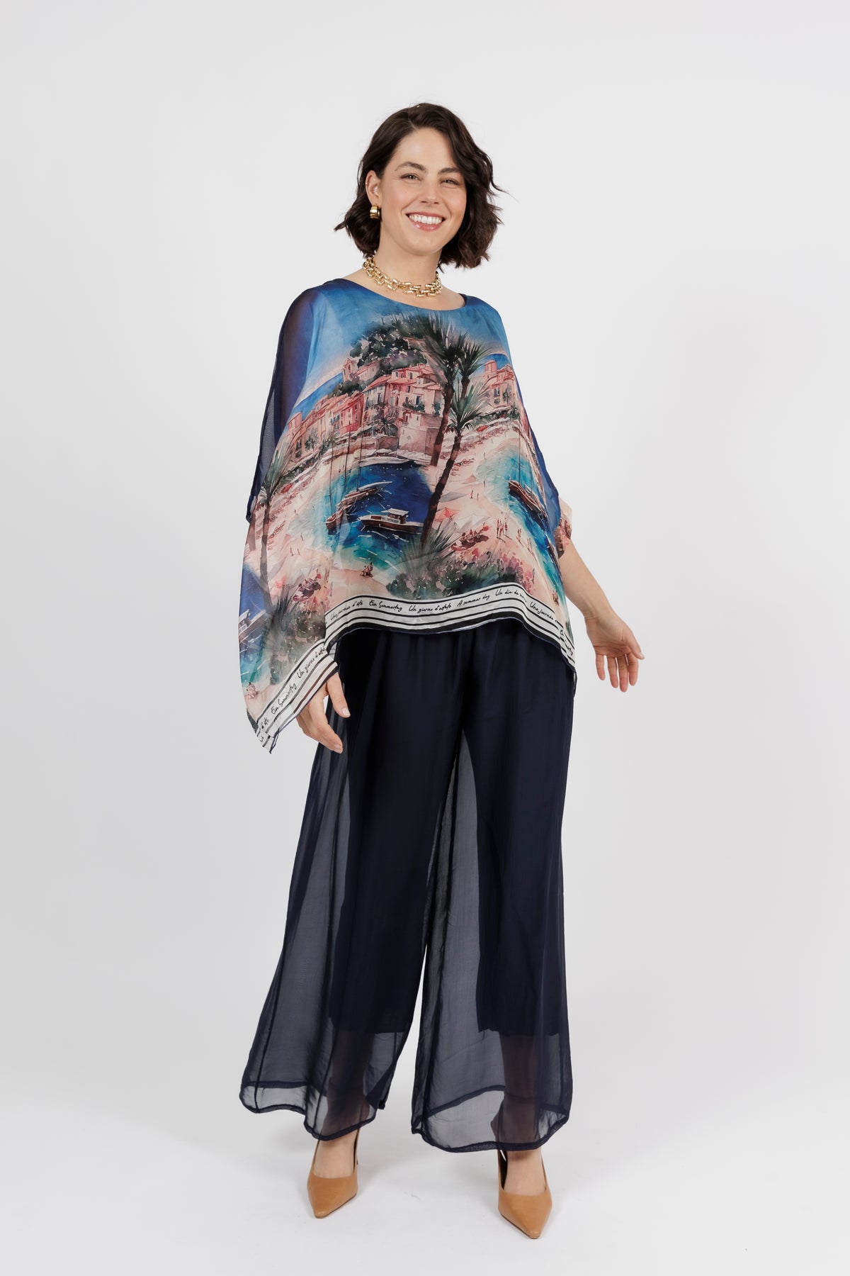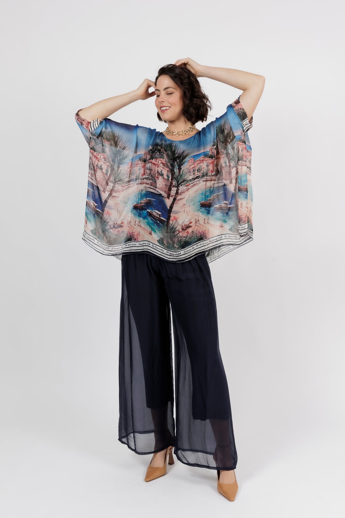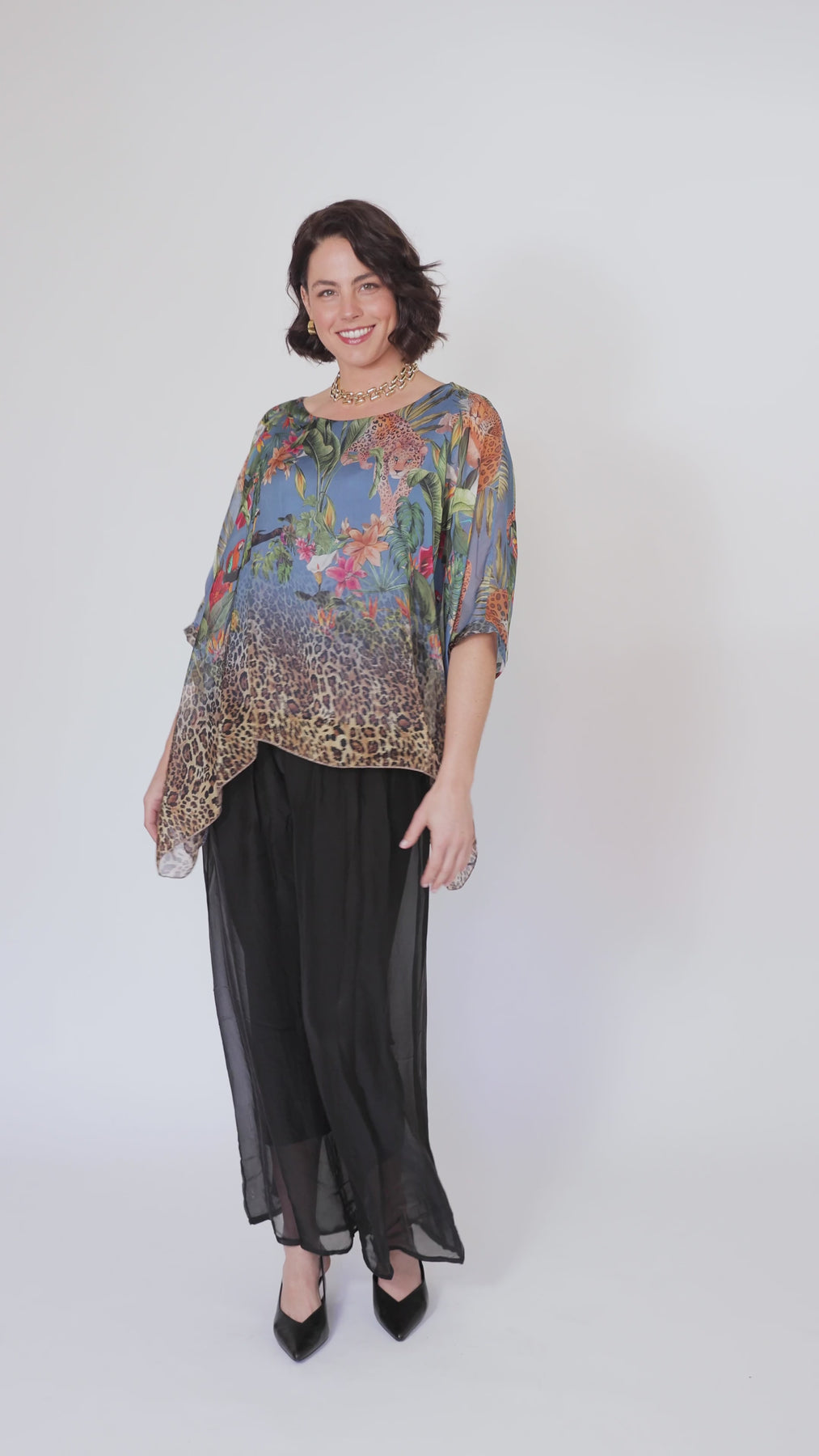CONTESSA Palm Silk Overlay Top