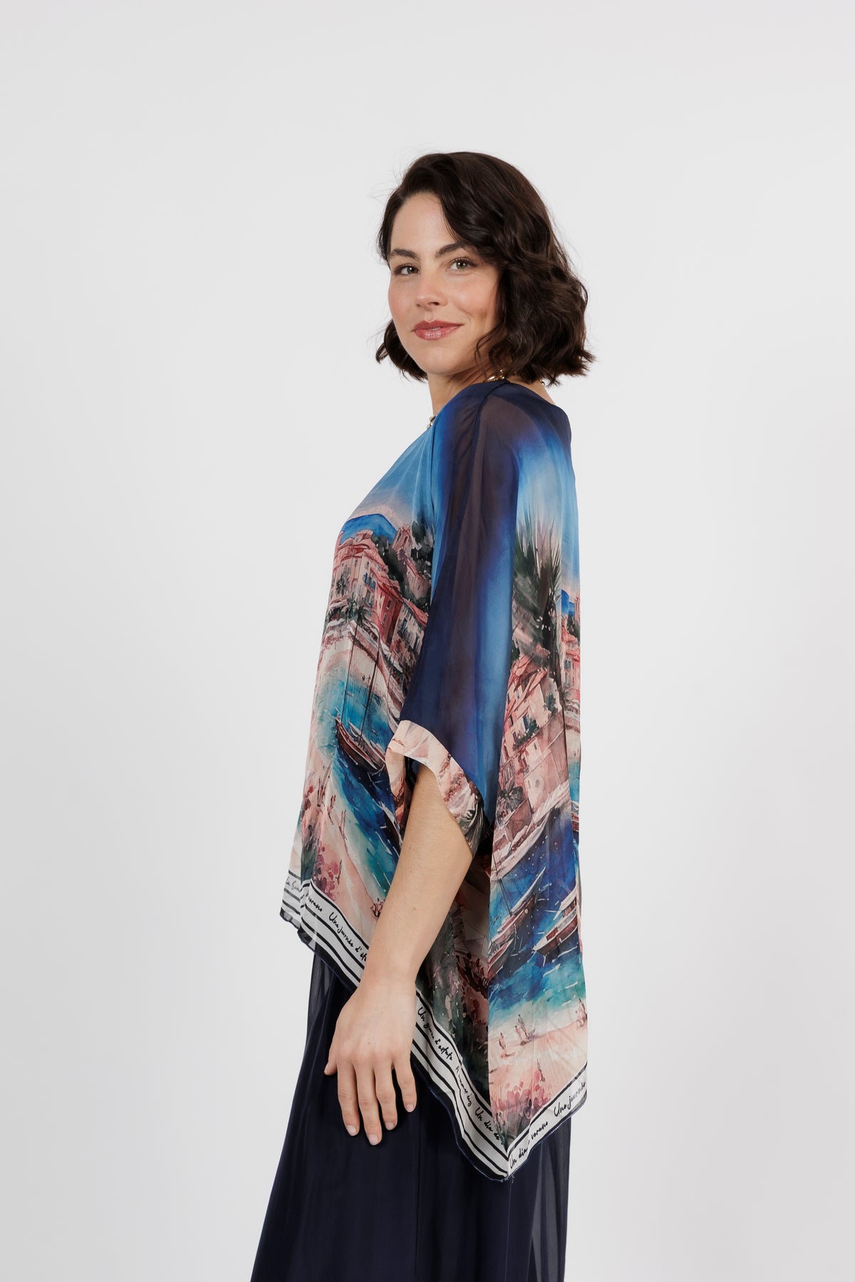 CONTESSA Navy City Silk Overlay Top