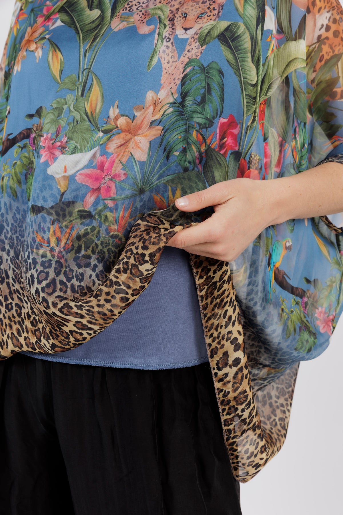CONTESSA Denim Animal Silk Overlay Top