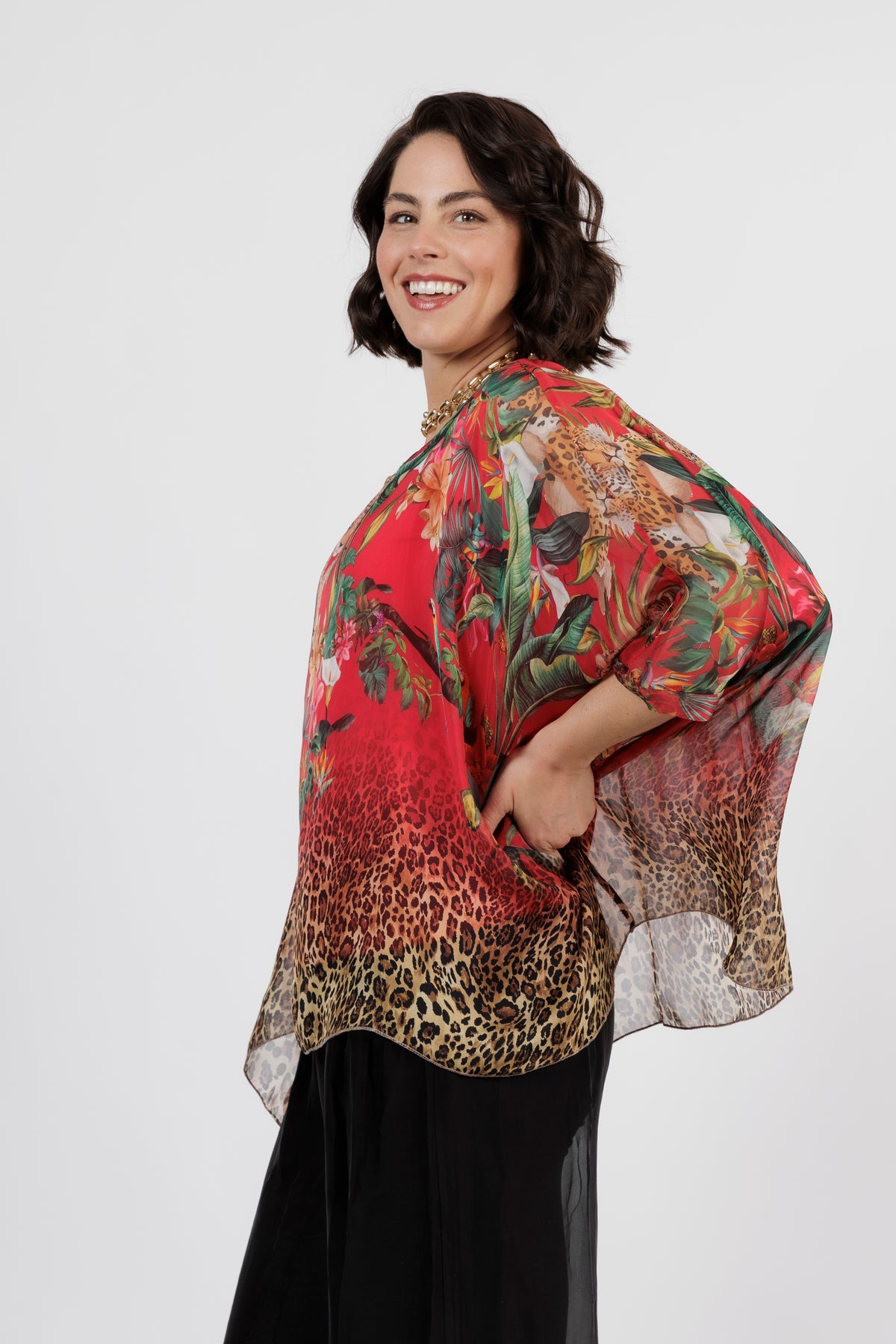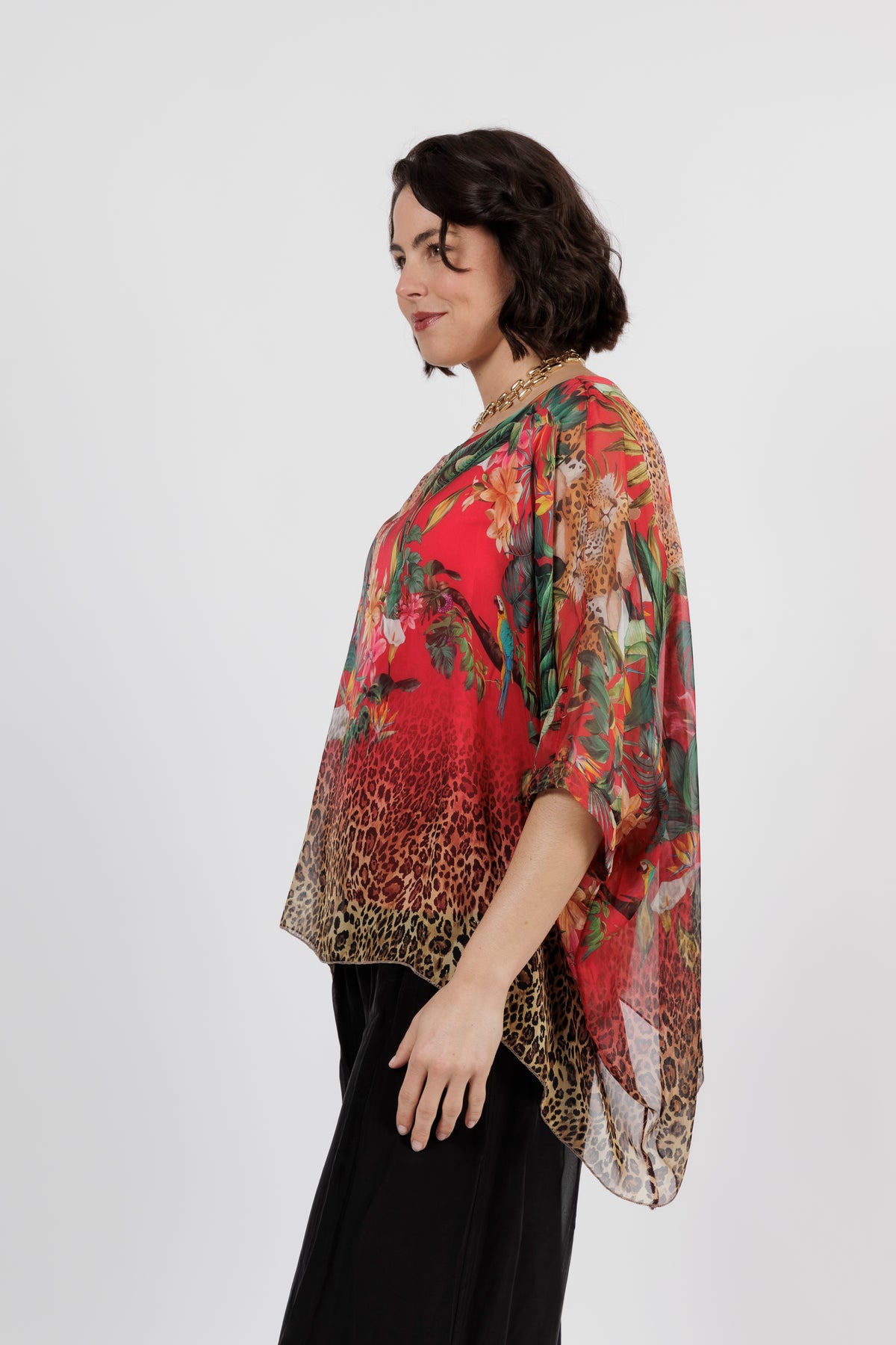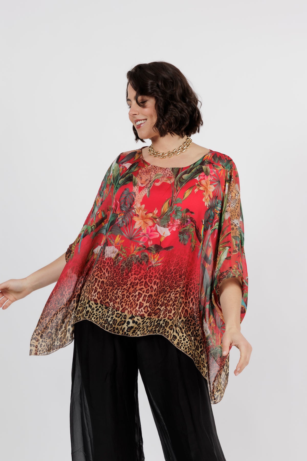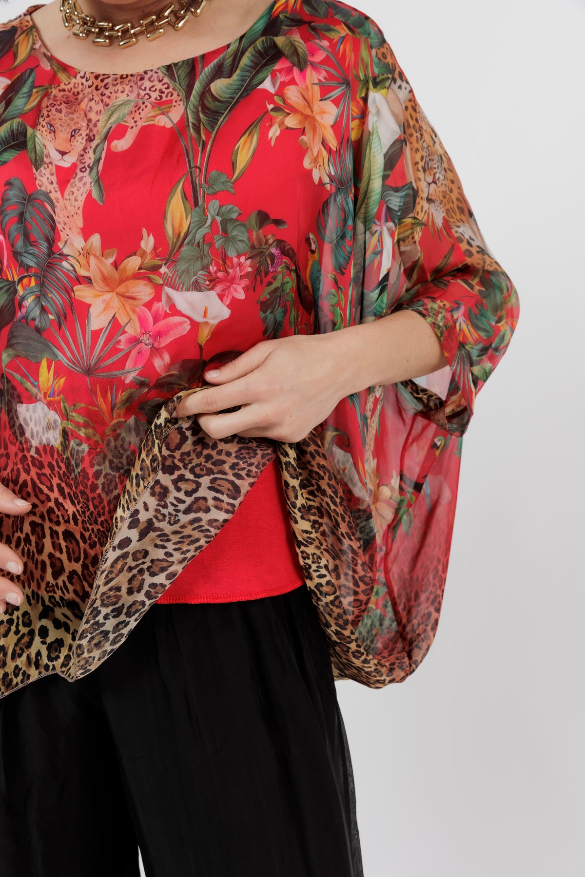 CONTESSA Red Animal Silk Overlay Top