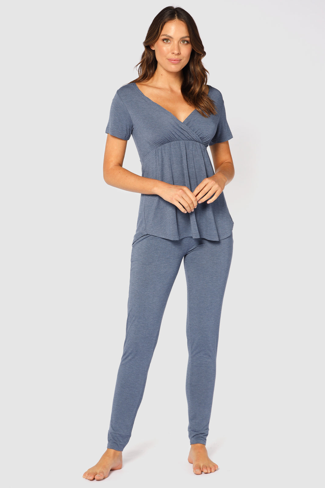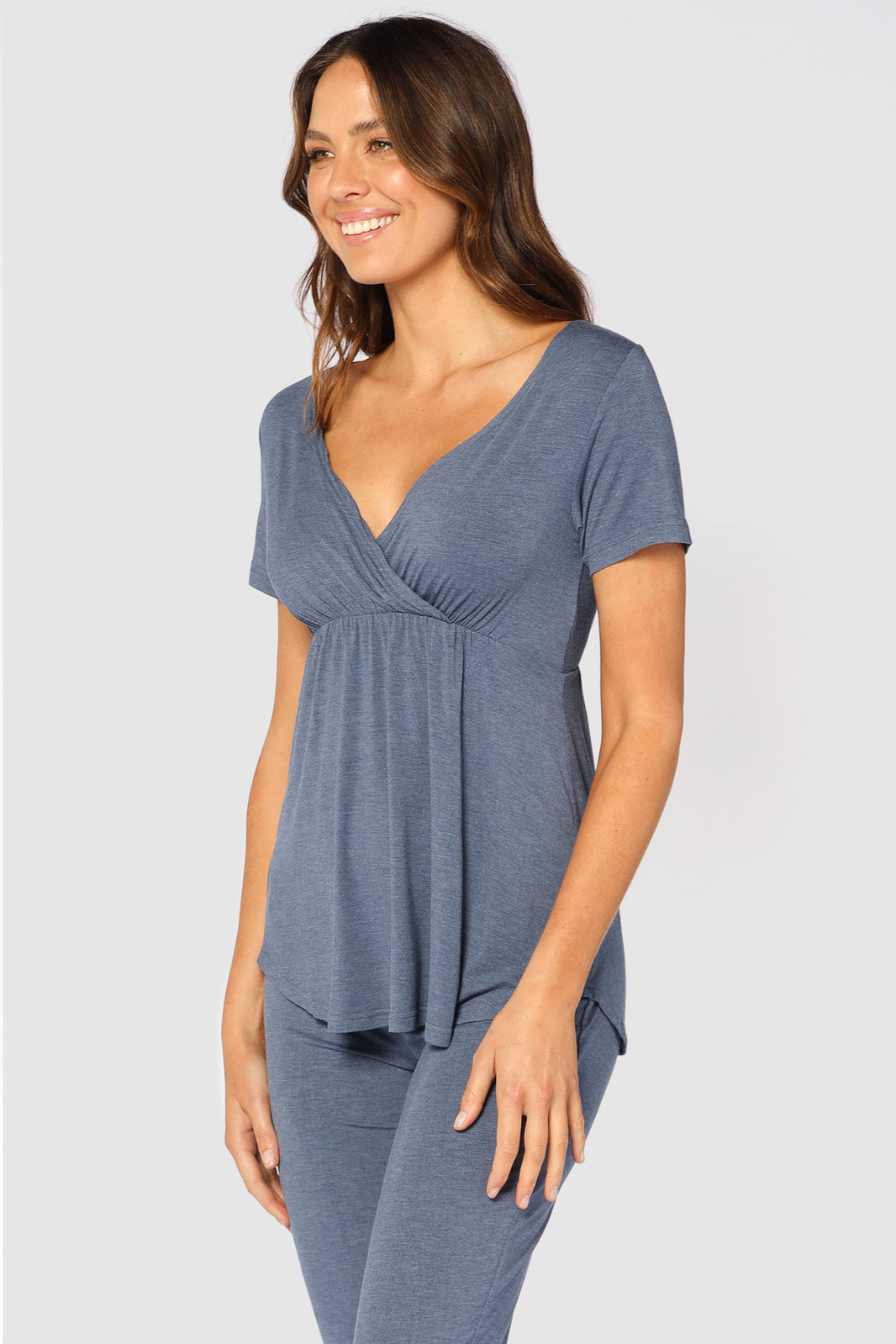 Mindfully made from eco-friendly bamboo viscose and cotton, the Short Sleeve PJ Top sits gently against the skin and will keep you cool and comfortable throughout the night. With no harsh zippers, buttons, ties or other irritants, this simple pyjama staple features a cross over V neckline, gathered bustline and short, relaxed sleeves. Moisture-wicking, eco-friendly and naturally hypoallergenic, the Short Sleeve PJ Top is stylish without compromising on comfort!
