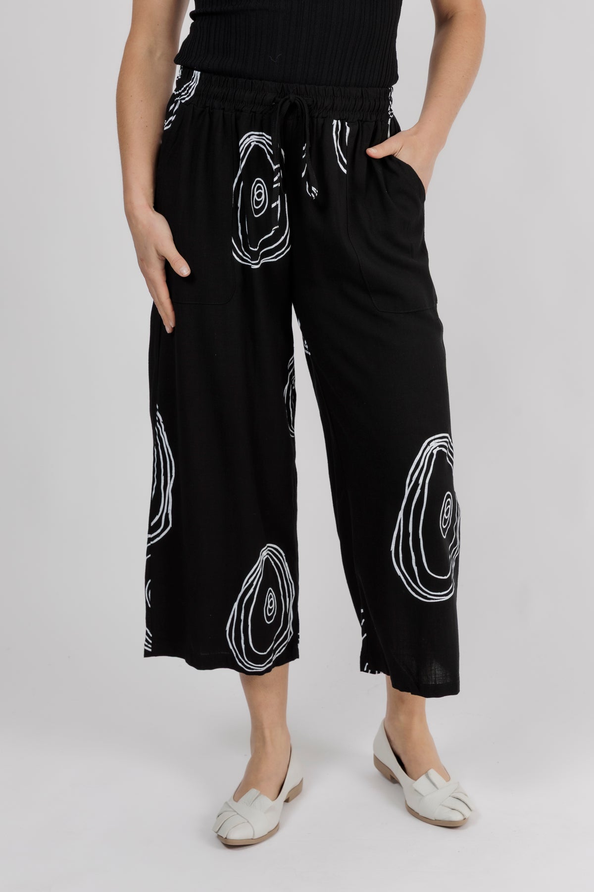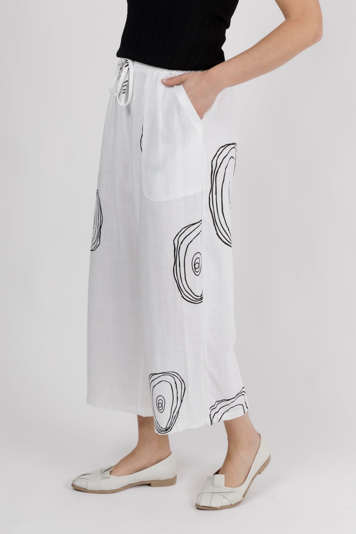 - Gathered elastic waistband with an adjustable drawstring